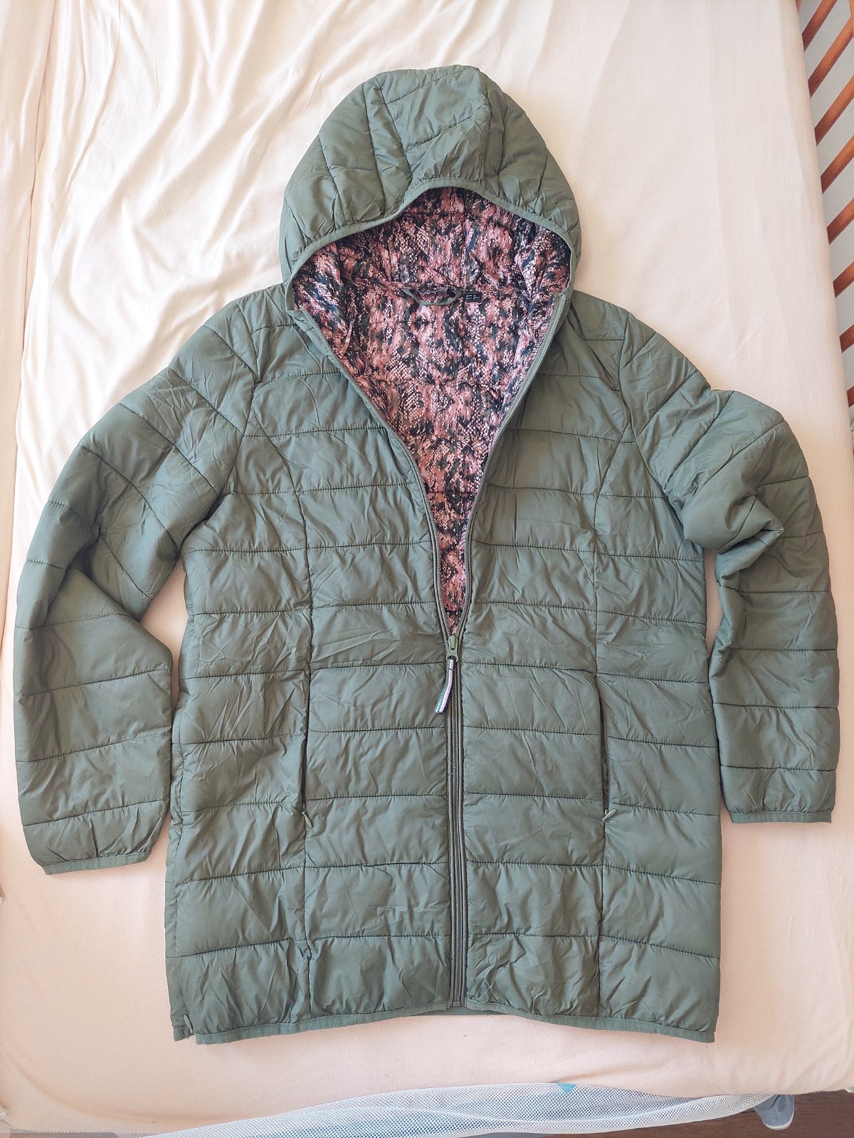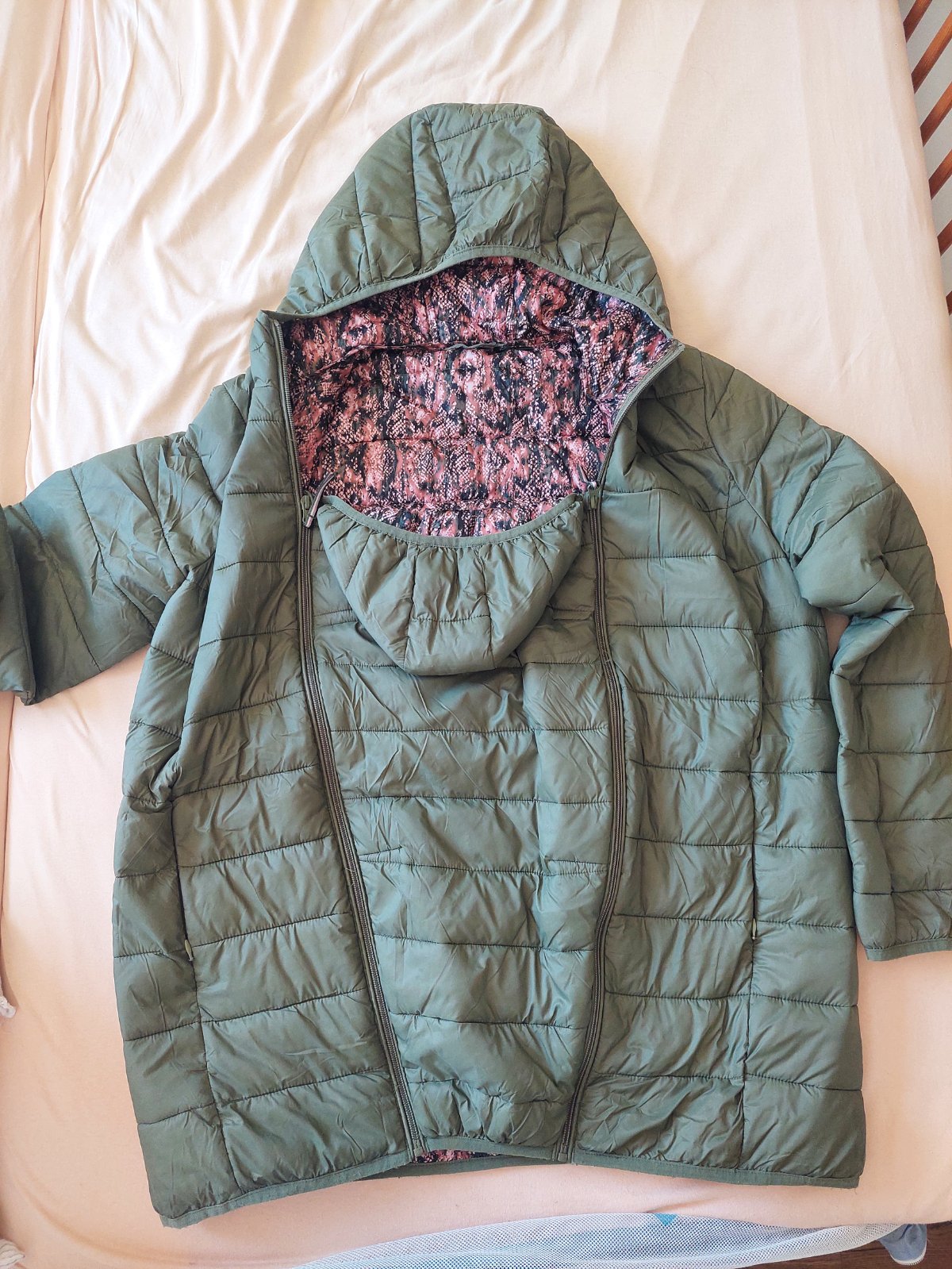 Perfektná bundička, ľahká, ale neprefúkne ju. Na bokoch sú zipsy, ktoré si postupne rozopínate a rozširujete miesto pre tehotenské (alebo iné 😉) bruško.