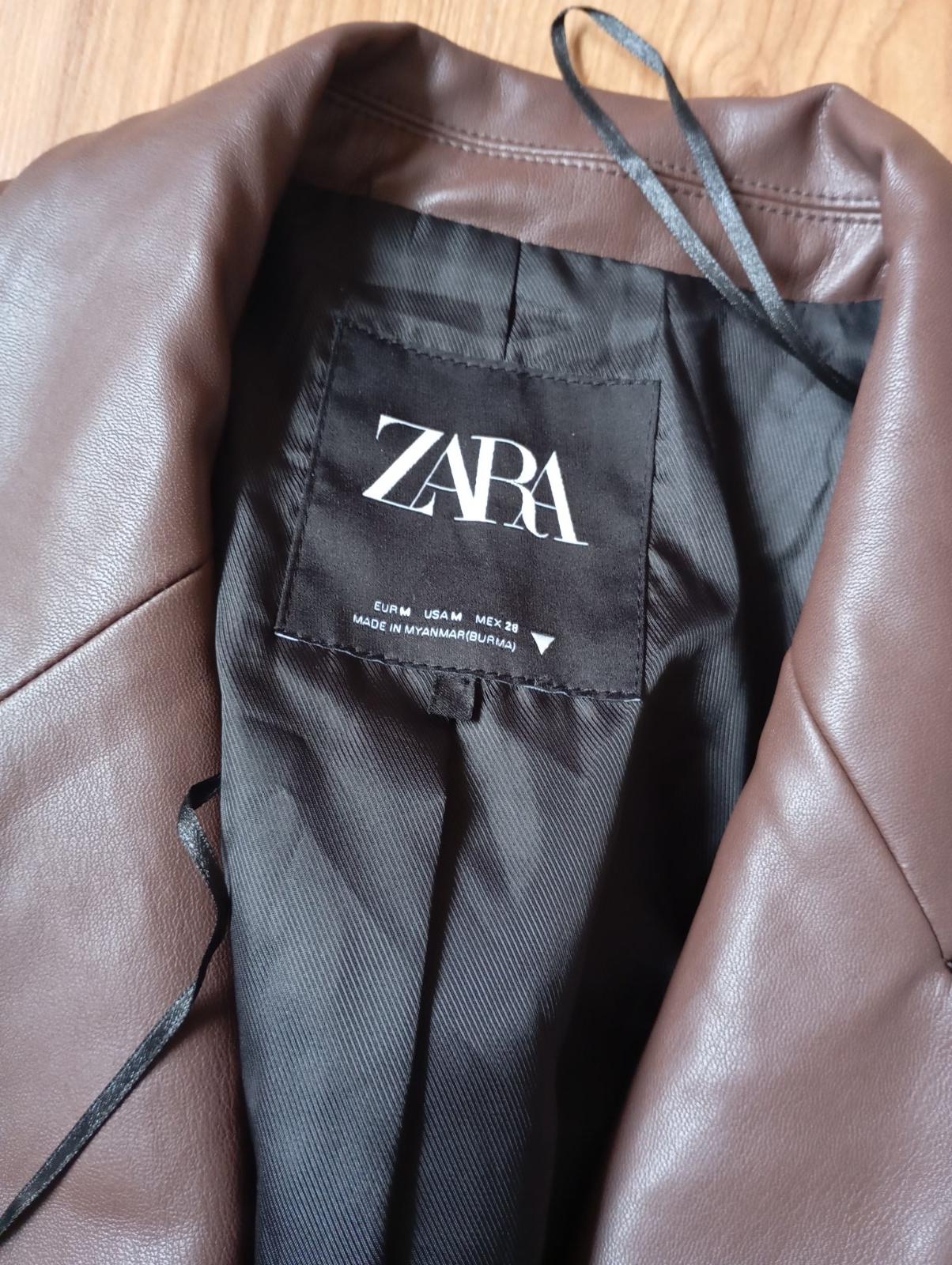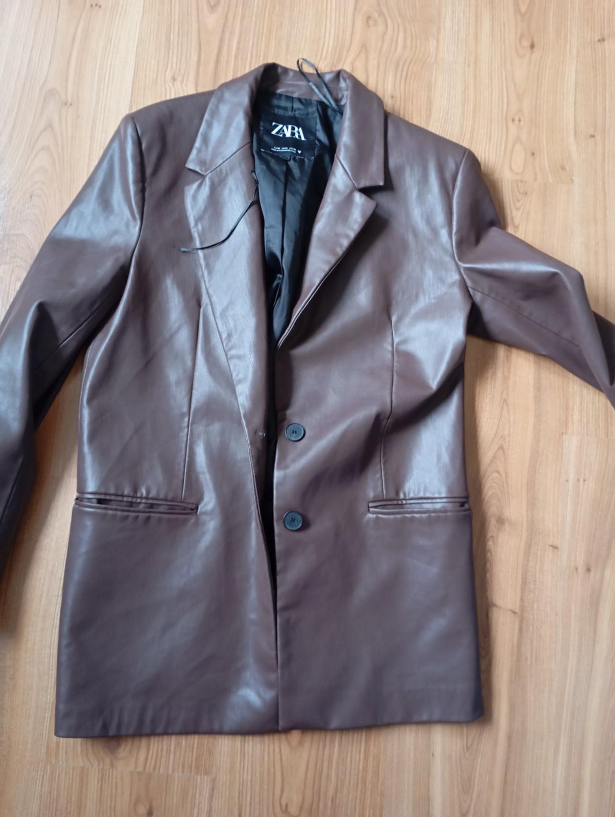 Sako alebo skôr jarný krátky kabátik zn. Zara Woman. Podšitý, farba tmavá hnedá, chladnejší odtieň. Zapína sa na dva veľké druky, cez ne sa viaže širšia viazačka, na chrbáte pevne prišitá. Krásny d...