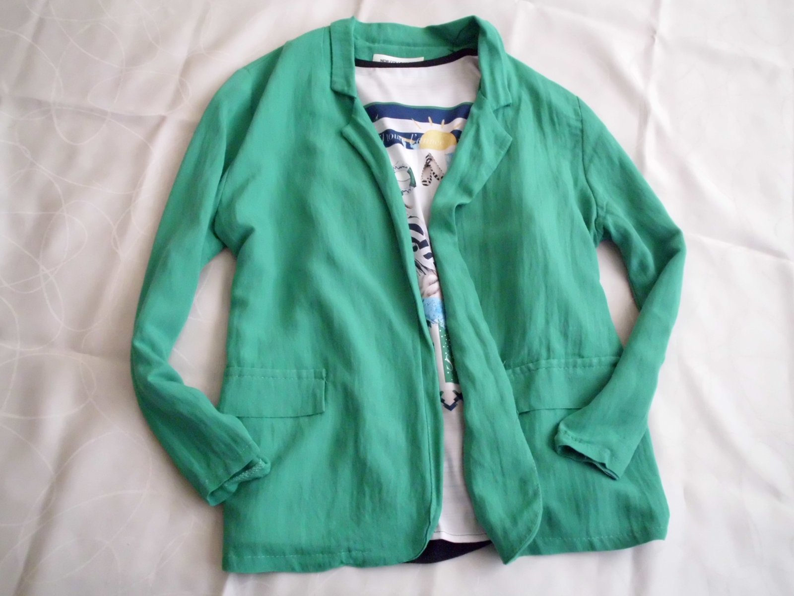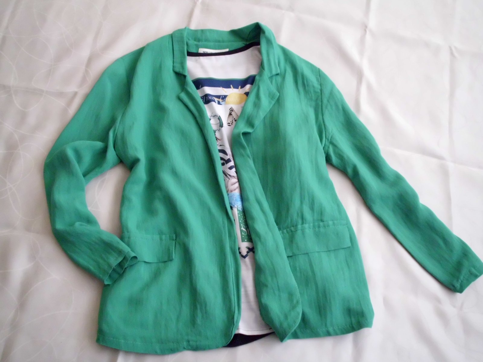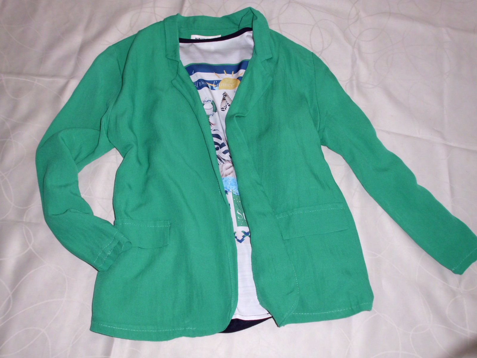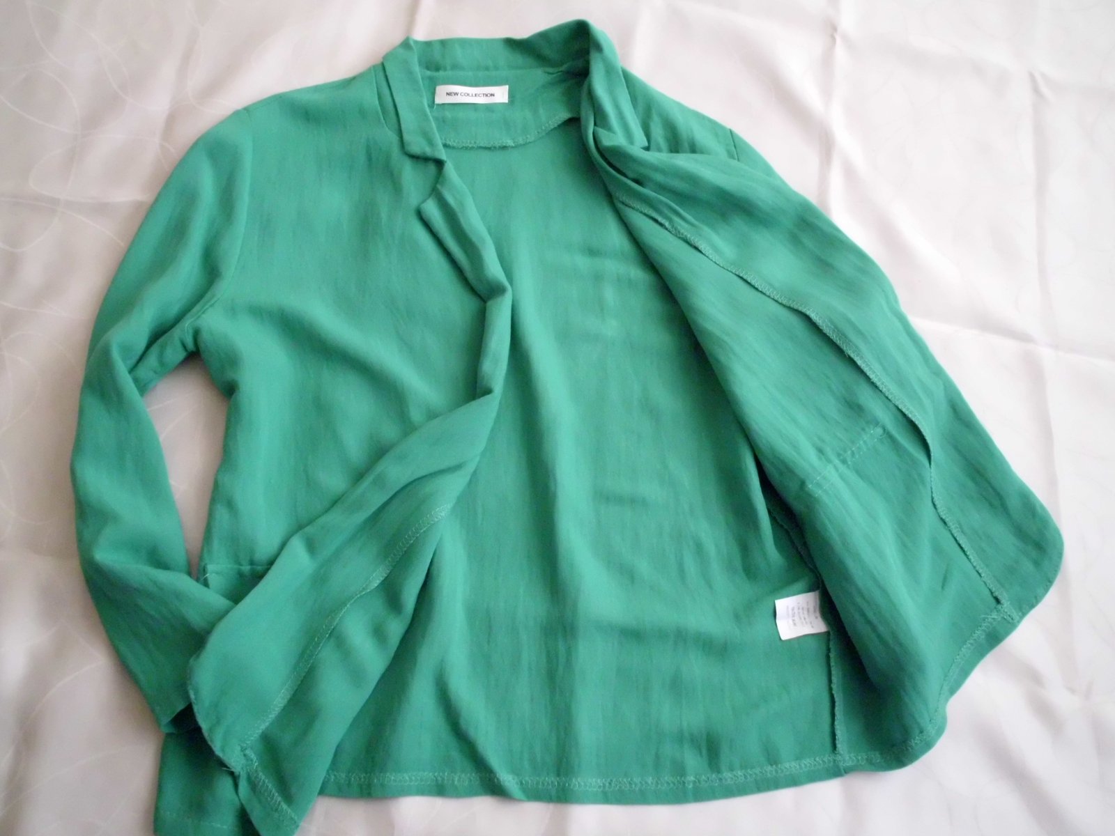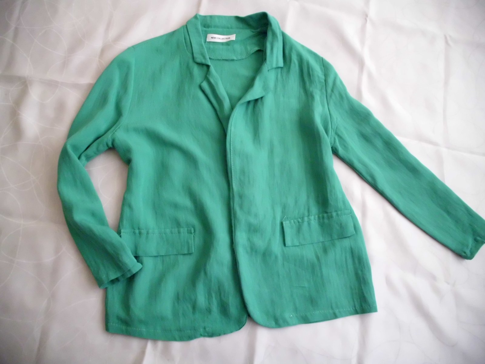 Predám dámske sako New Collection Italy vel. M , dĺžka 66 cm , šírka 49 cm, rukáv 55 cm , tenšia veľmi príjemná látka bez podšívky, volnejší strih bez zapínania , pekná zelená smaragdová farba na živo je krajšia jasnejšia sýtejšia ako na foto , super stav