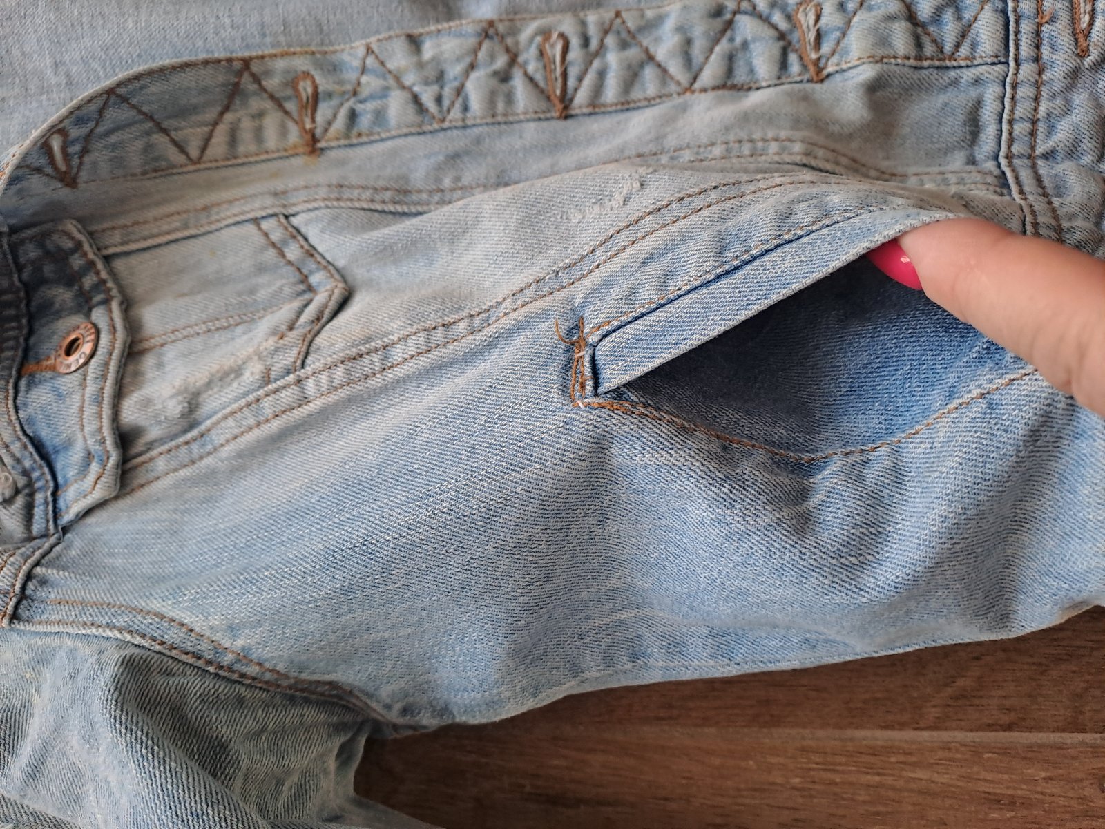 Veľmi príjemná mäkučká rifľovina. Bundička je bez poškodenia bola veľmi málo nosená