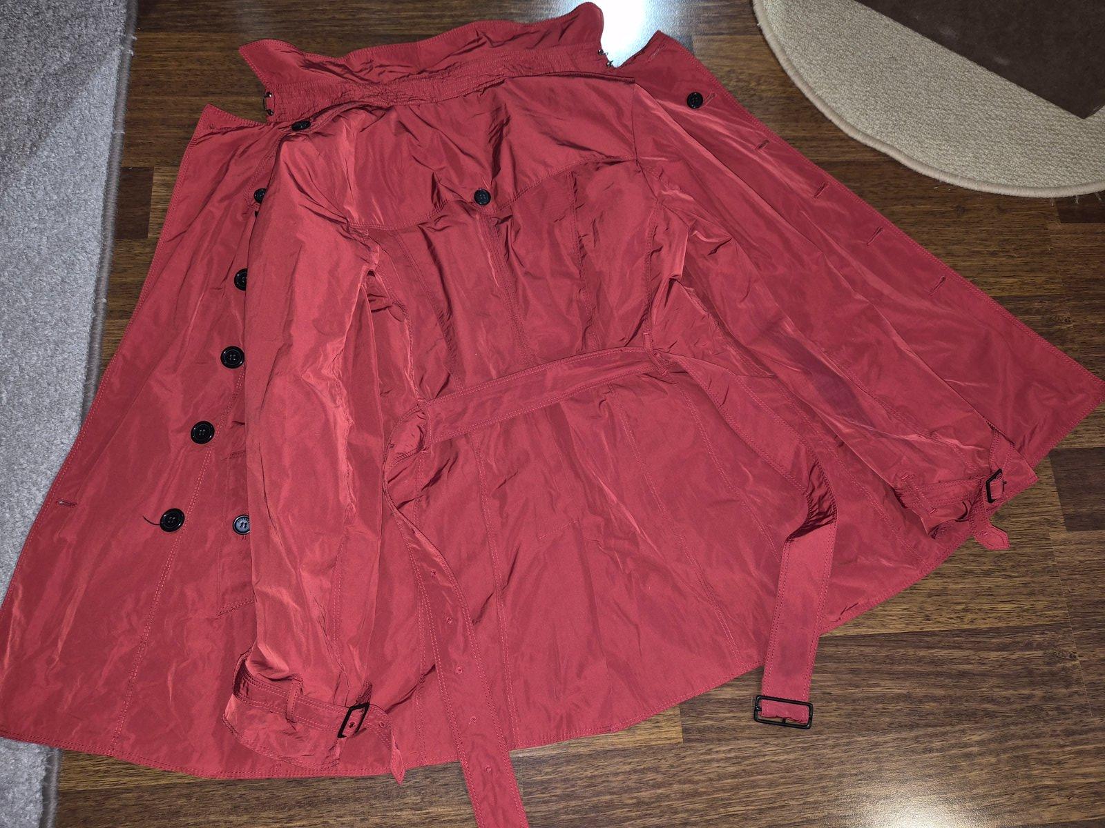 Krásny trenčkot,dostala som od kamošky z Anglicka.Už nevyužijem tak posúvam.Farba je tehlovo-bordovo-červená.