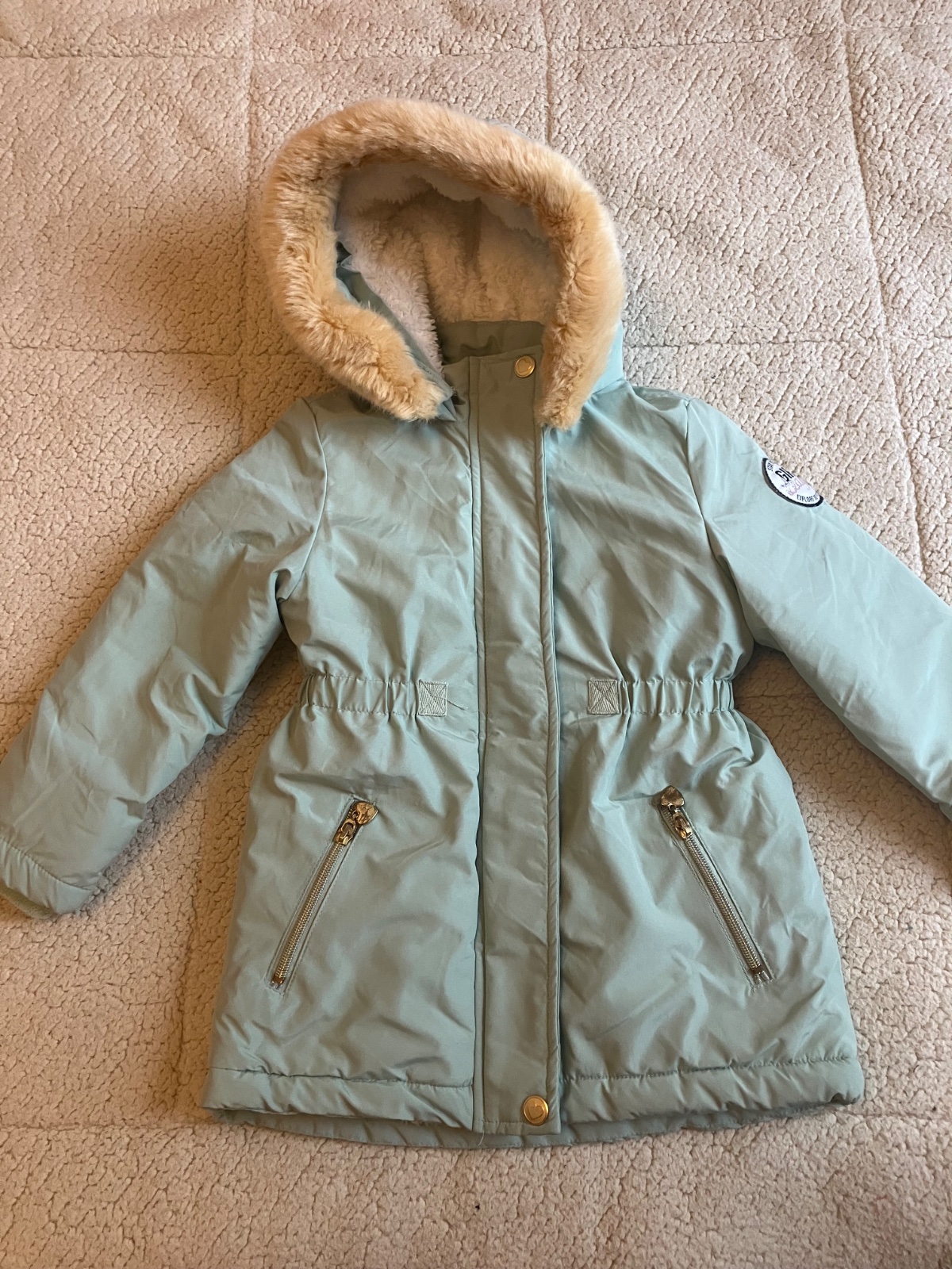 Zimná bunda, strih pod zadok. Ako nová, bez poškodení. Veľkosť 110, ale vynosíte aj ako 116. Cena 5€ plus pošta.