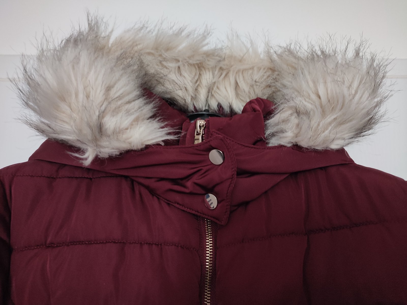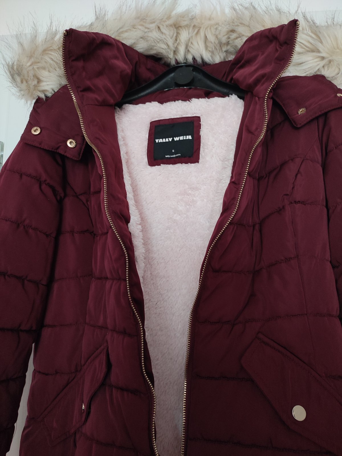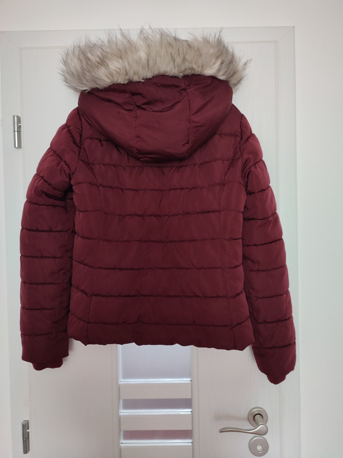 kvalitná a veľmi pekná zimná bunda, výborný stav, málo nosená, dve vrecká na zips, príjemná na dotyk, teplá, farba tmavobordová. V prípade záujmu rada premeriam. Je to podľa mňa väčšia 36