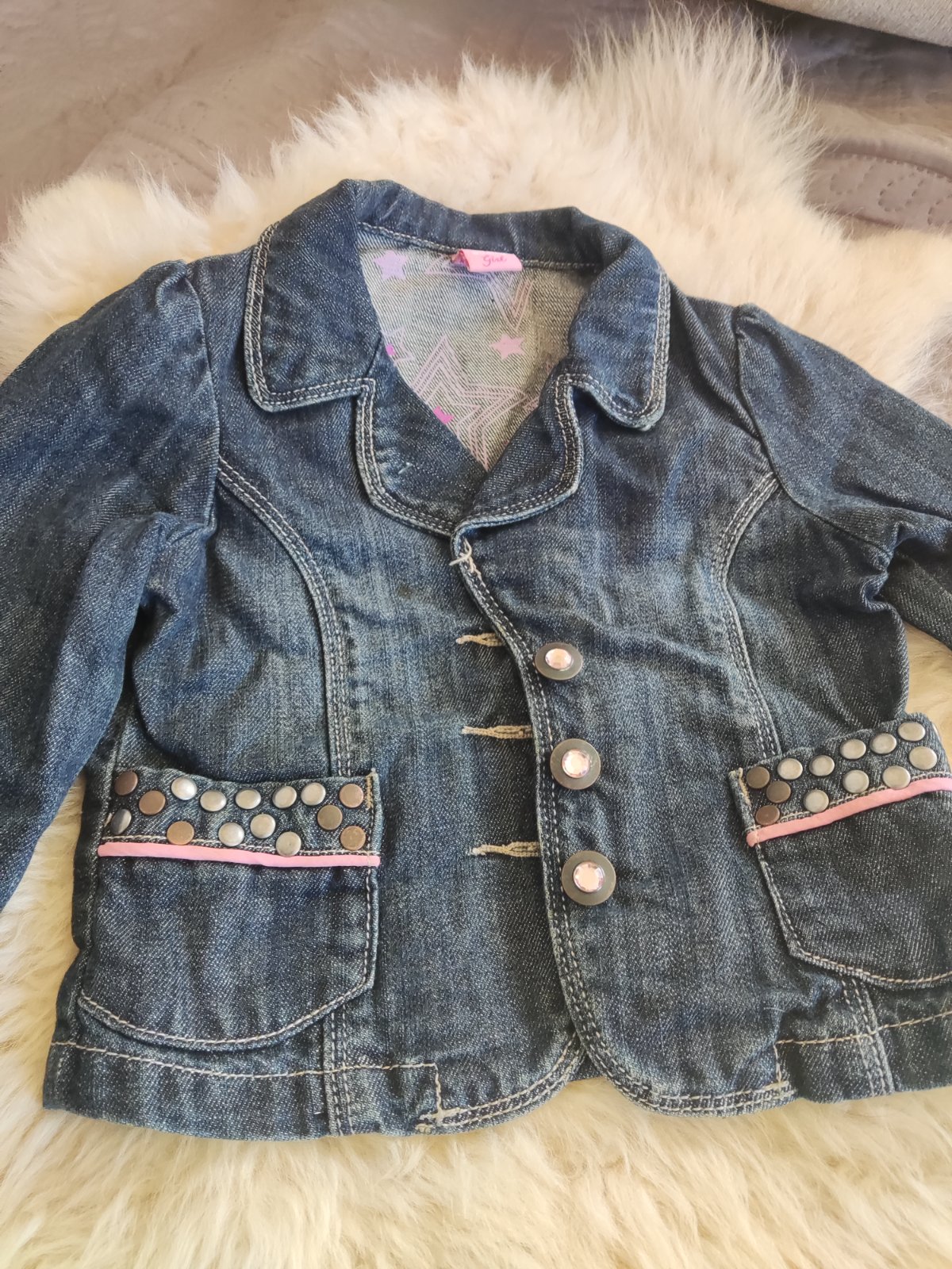 Velmi pekny, bezchybny kabatik na studenšie leto, teplejsiu jar, jesen, rukávy sa daju aj rozopnut dole, aby bola bundicka s dlhým rukavom, velkost na 4-5.rokov