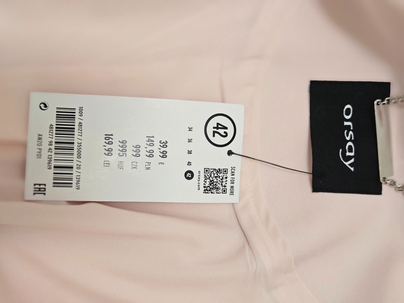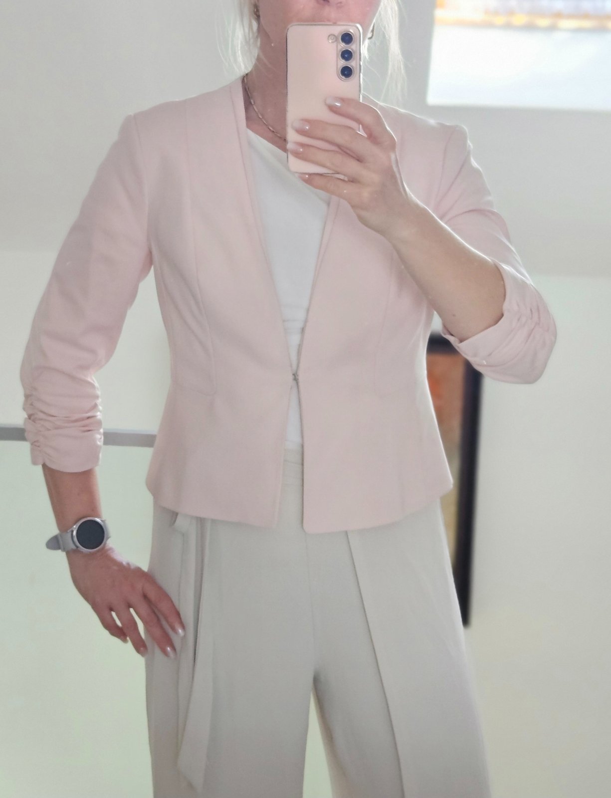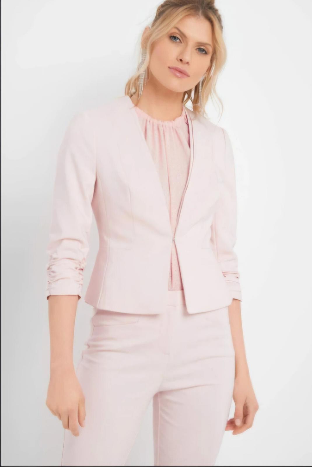 Nové svetloružové sako Orsay s 3/4 rukávmi. Veľkosť je uvedená 42, ale skôr 40 (pozri rozmery) Nosím M-L (40). Mierne elastické, predu na háčik s nariasenými rukávmi.