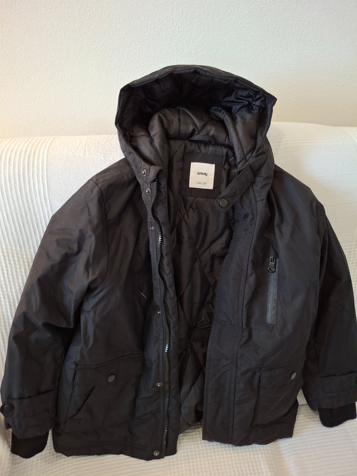 prakticka bunda, syta cierna farba, bez poskodeni