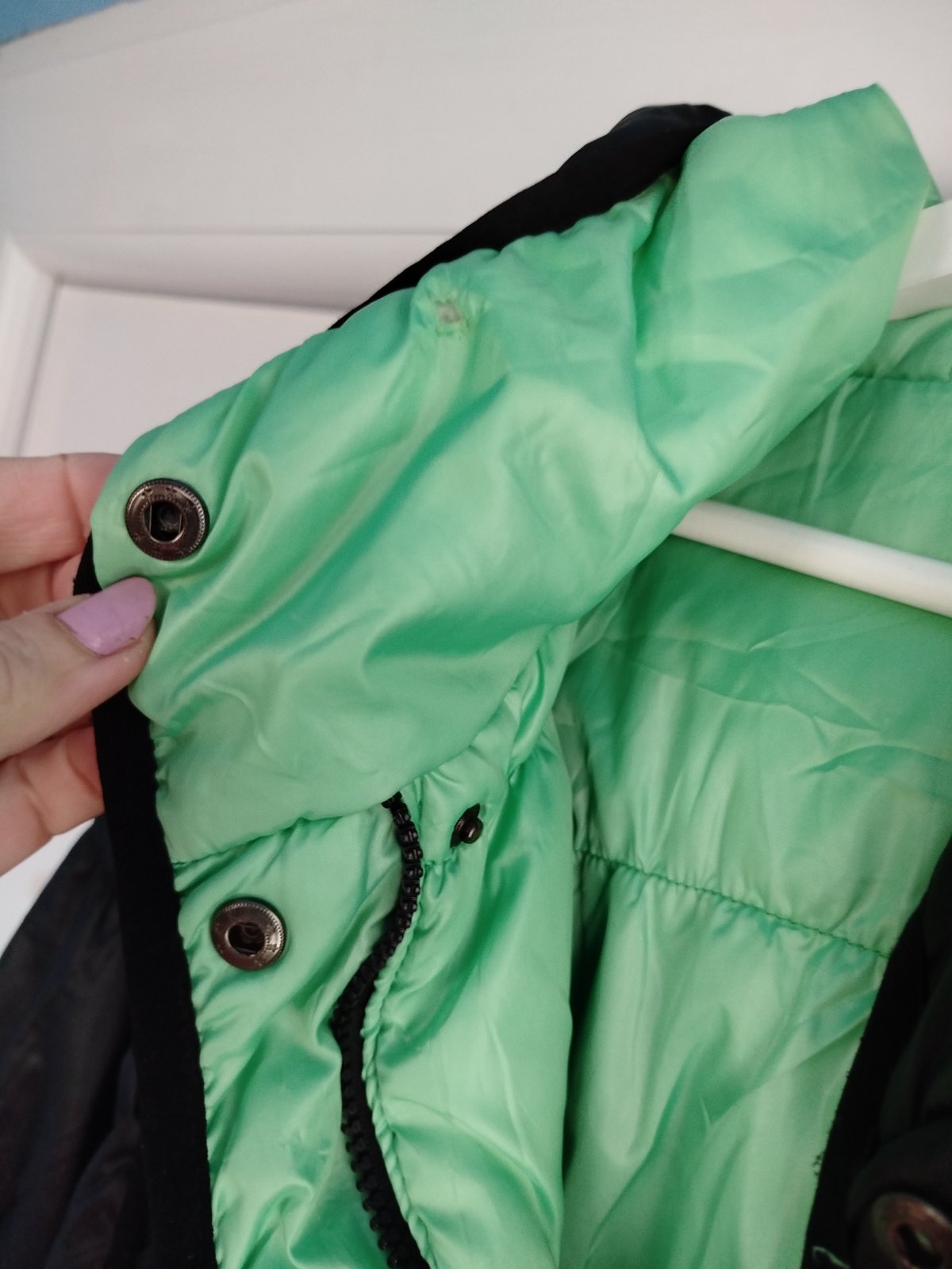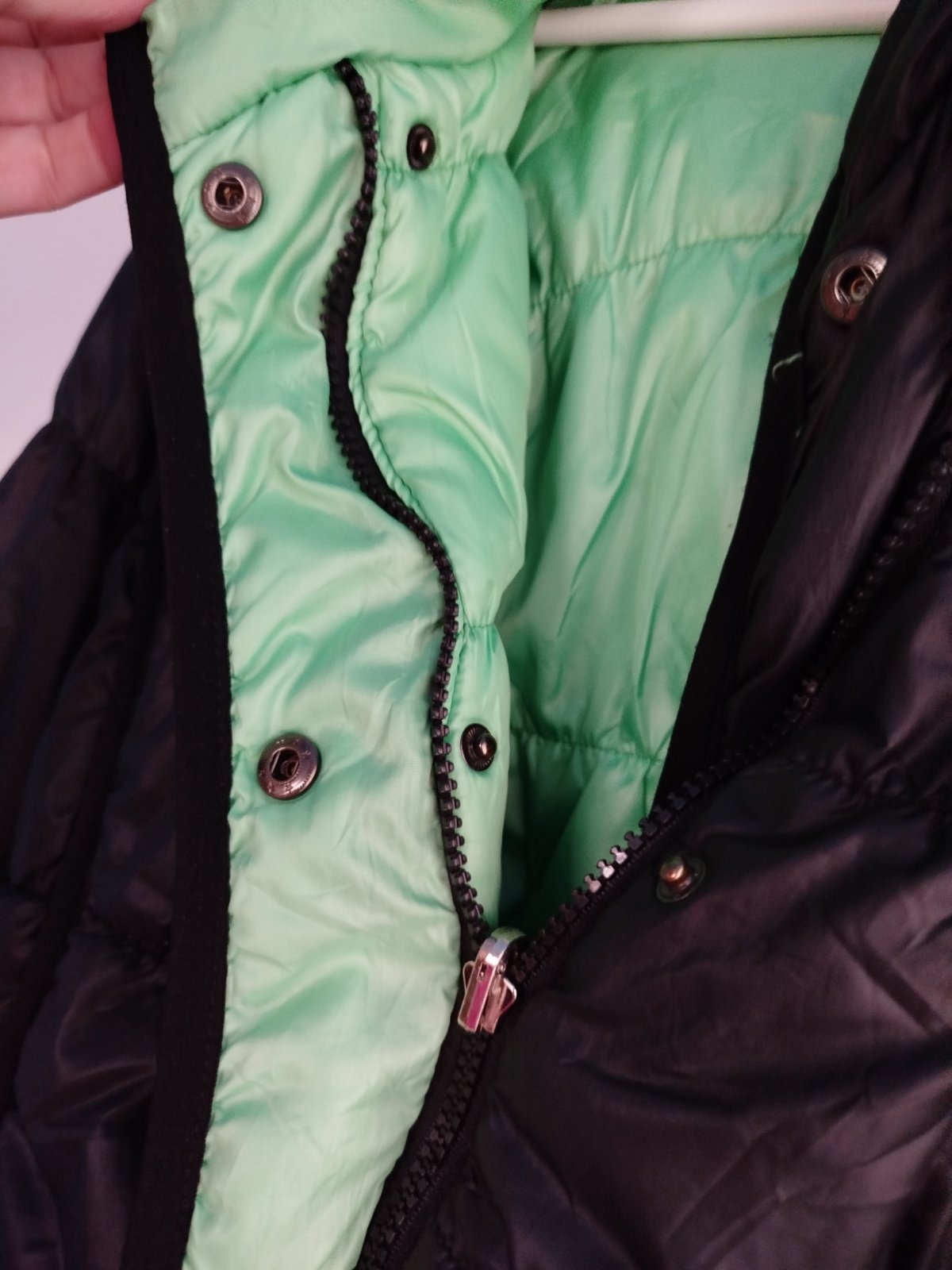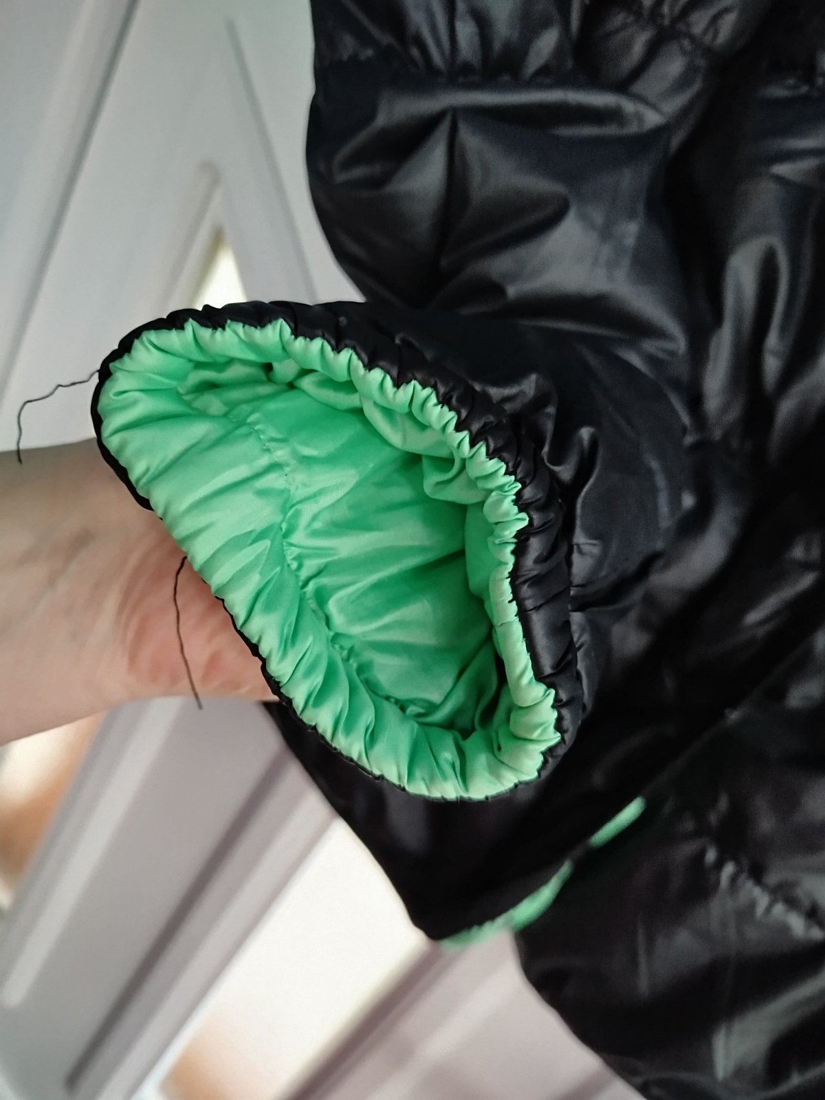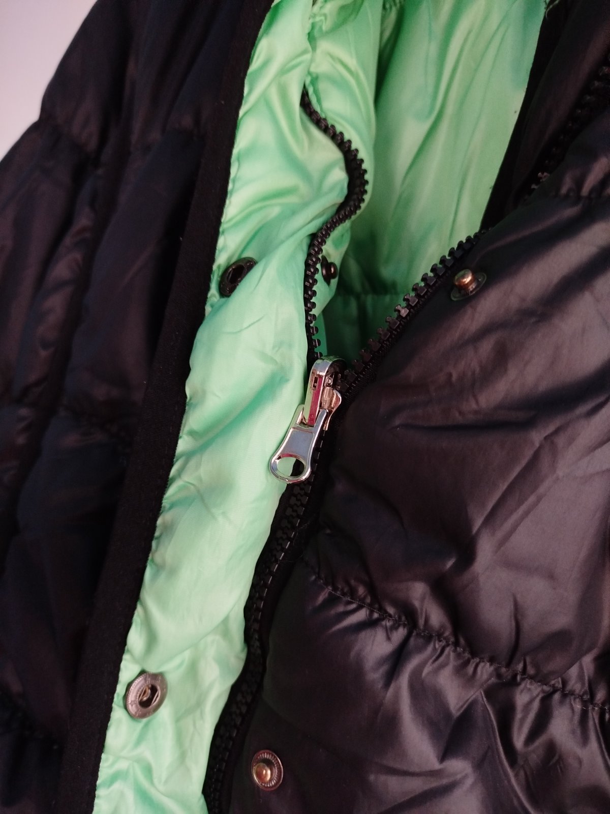 - na miernu zimu, šírka 2x50cm, takže udana veľkosť nesedí, je menšia, chyby na poslednych 2fotkach, a gombíky šuchnuté, snáď ešte poslúži, obojstranná, druha strana zelena