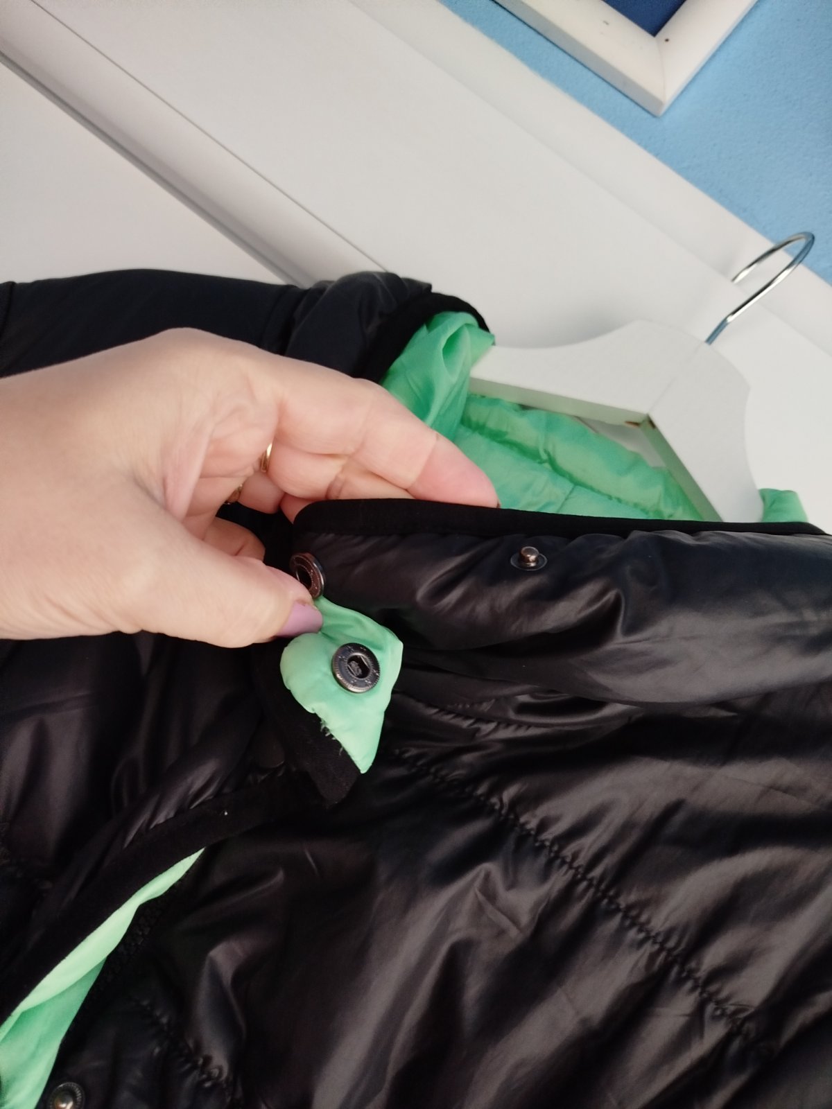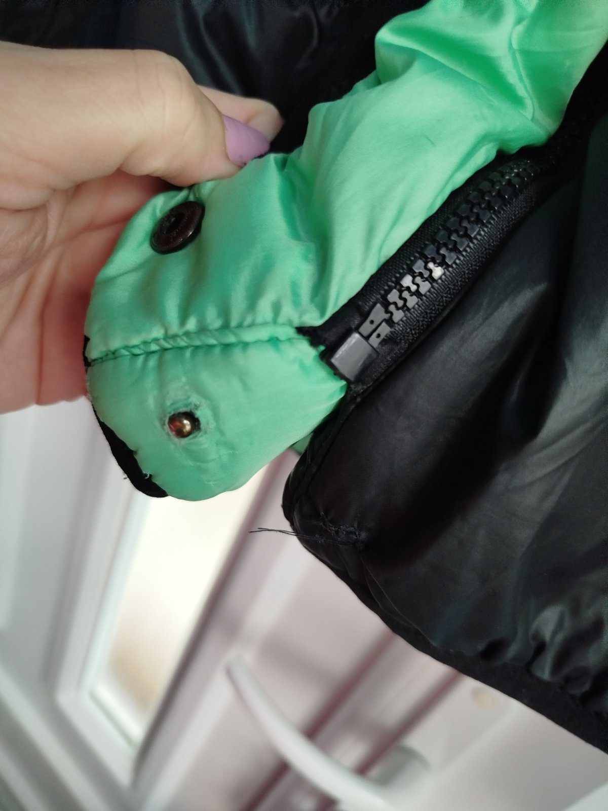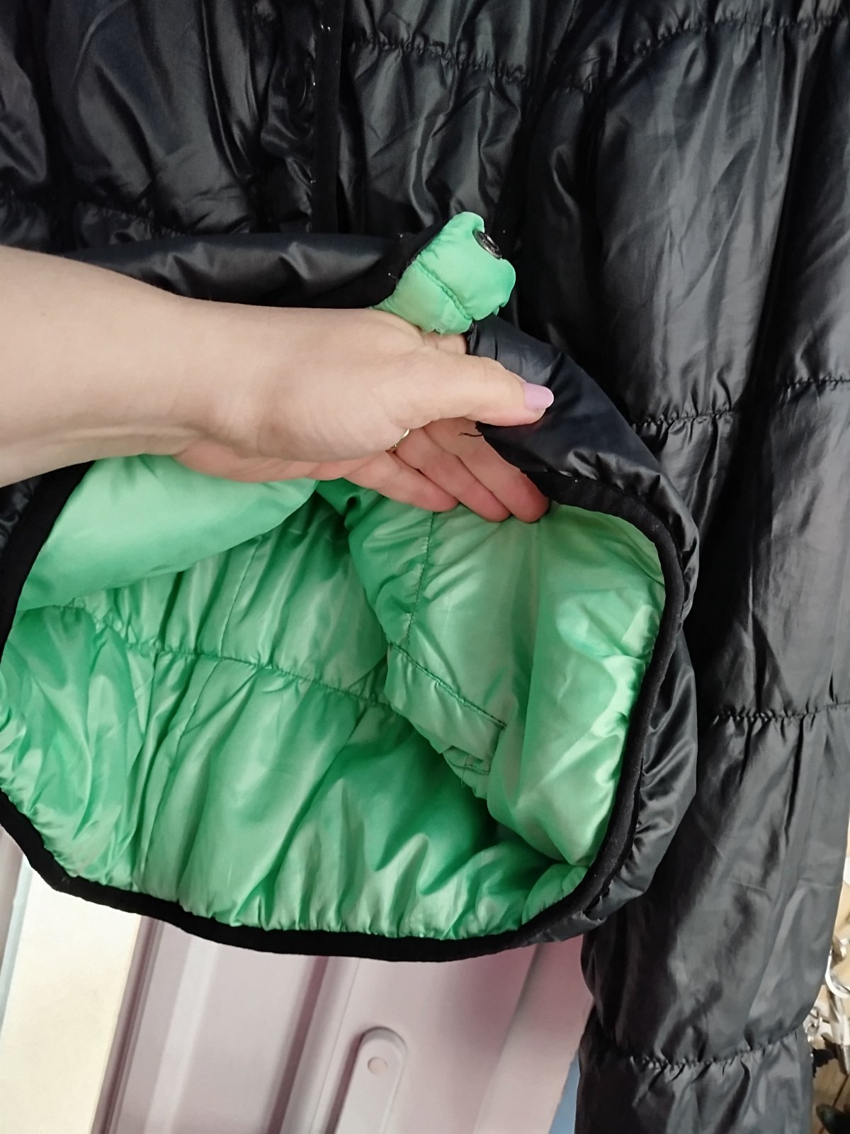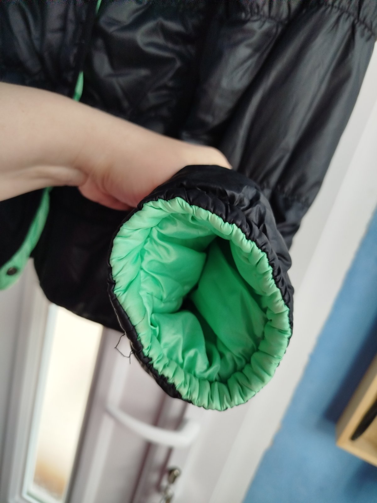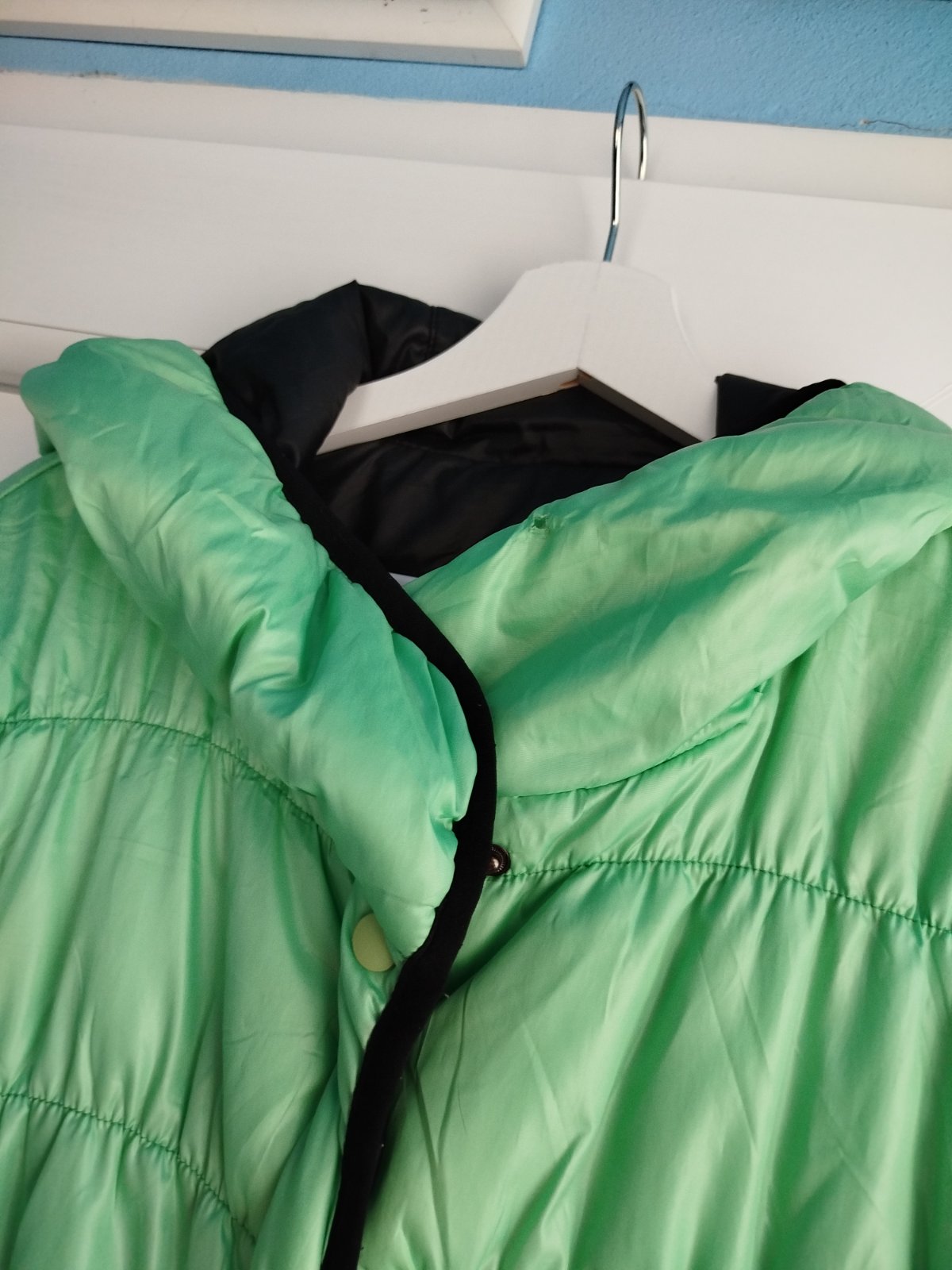 - na miernu zimu, šírka 2x50cm, takže udana veľkosť nesedí, je menšia, chyby na poslednych 2fotkach, a gombíky šuchnuté, snáď ešte poslúži, obojstranná, druha strana zelena