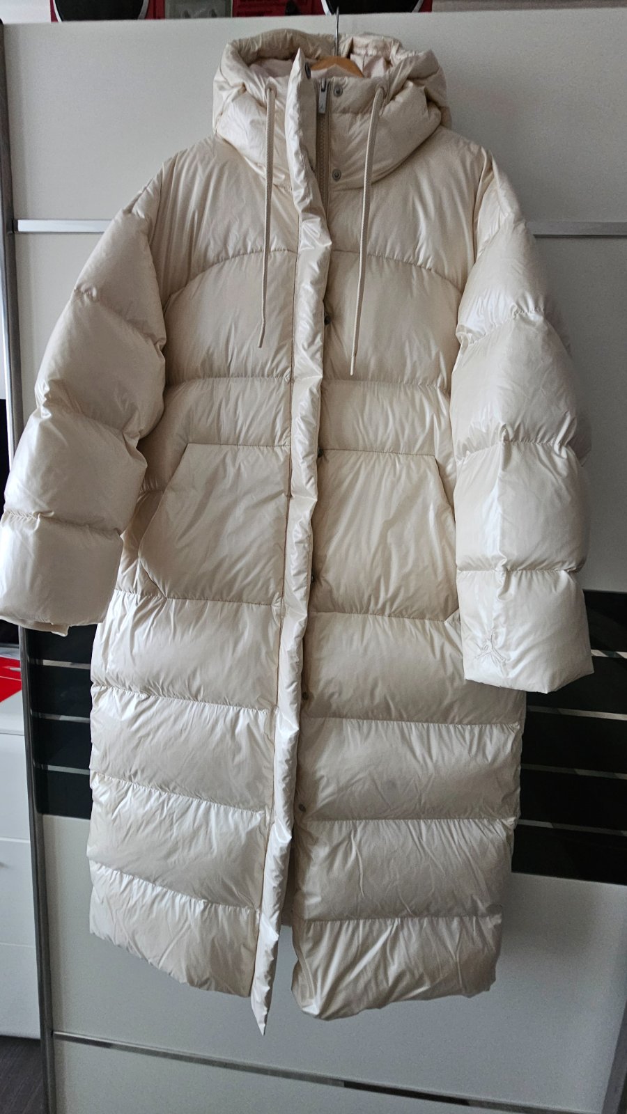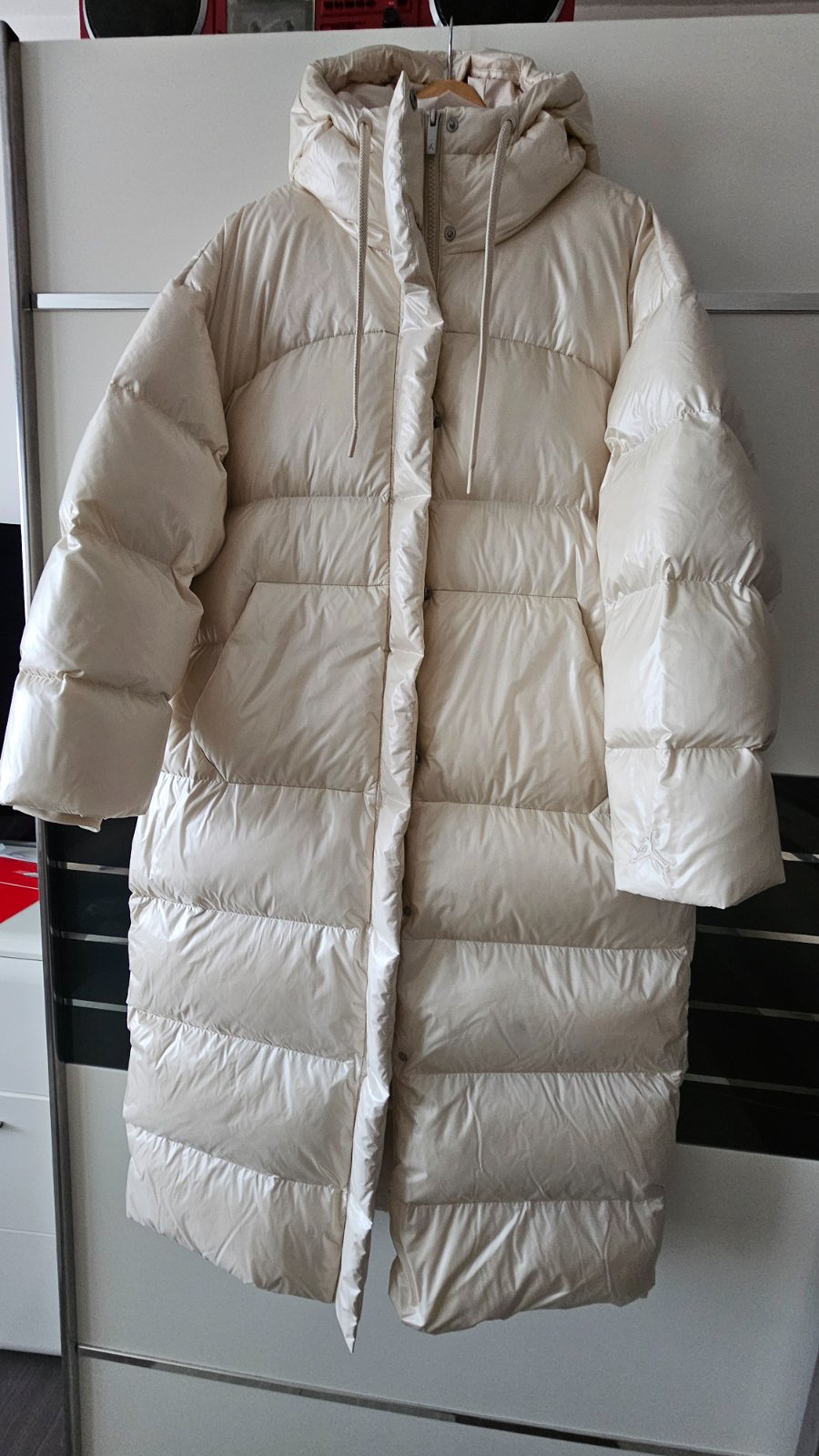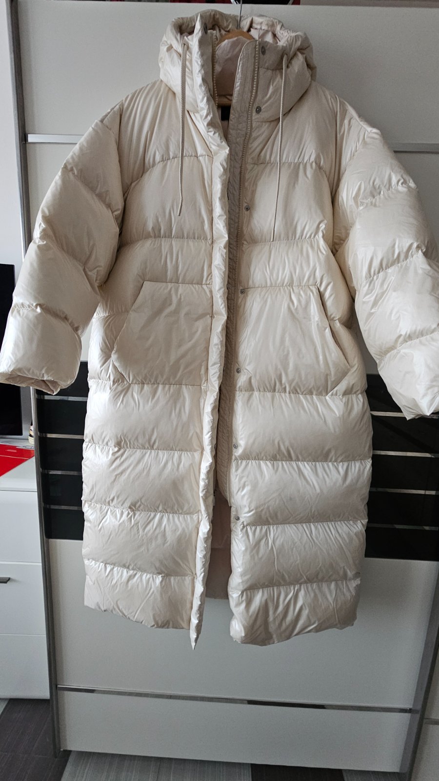 Predám úplne novú,pohodlnú páperovú bundu alebo kabát velkosť L.bunda je veľmi kvalitná plnená perím.je teplučká a vode odolná.zapína sa na dvojitý zips a patenty.