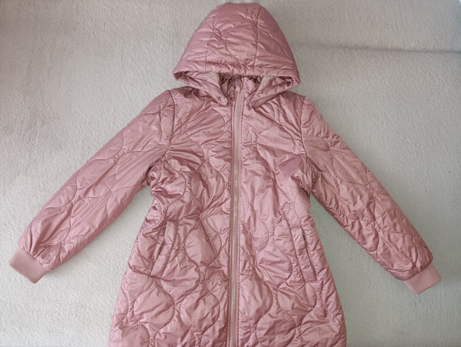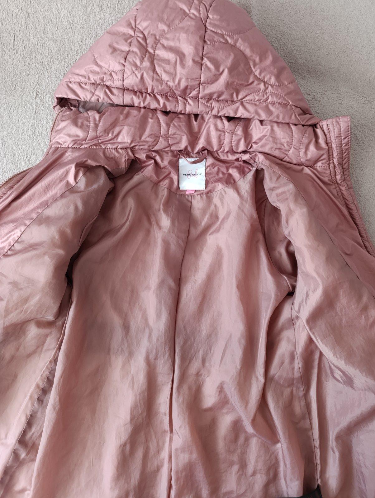 Tenšia mierne vatovana bunda staroružovej farby.Má nádherný strih a veľmi pekne sedí na postave.Bola len párkrát oblečená a je ako nová,jediná chybyčka je, že má kúsok rozparane vrecko vo vnútri.Takú sme ju už kúpili.Značka Vero moda