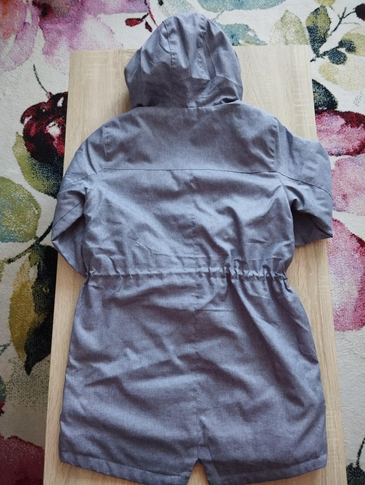 Predĺžená jesenná bunda s kapucňou značky Reserved, veľkosť 158. 2 vonkajšie vrecká, 1 vnútorné, 1vrecko na rukáve. V páse sa dá stiahnuť gumičkou. Kapucňa sa nedá odopnúť. Celková dĺžka 80cm. Šírk...