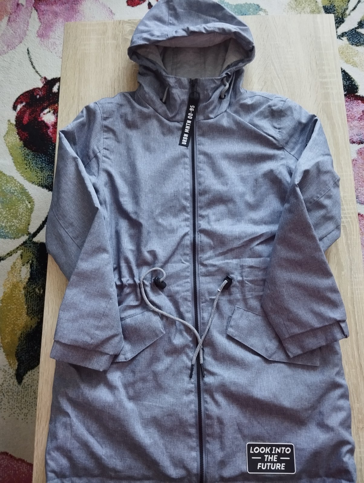 Predám chlapčenskú prechodnú bundu v dobrom nosenom stave, bez poškodenia. Zadná časť bundy je predĺžená, v páse sa sťahuje so šnúrkou. Cena 12€ + poštovné.