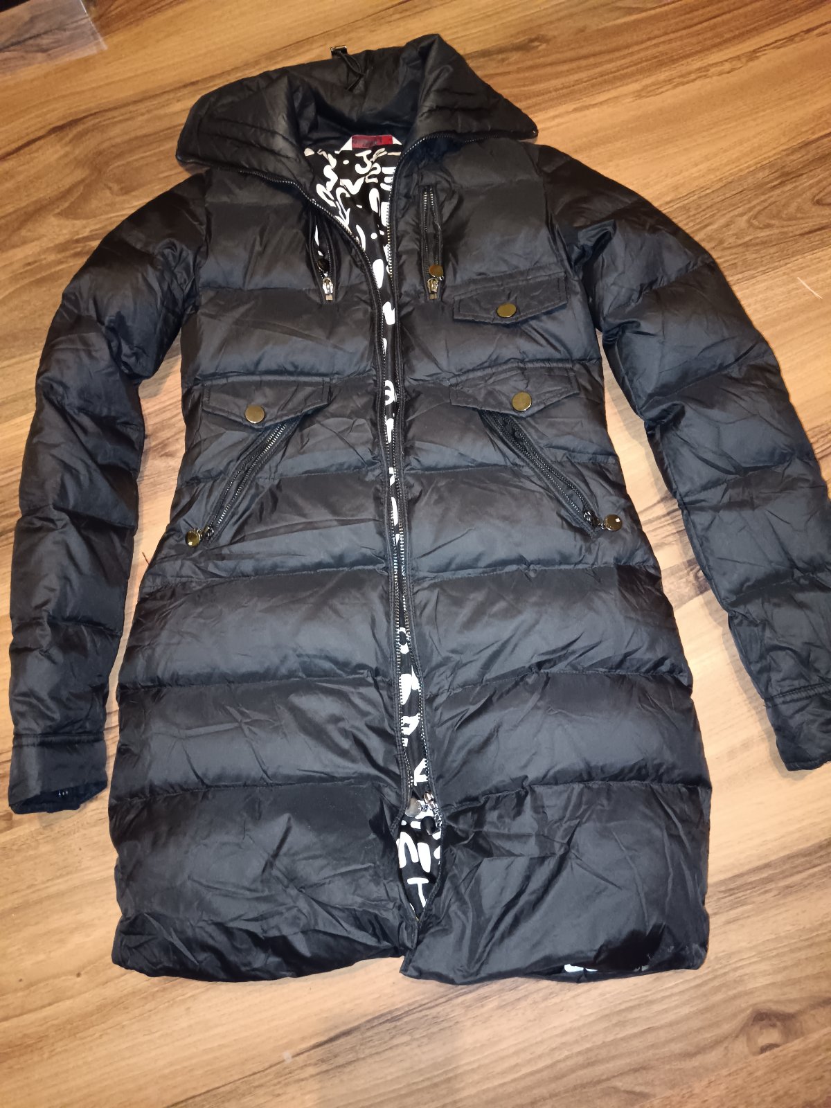 Predám nádhernú kvalitnú bundu liu jo veľkosť S Sadne aj na veľkosť M Má krásne zlaté doplnky, opasok, na bokoch sa dá odopnut PC vysoká