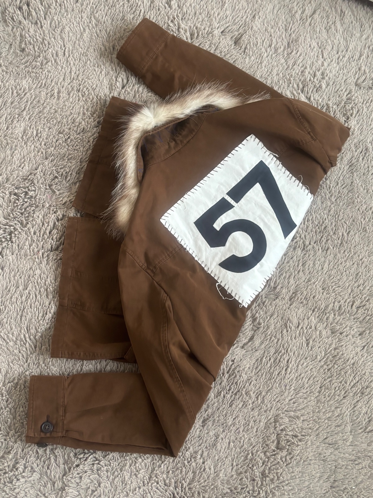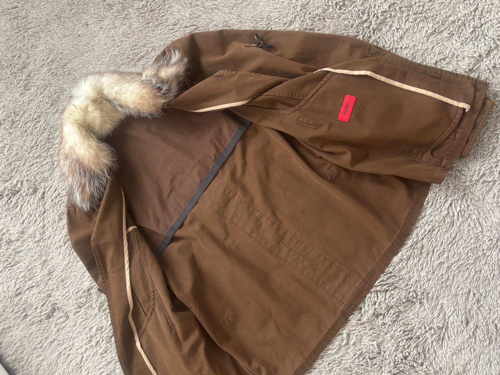 Veľmi dobrý stav, bunda je tenká, kožušina sa da odopnut
