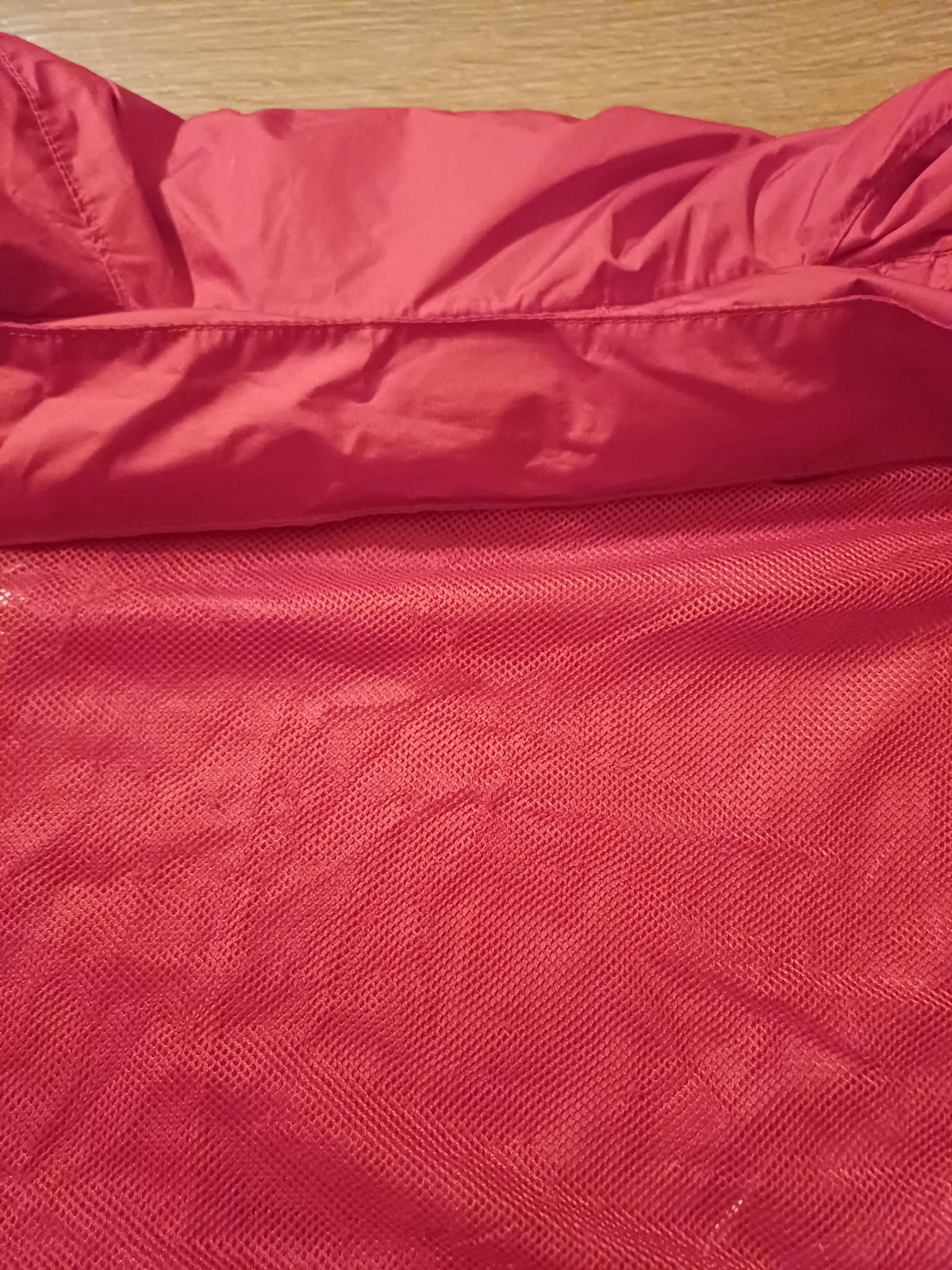 je velmi peknucky, nosenei vidiet len na ten kozusinke okolo vrecka a kapucne, inak v super stave, nam bol trochu velky podla cisla, riadte sa rozmermi dlzka 43 cm, sirka 38×2cm, rukavod krku 46 cm...