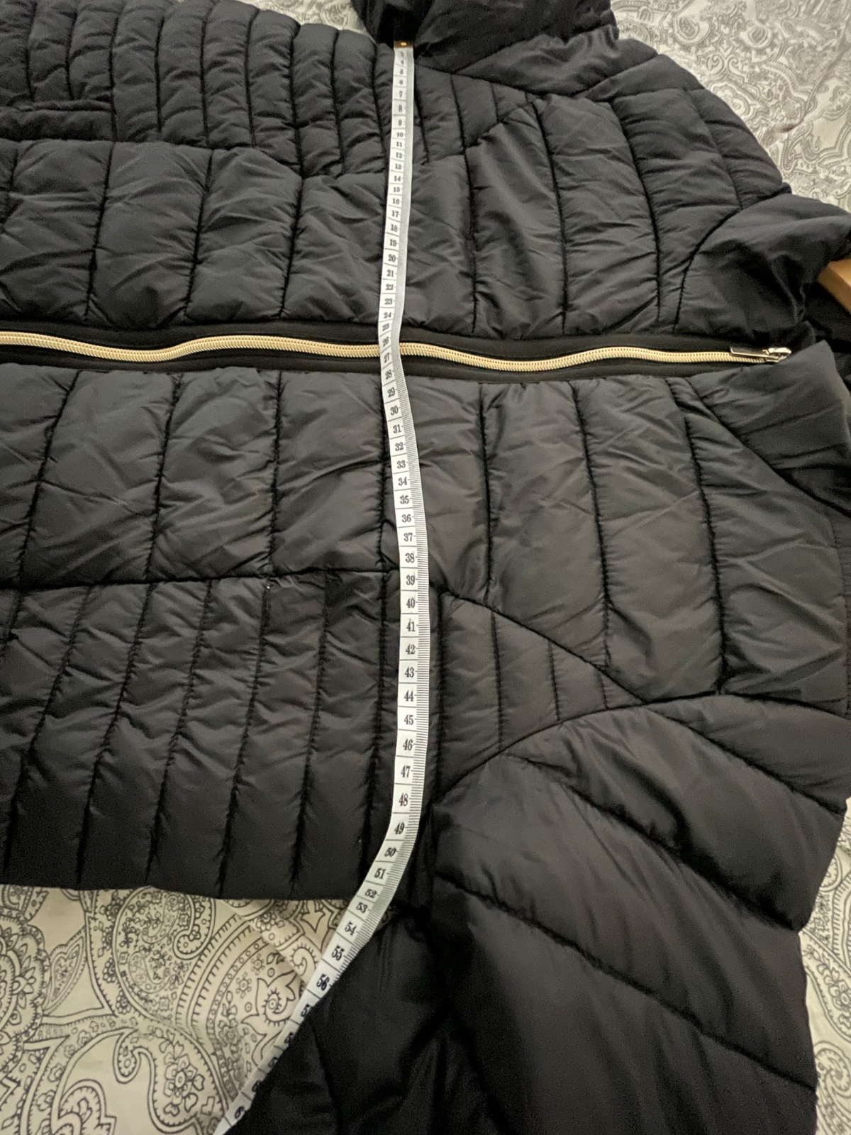 Predám, pár krát nosený, bez poškodenia. Dlzka od krku 53cm, sirka pod pazuchami 45cm, rukav od sitia 61cm cena + pošta