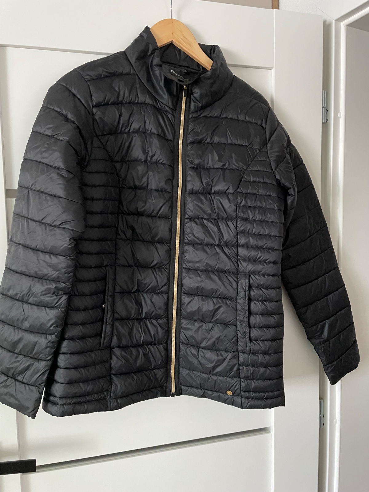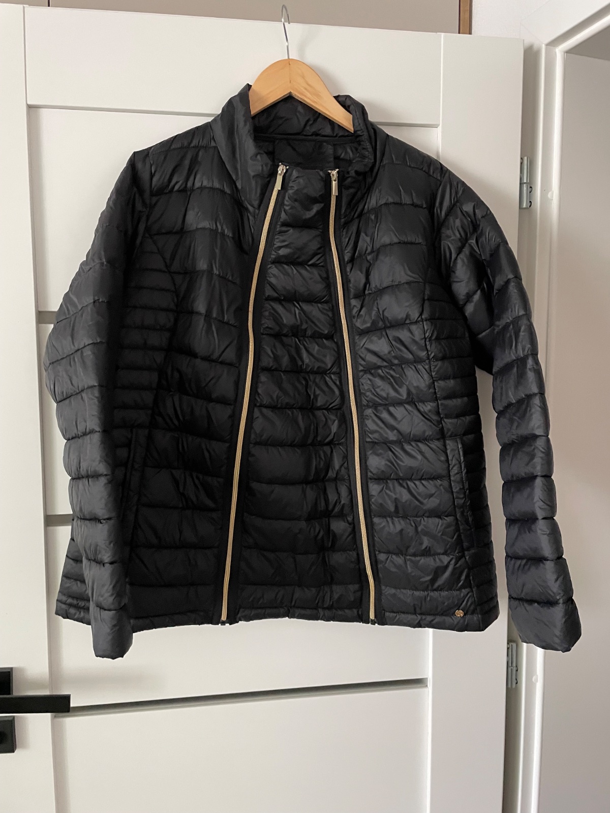 Zaujímava bunda po bokoch má zipsy ktoré trochu rozšíria bundu je pohodlná akurát má odtrhnuté pútko na zavesenie