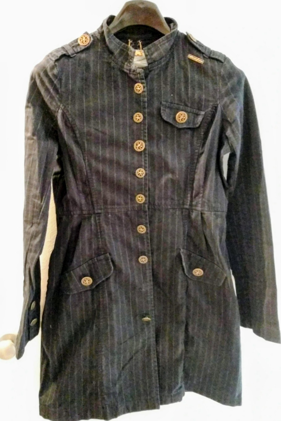 Krásny kabátik malo noseny veľkosť UK 14 taká 40-42 . Farba je ako na foto taká slivkovo modrá.