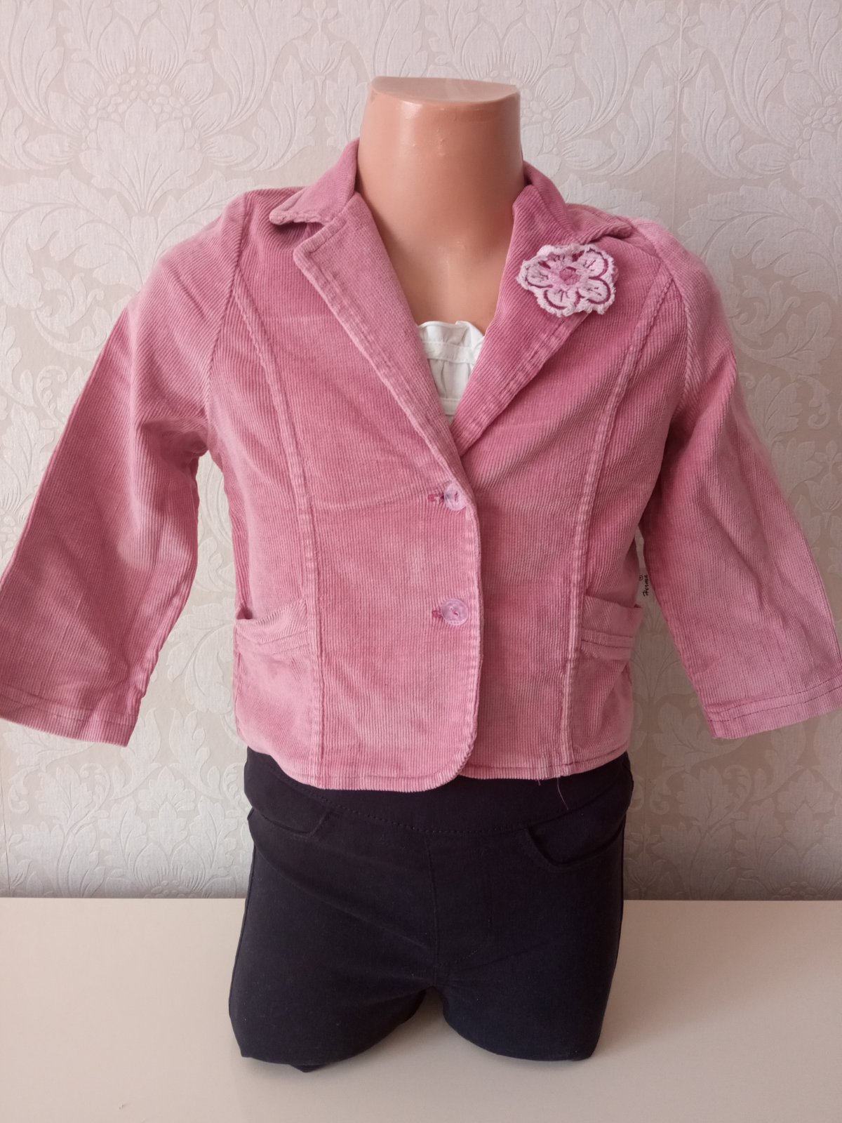 Dievčenské menčestrové sako s kvetom Herma