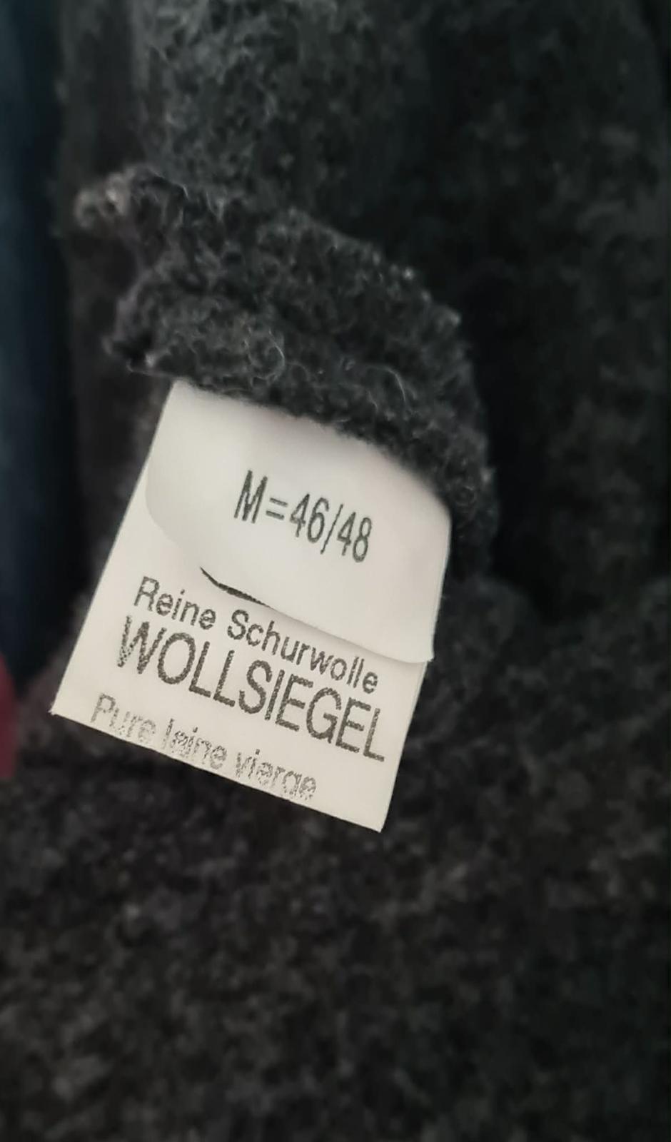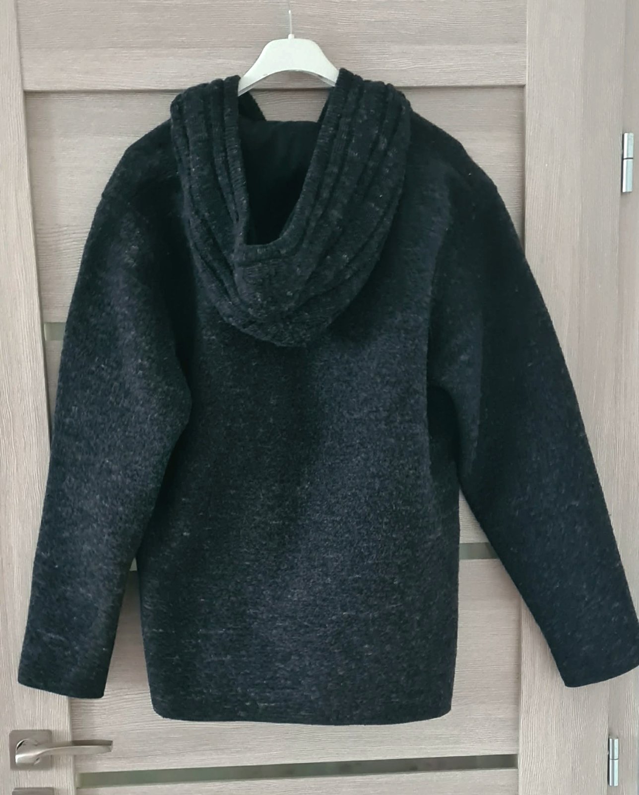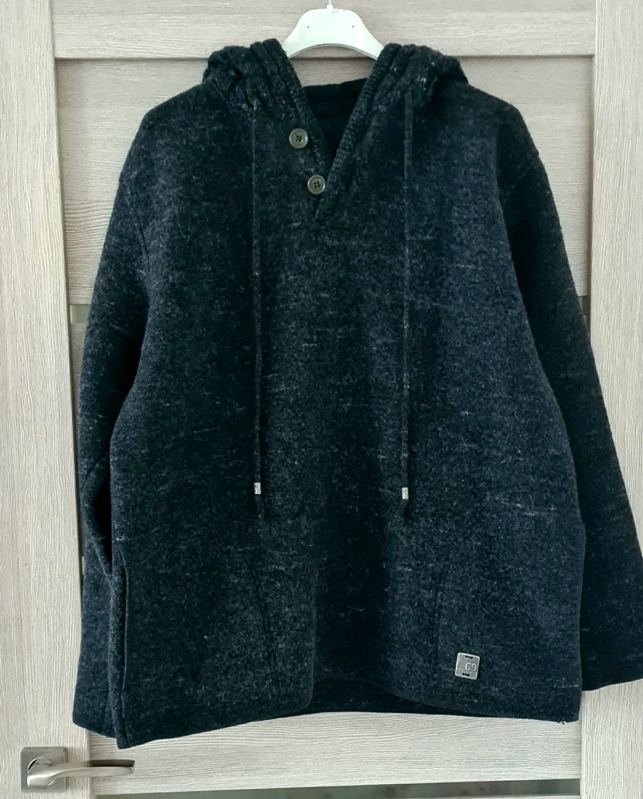 Vlnená mikina, bunda - šírka cez prsia 59cm. Kapucňa je podšitá. Na bokoch má vrecká. Stav novej.