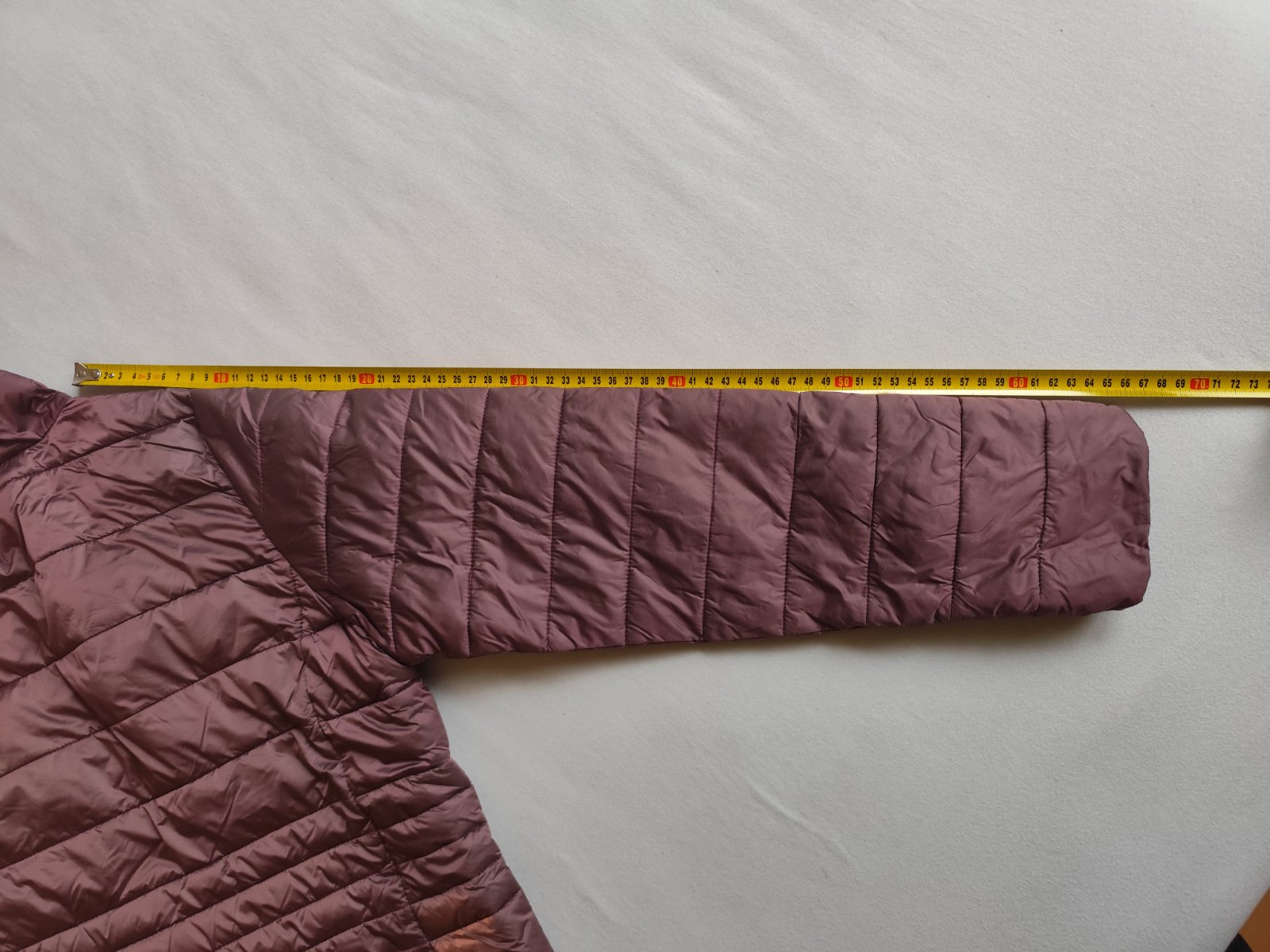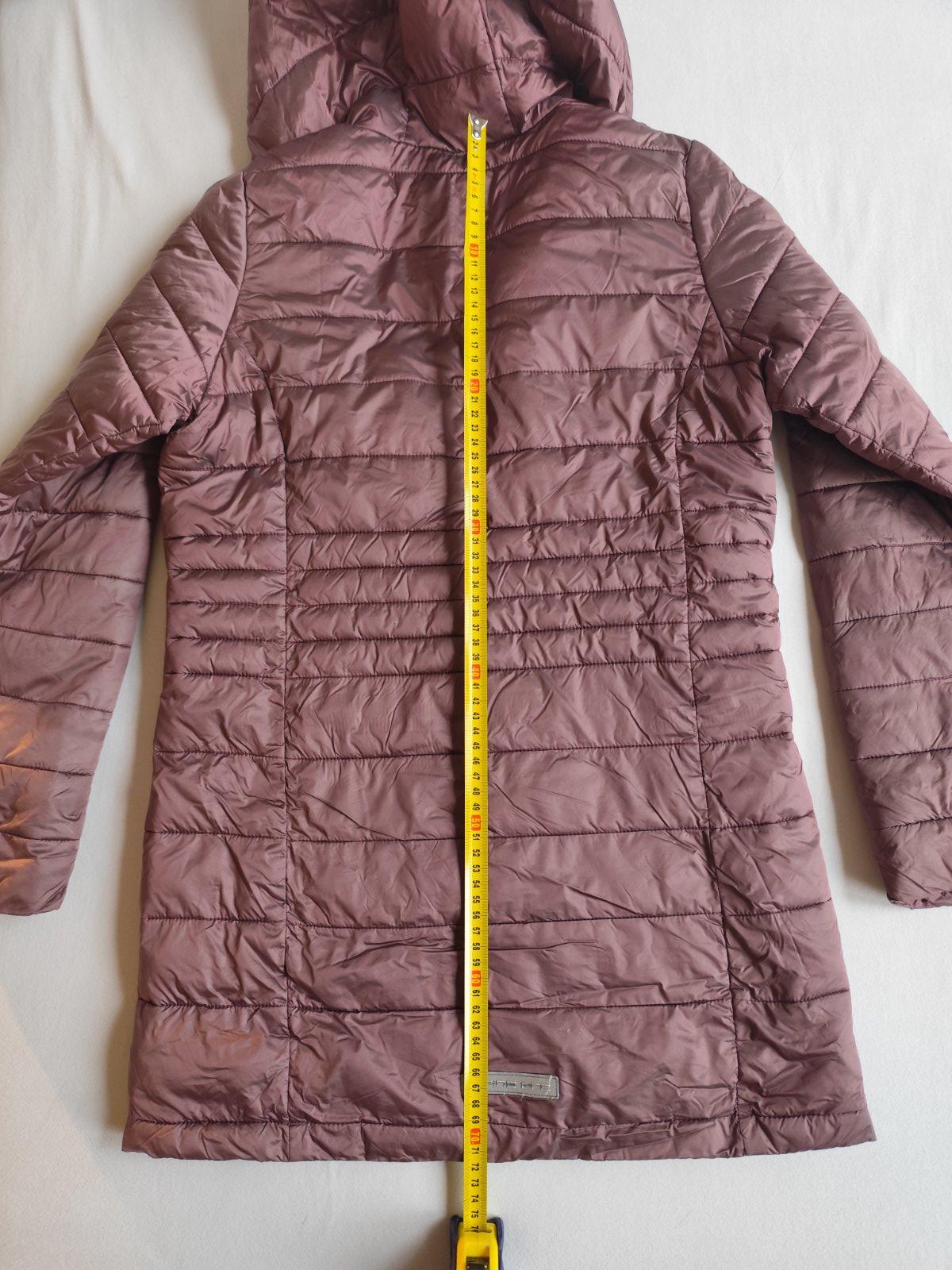 Jemne vatovana bundička, všetko je funkčné, len jemne ošúchany napís vzadu na bunde. Veľkosť: 152/158.