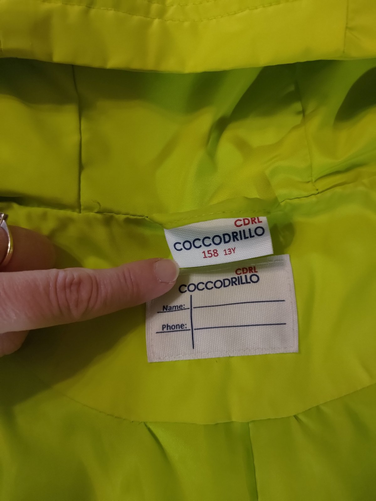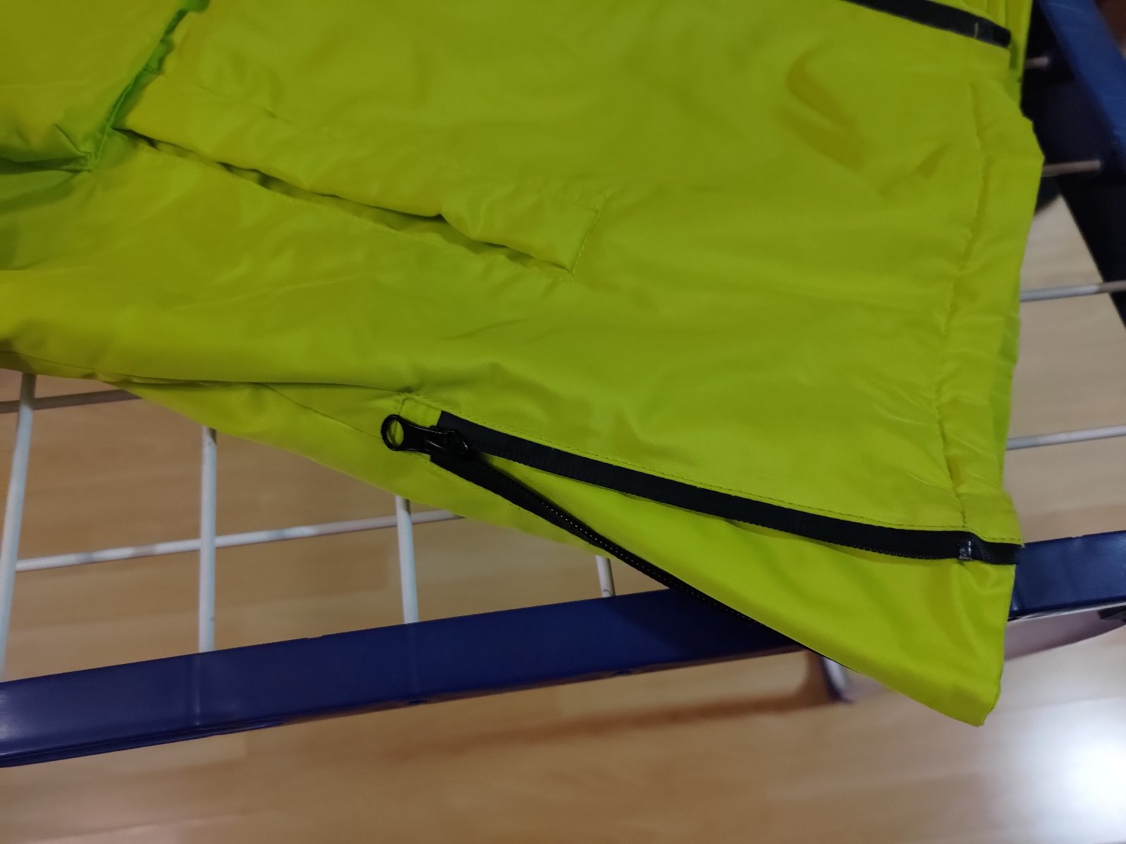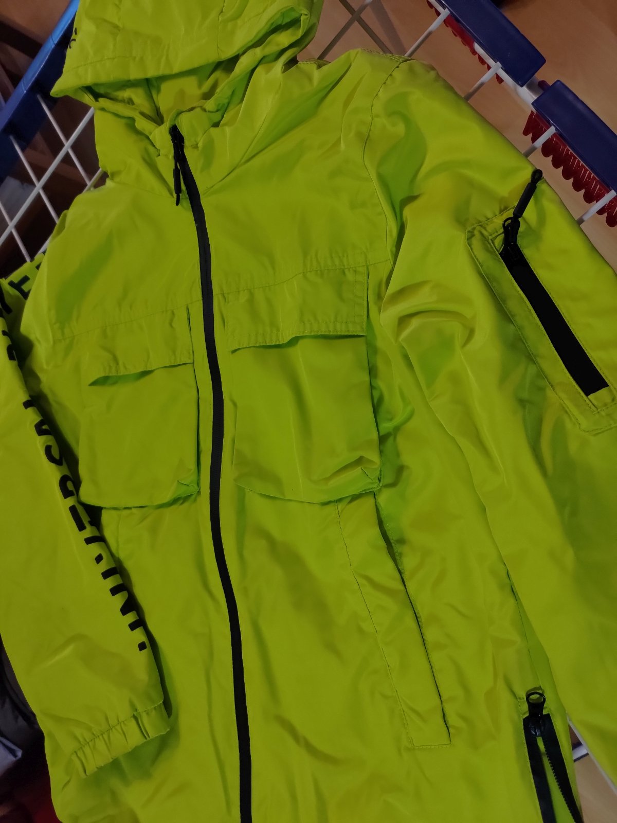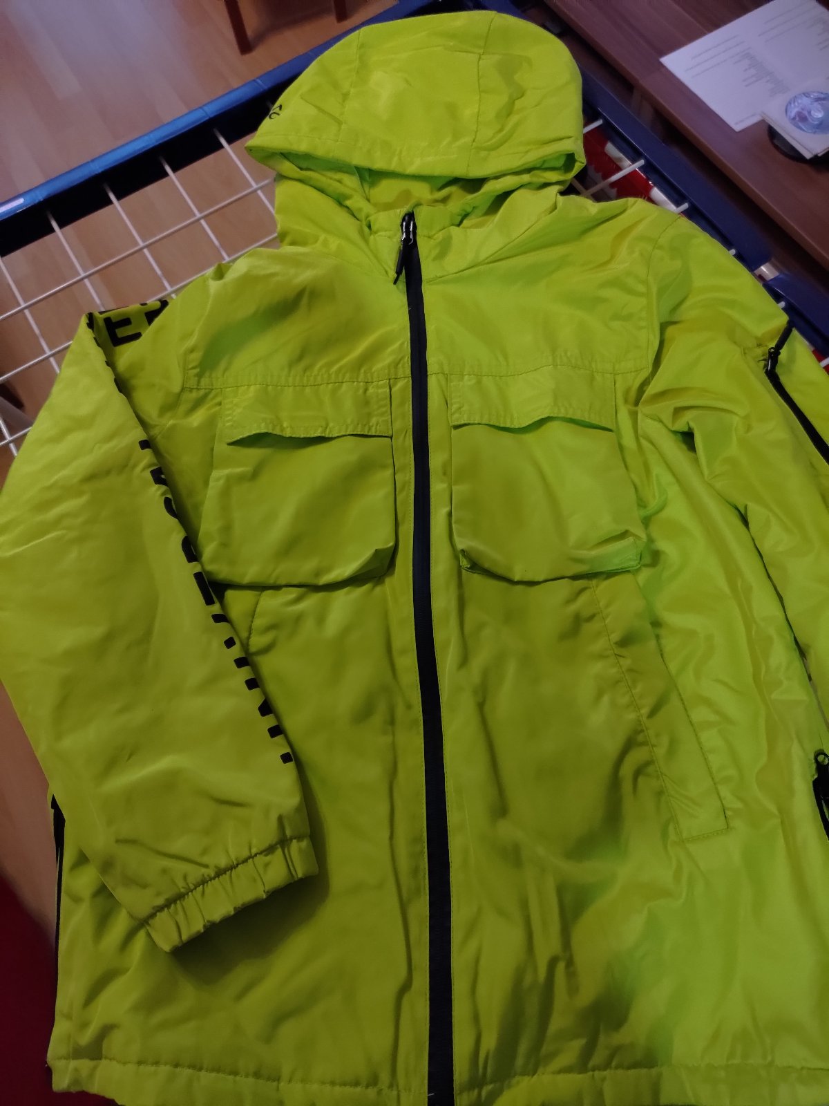 Neónovo žltá (pre niekoho možno zelená neónová) bunda na skorú jar, resp. neskorú jeseň. Je trochu zateplená, ale nie je vhodná do extrémnych mrazov.