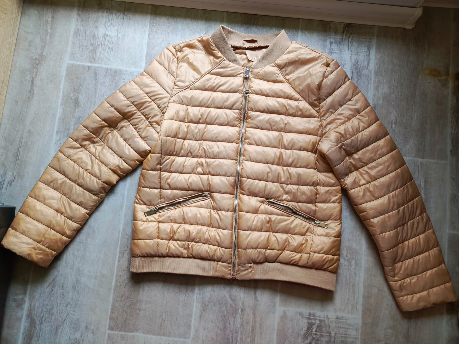 Dobrý stav, nosena,vhodná na jeseň aj miernu zimu, veľmi dobre sa nosí,ľahká, skladatelna do batohu, nezaberie veľa miesta, rukávy zakončené jemnou gumičkou, malé zadretie ( da sa opraviť niťou) pr...