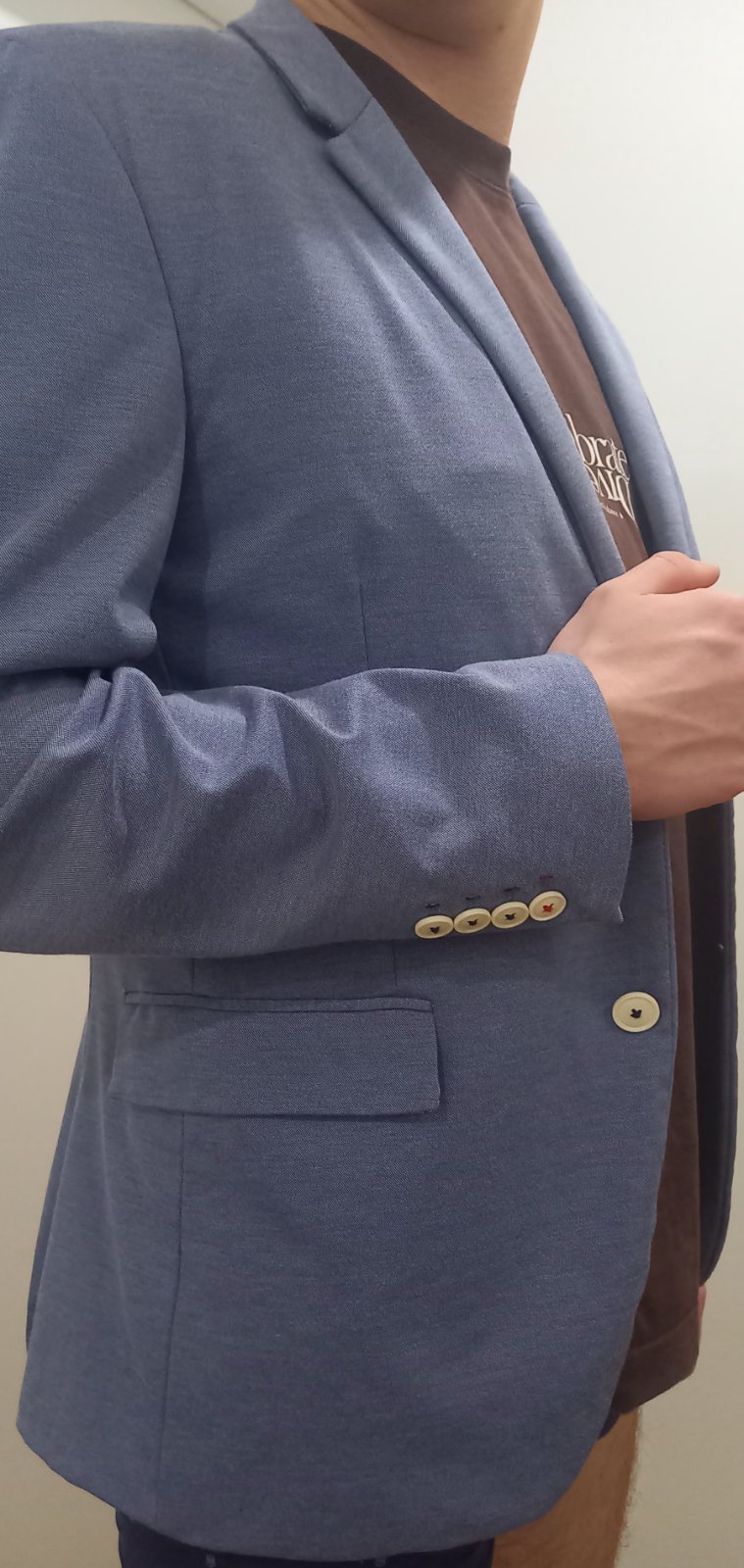 Malo nosené, Slim strih, farba sv modrá, celopodsite, vhodné aj k rifliam na bežné nosenie, alebo aj ako sviatočné, mam 2 ks rovnaké (po mojich sy och dvojčatách) rozmery dl 70 cm, šírka cez hruď ...
