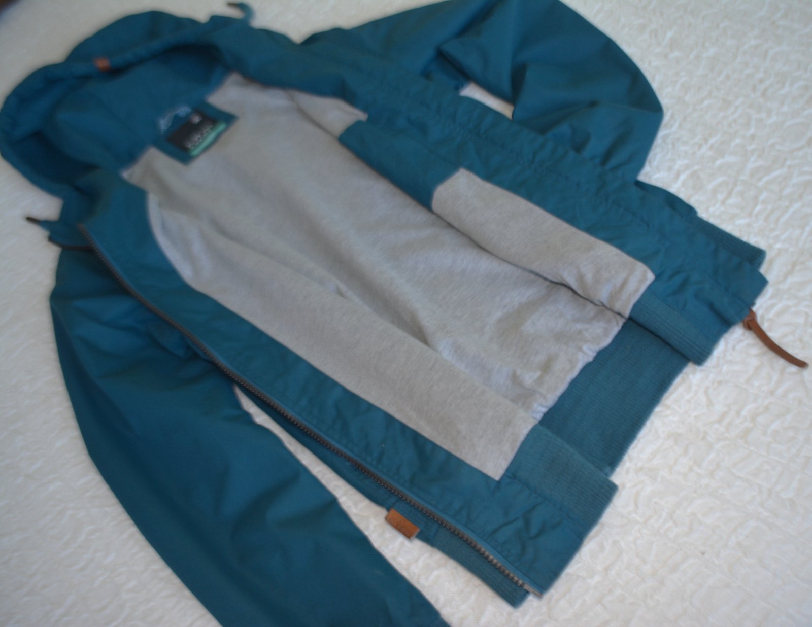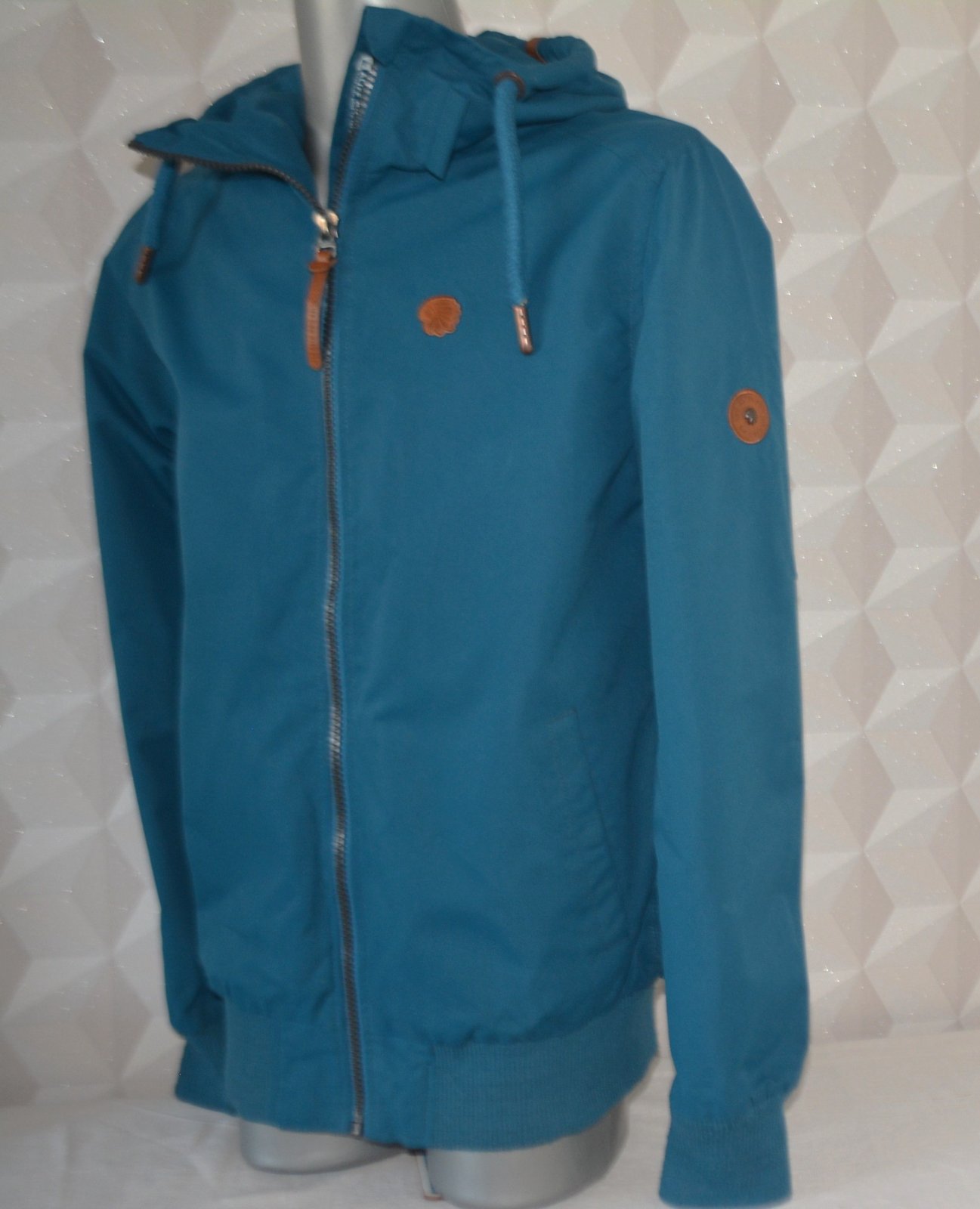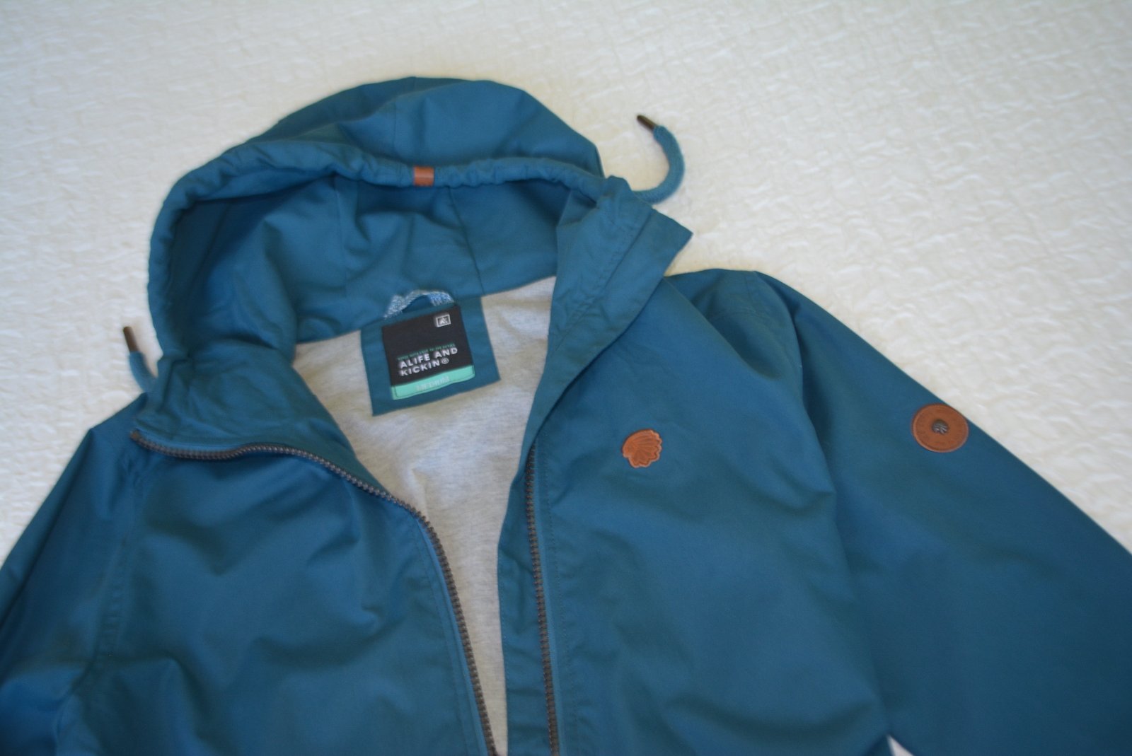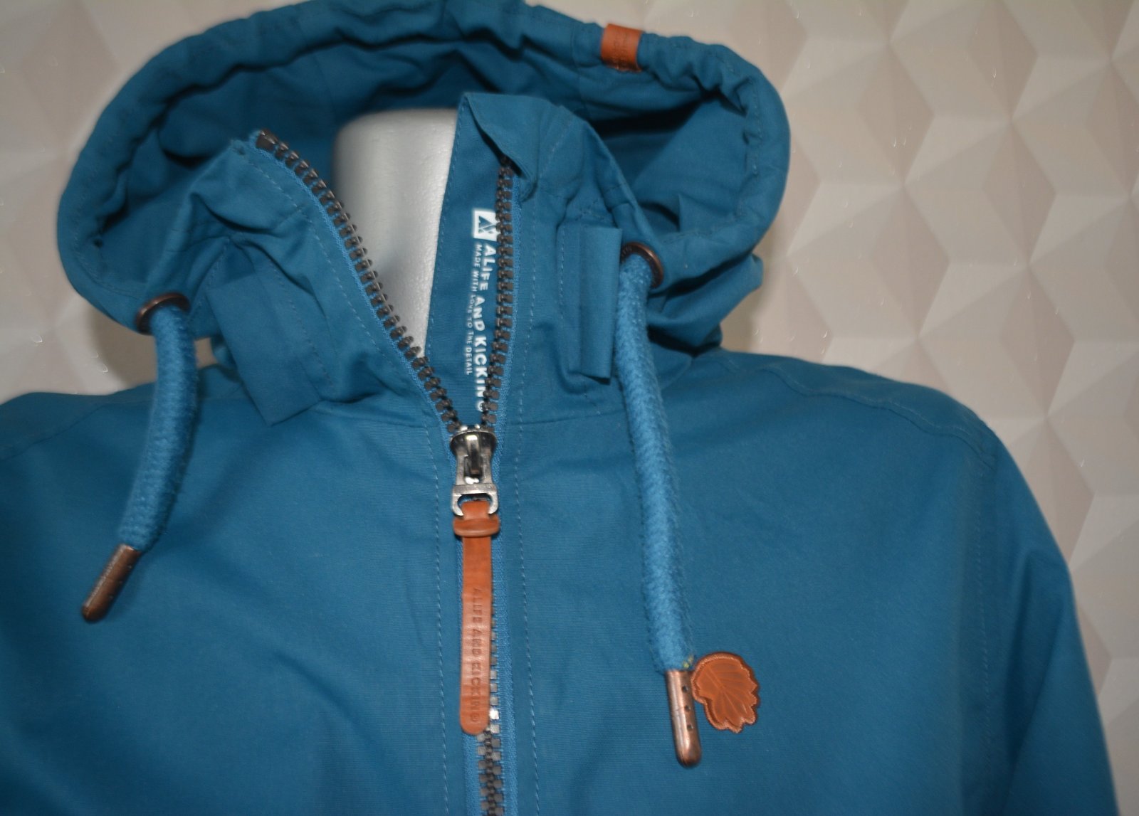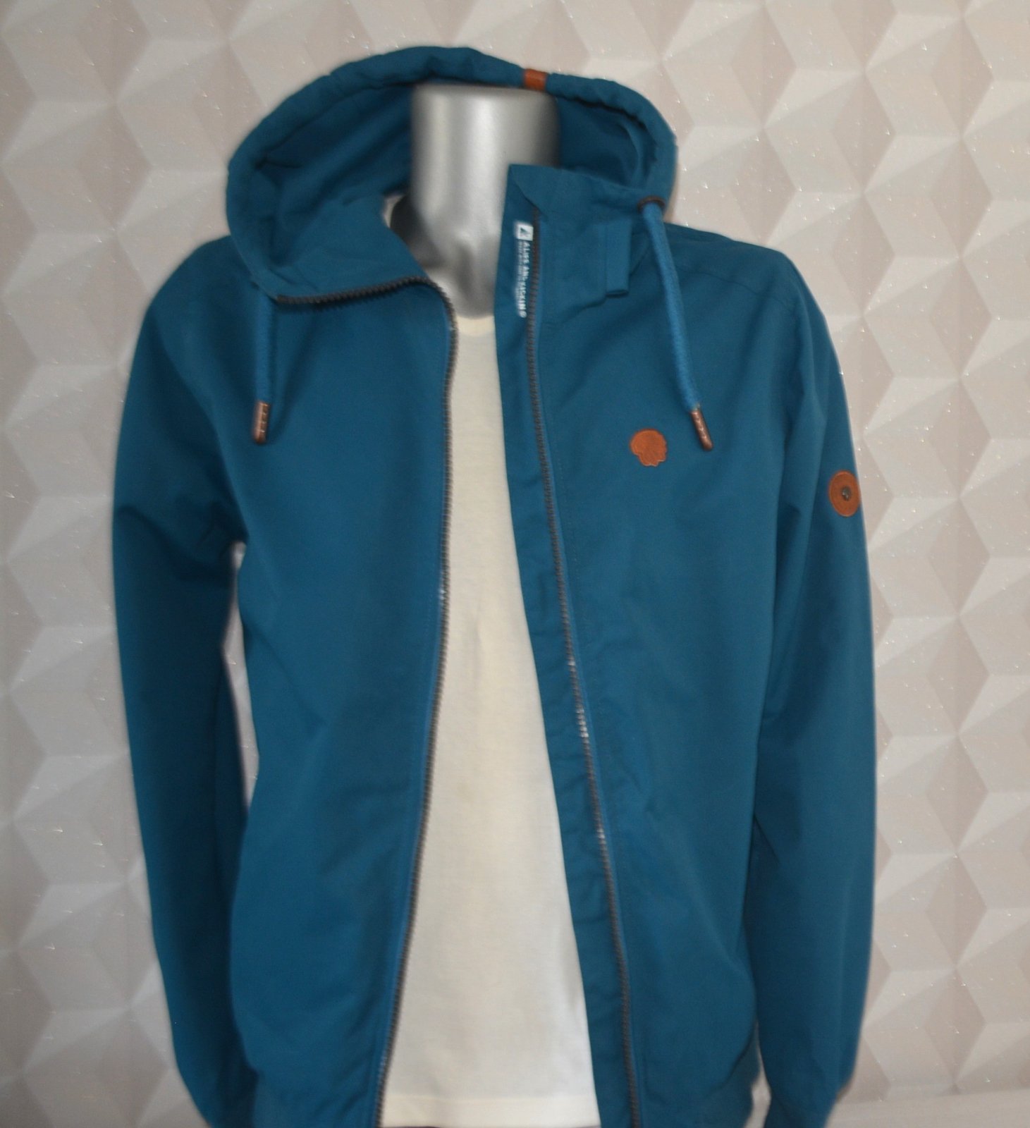 pánska tyrkysovo modrá bunda s kapucňou, vhodná na "prechodné" obdobie