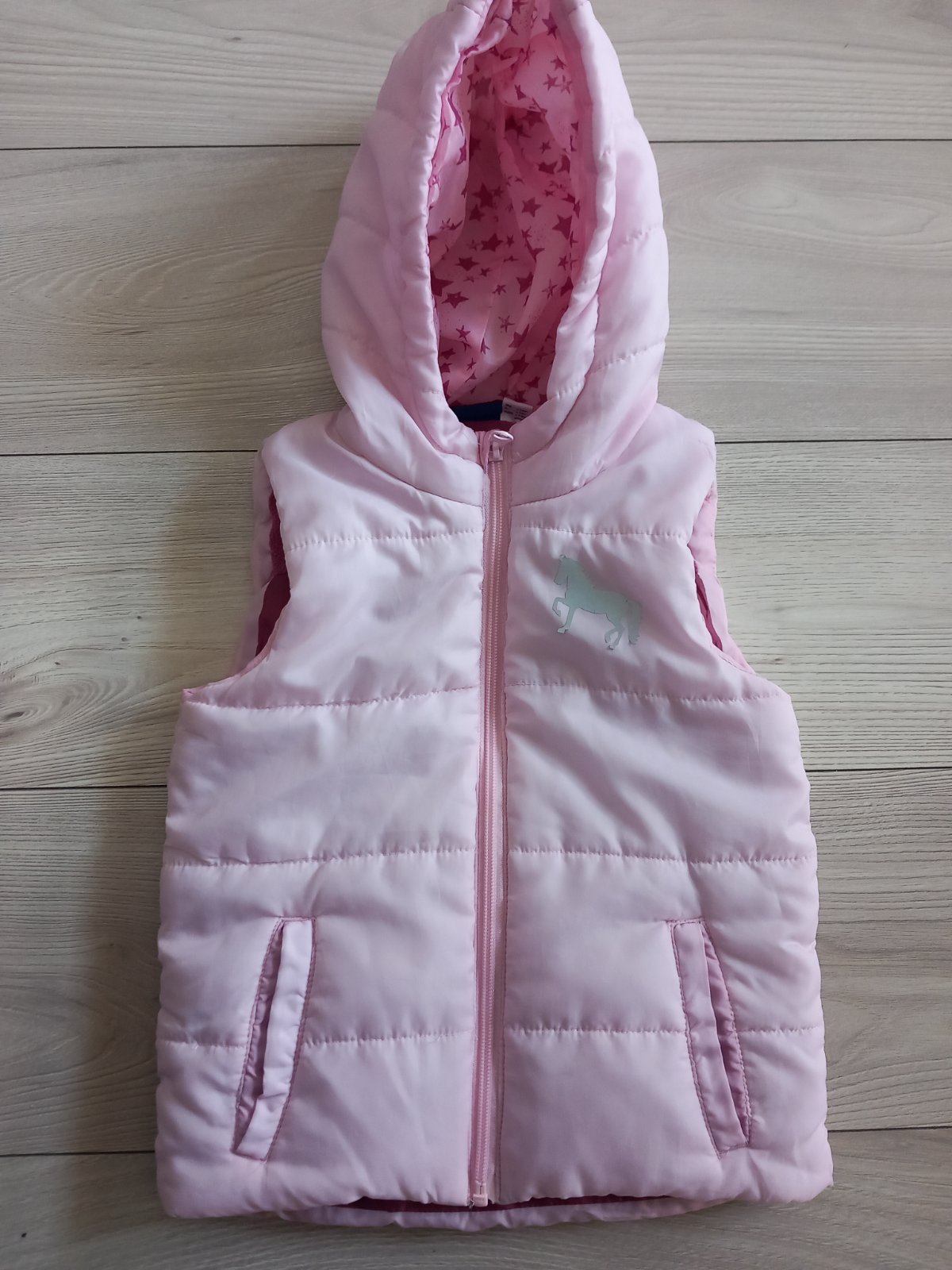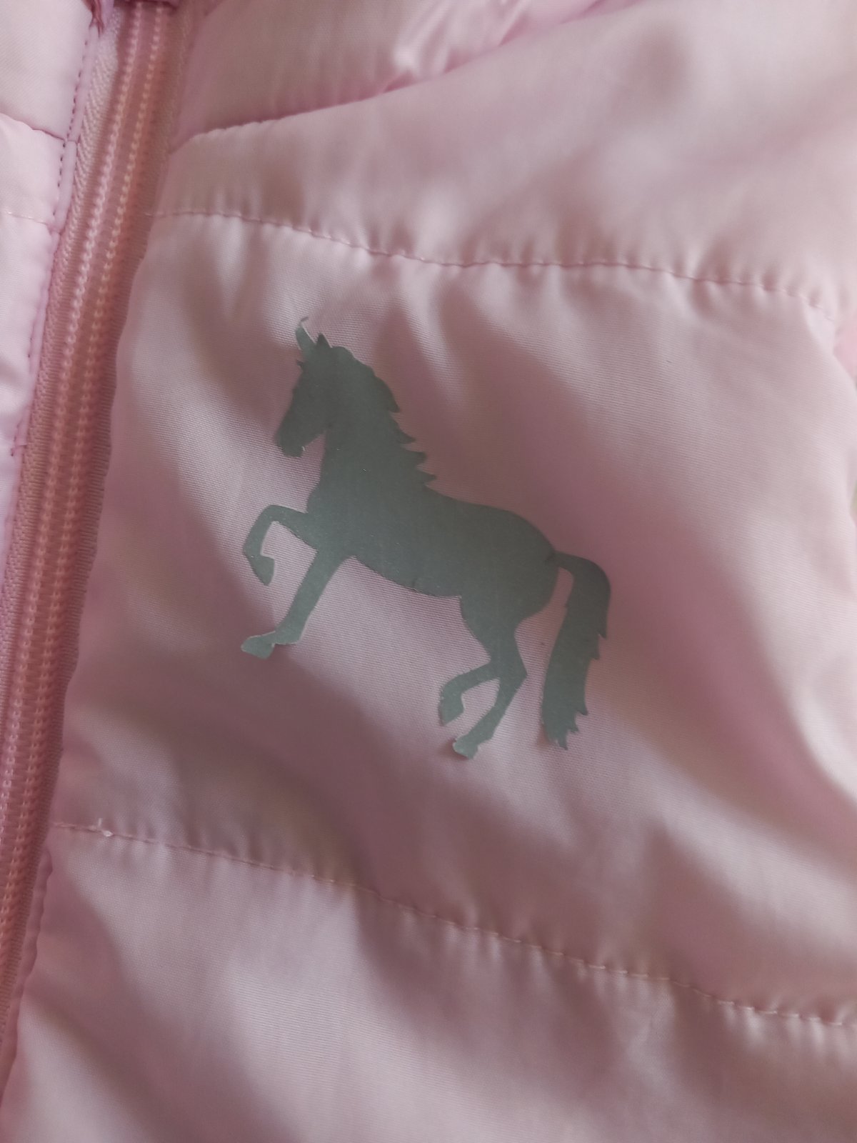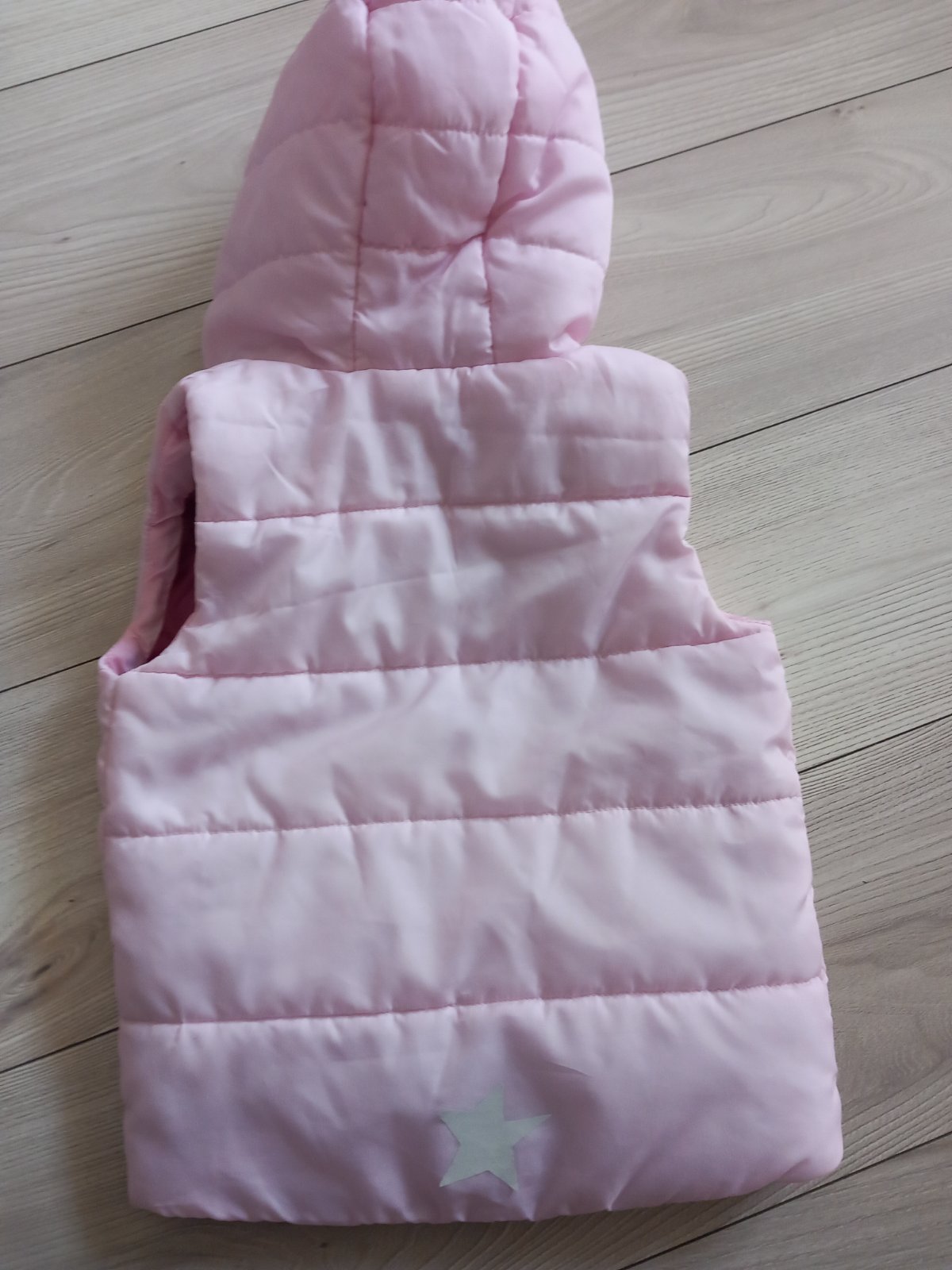 Predám dievčenskú vestu s neodnímateľnou kapucňou, veľkosť 104. Vesta je svetloružovej farby, na zips a s reflexnými prvkami. Celková dĺžka - 43 cm + kapucňa, šírka - 2x33 cm.