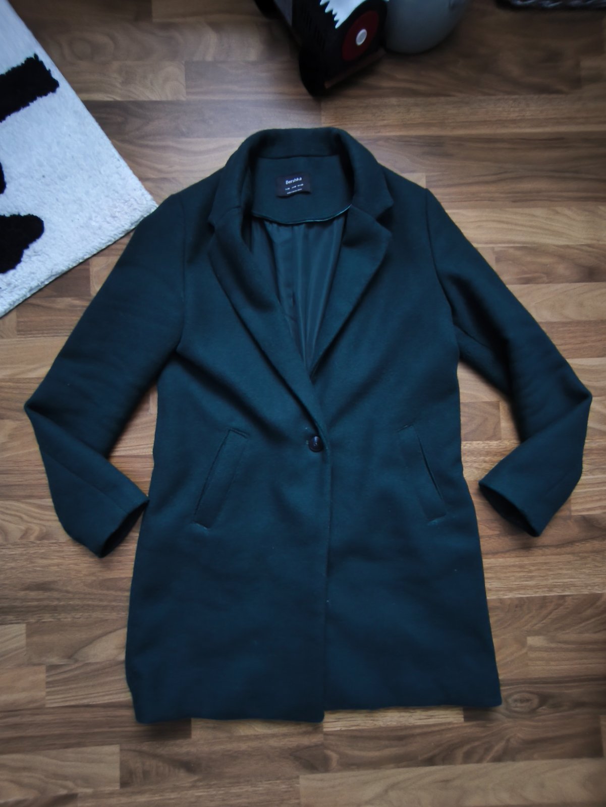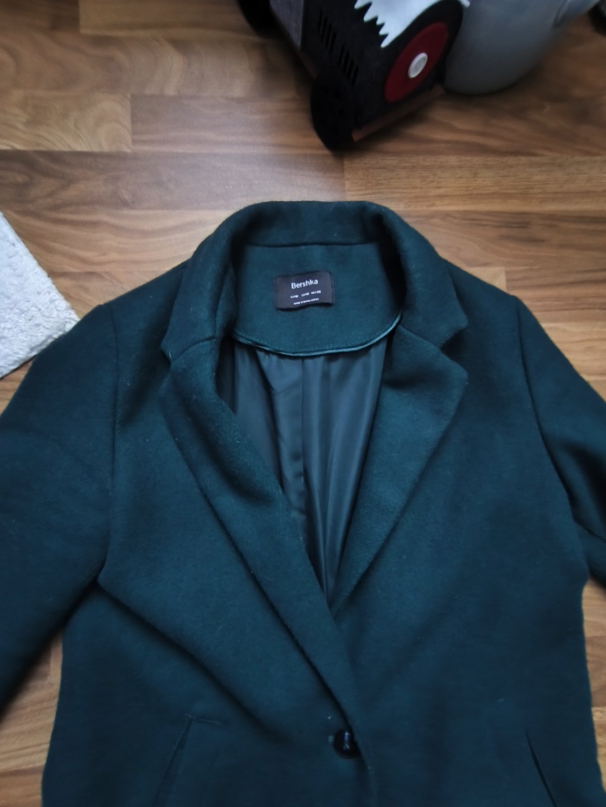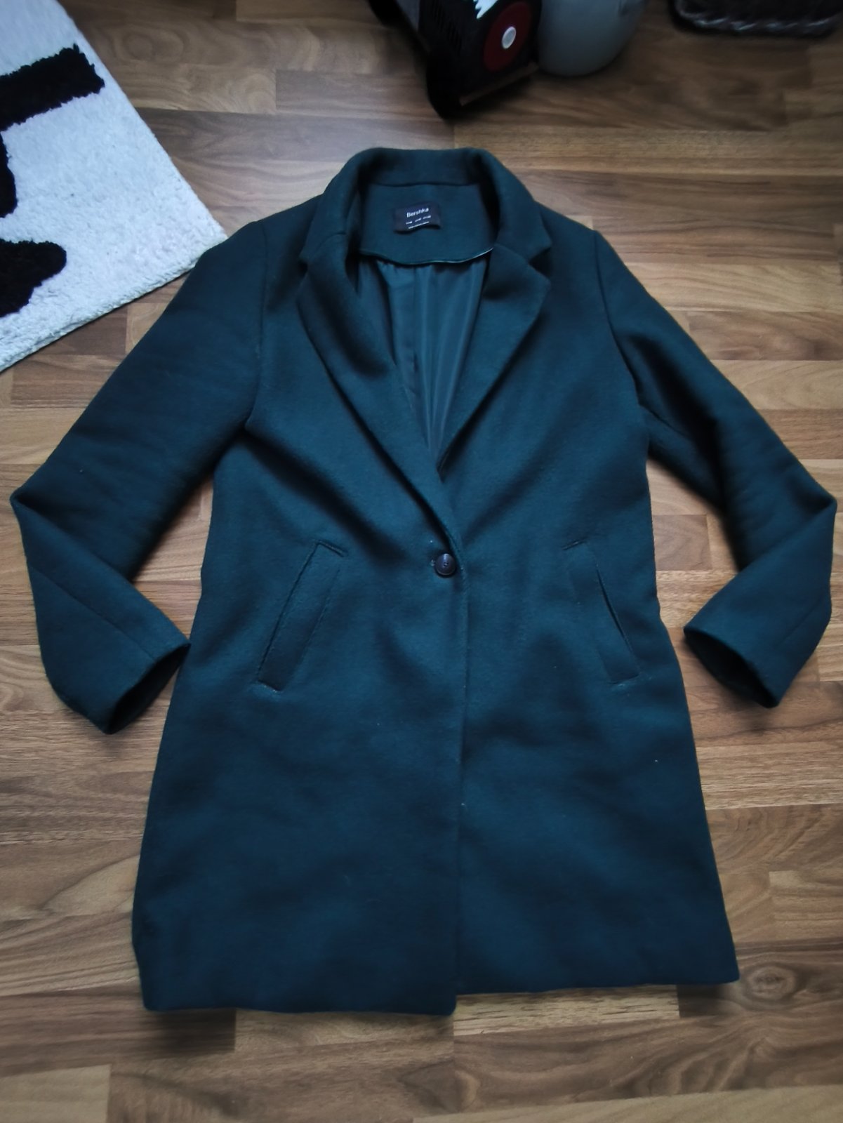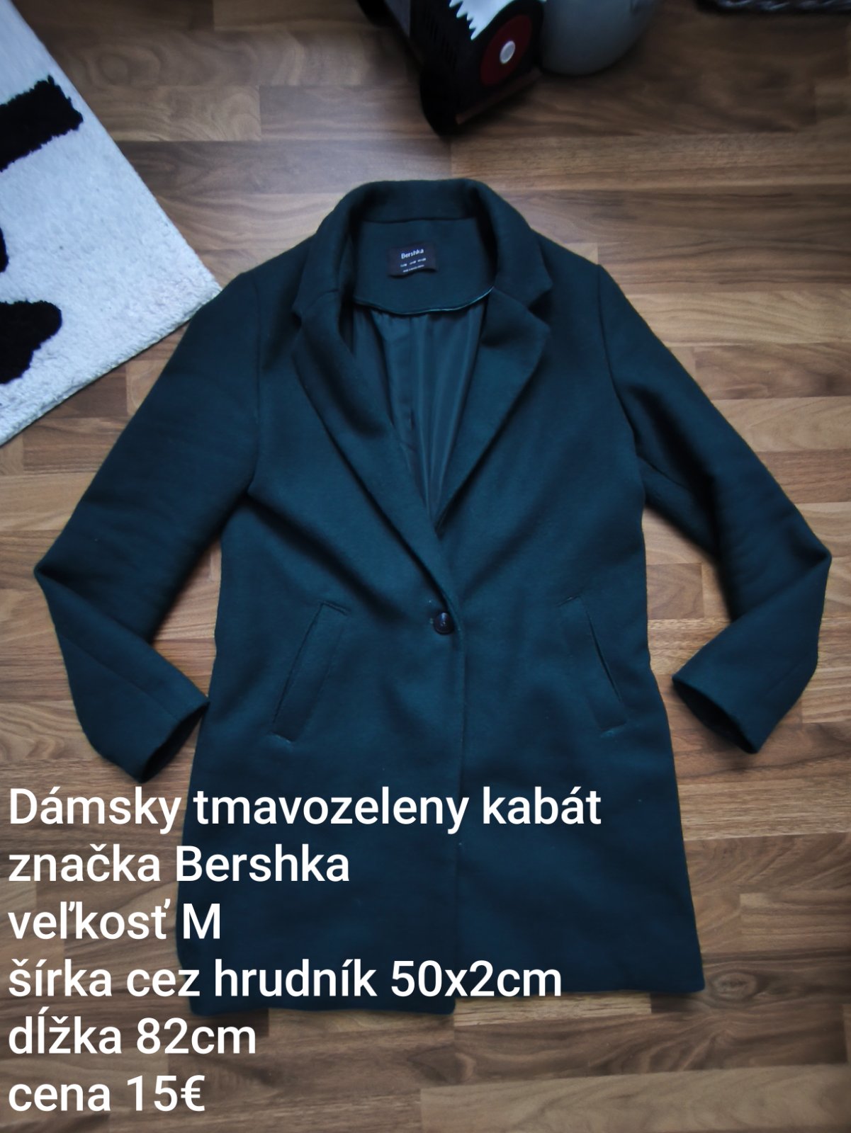 Dámsky štýlový kabát značky Bershka, veľkosť M, rozmery viď na foto, má aj nejaké minizmolky, dajú sa odstrániť nič hrozné, je to klasický kabát, môže byť kľudne aj na zimné aj na prechodné obdobie.