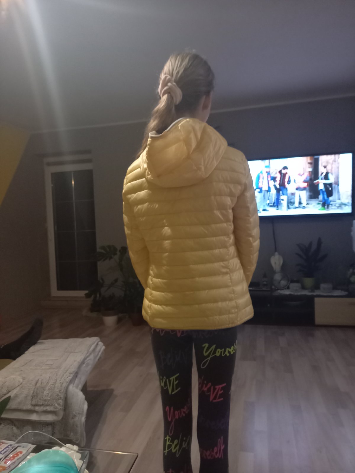 Nepremokavá, pogumovana bunda bez zateplenia. Krásna žltá farba, na zadnej strane som našla malé fľaky viď foto. Zohľadnené v cene.velmi pekná bunda určite nepremokne