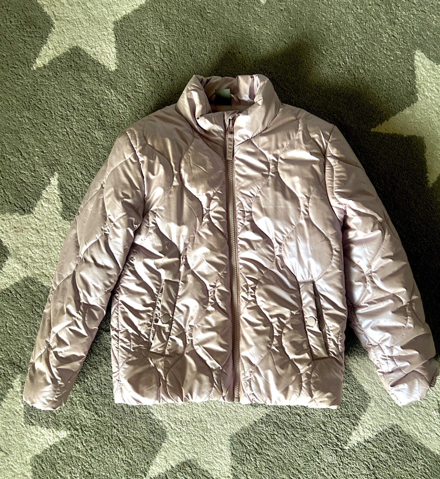 používaná, kupovaná tu dobrý stav- bez nejakých poškodení, aj zipsy ok, kapucna, akurát velkosť udaná 140 ale odhadujem za mensiu lebo je taka kratsia do pása, takze hoc su nam rukávy v pohode, kvo...