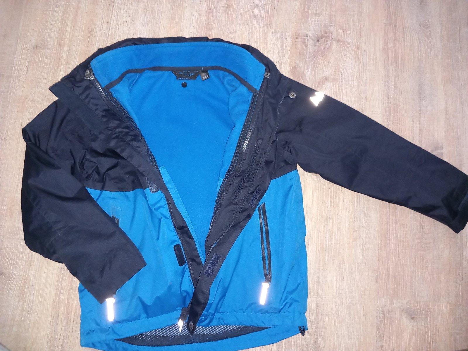 Vetrovka má flísovú vložku, ktorá sa dá odzipsovať a vznikna rak mikina a vetrovka - viď foto. V golieri je zrolovaná kapucňa.