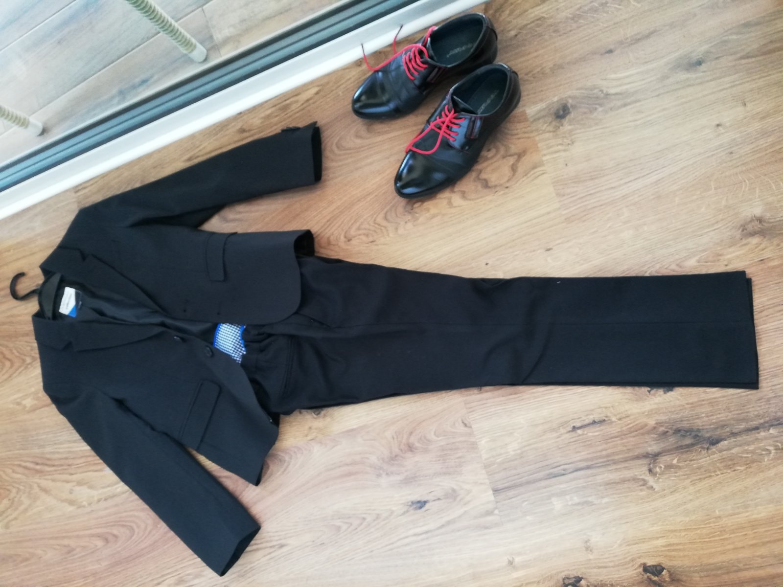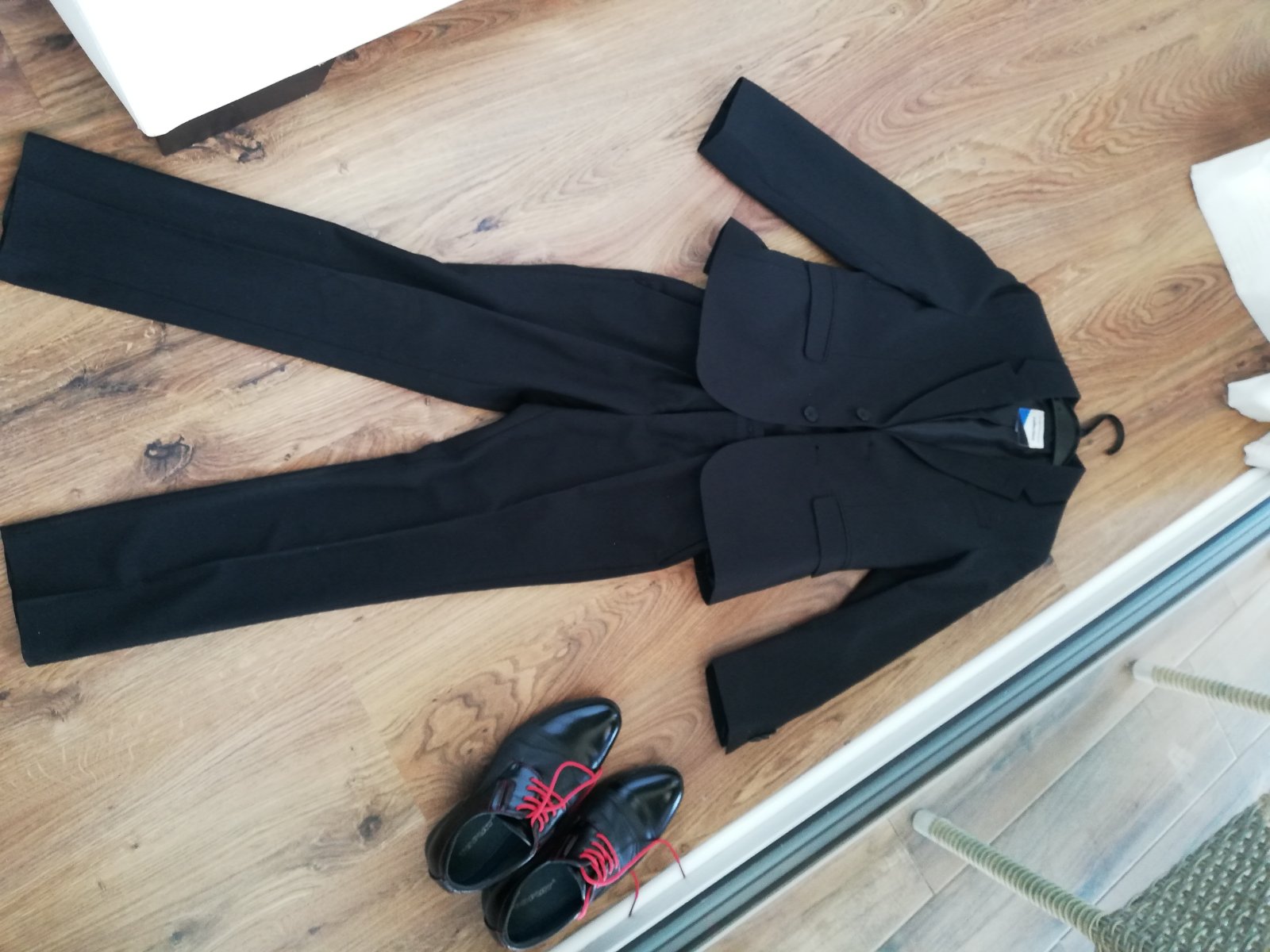 Použité k prvému sv. prijímaniu, 1 x oblečené, sako čierne, veľkosť 7-8 rokov kupované v Piaza Italia, moderný strih..Cena: 10 EUR
