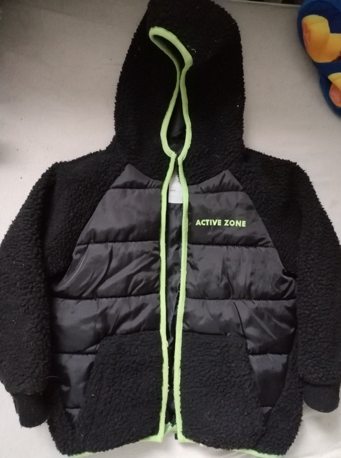 42bk/52 ciernej farby,Bezny noseny stav bez vyblednutia,dier ci flakov000o,chyba kapucna sirka-43 dlzka-49 rukav52