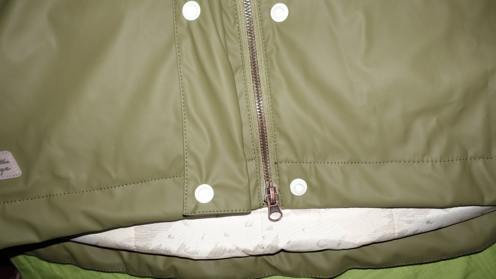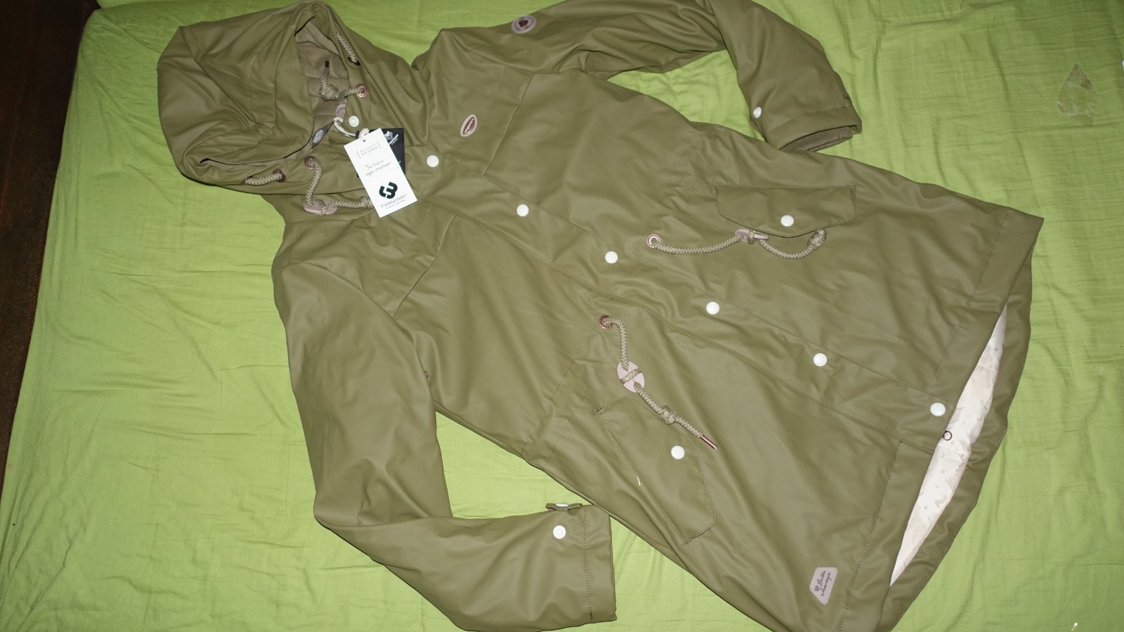 Krasna pogumovana bundicka- nova, s visackami. Je aj futrovana- aj do zimy- skor miernejsej.