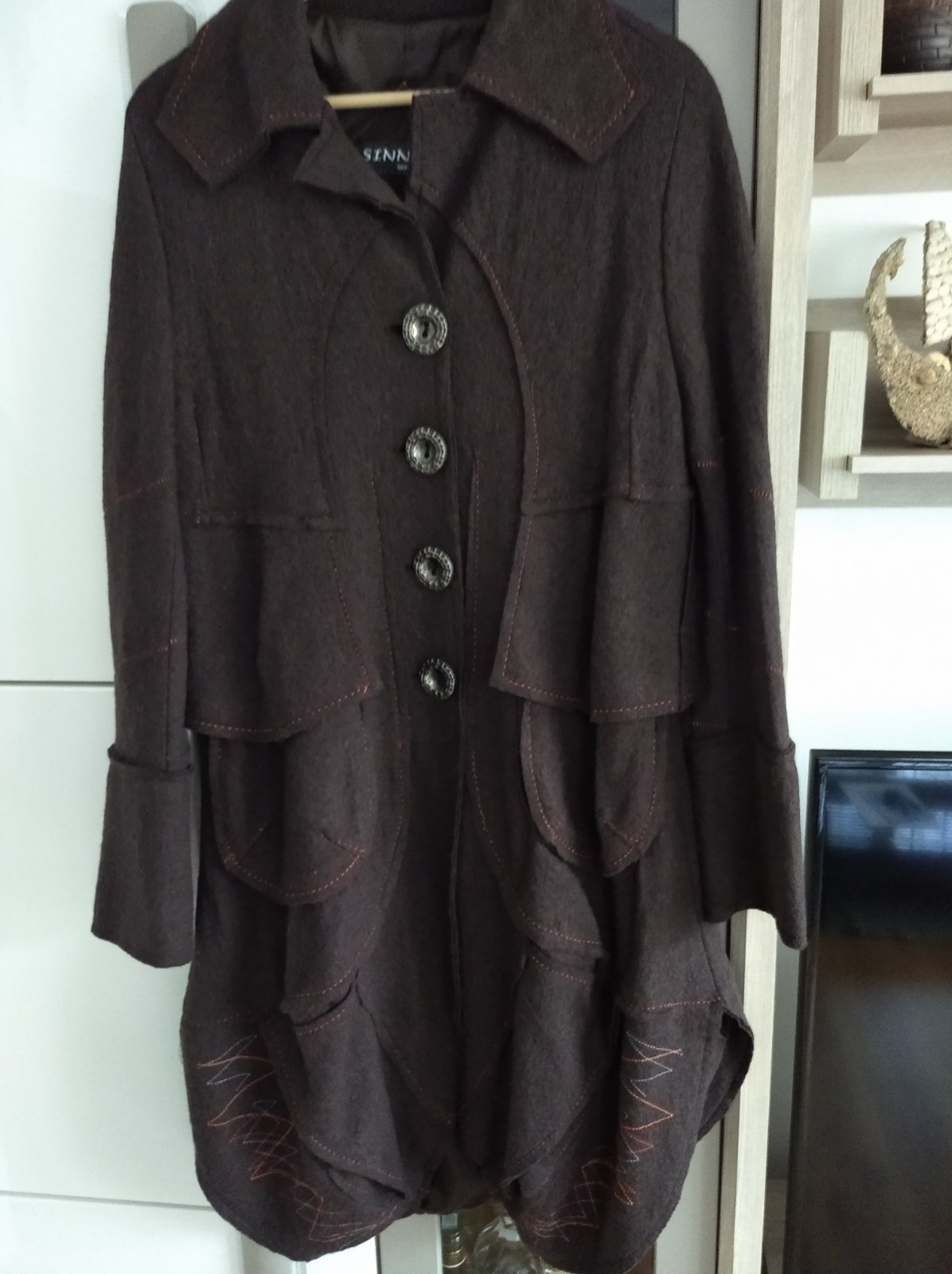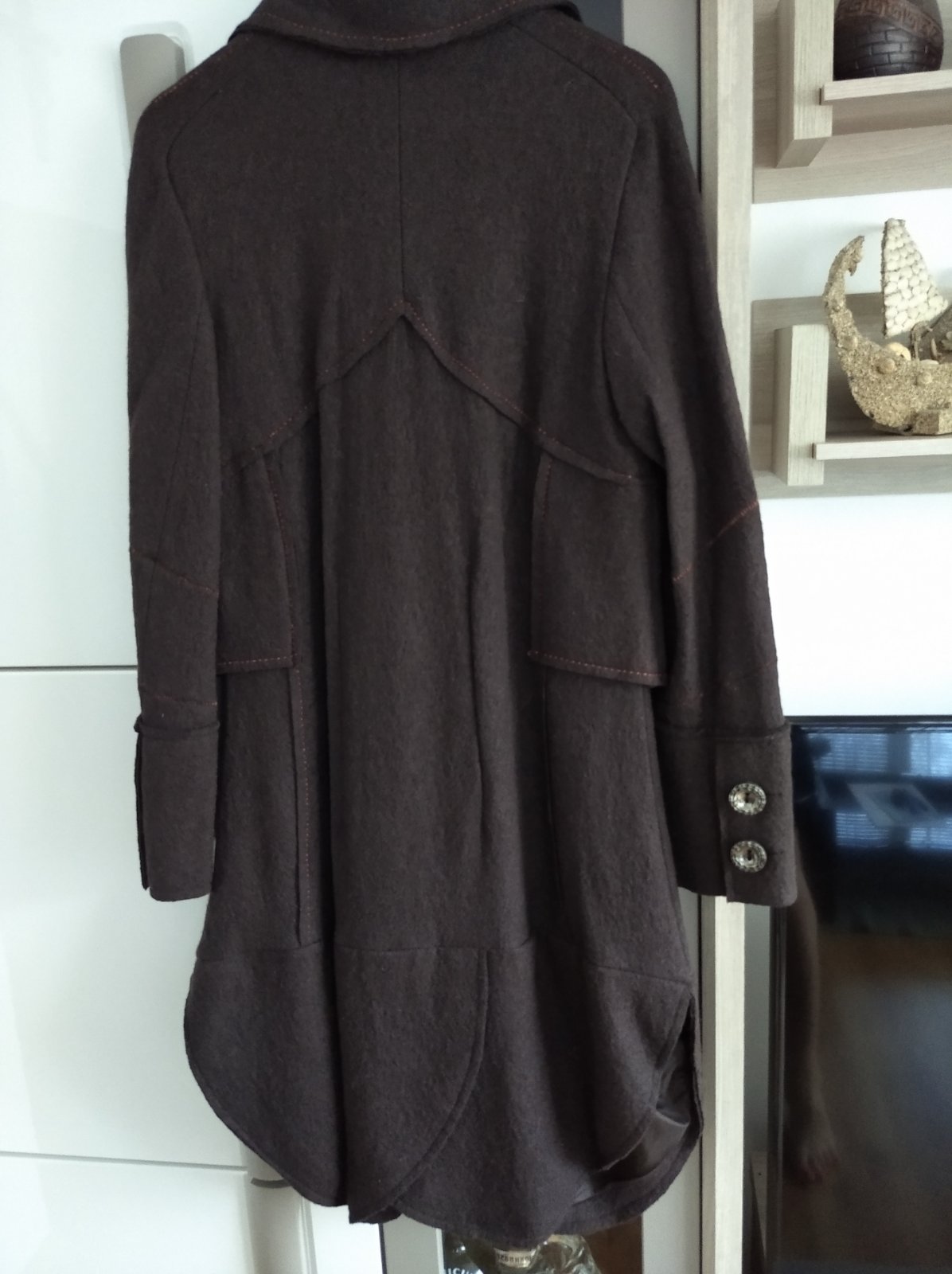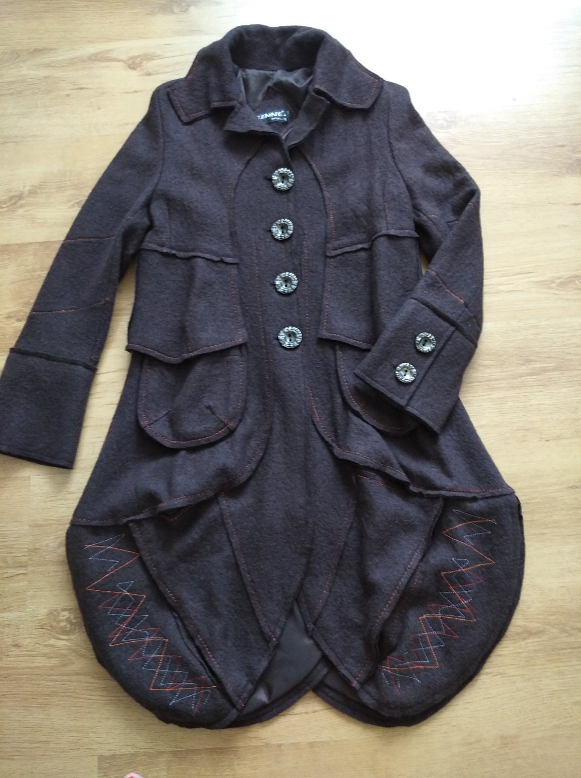 Veľmi pekný, minimálne noseny, zaujímavy kabát.
