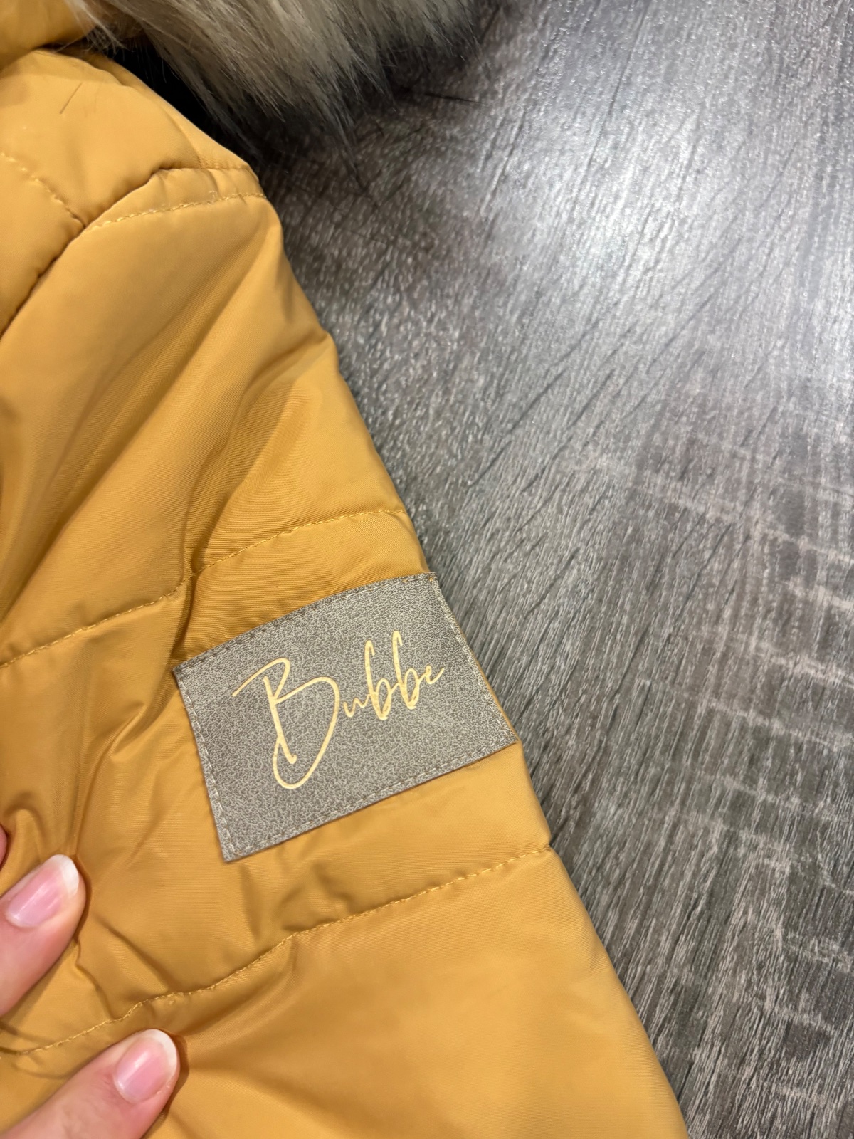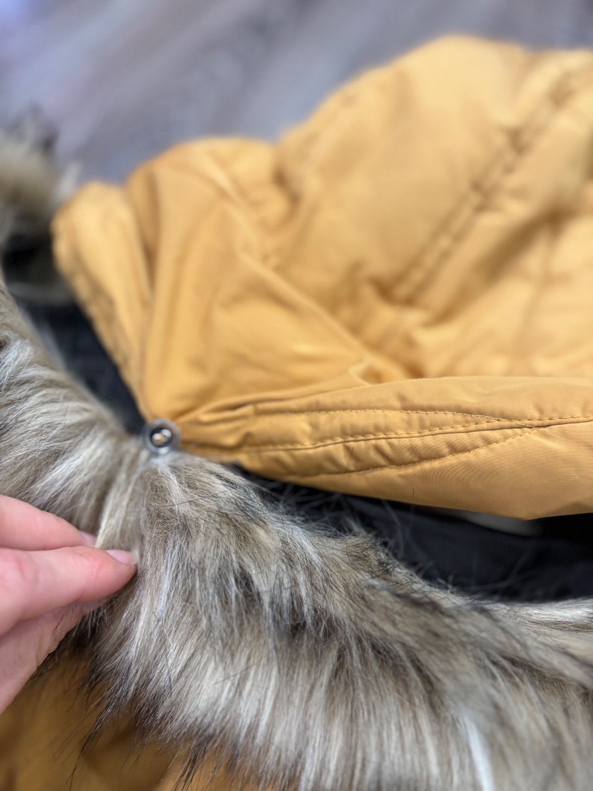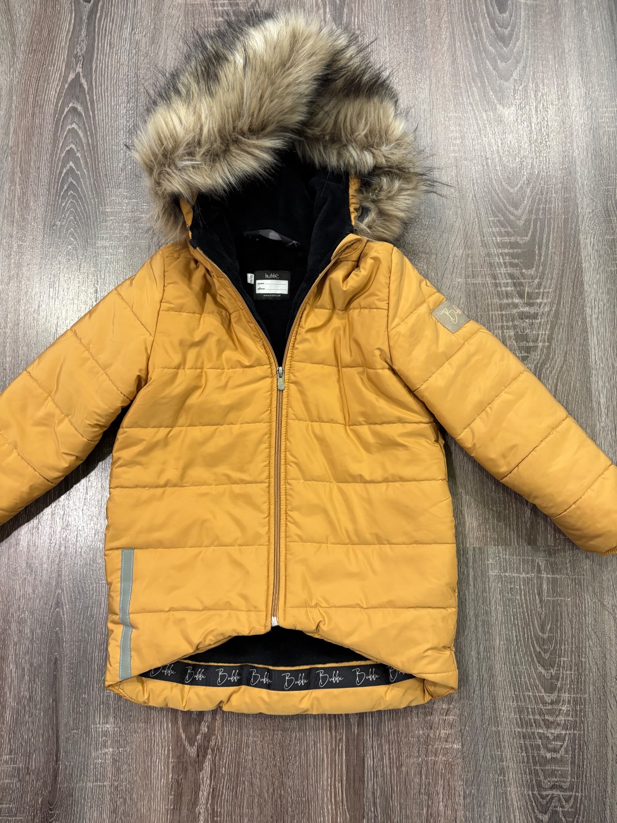 79.Bubbe zimna detska horcicova vetrovka s kozusinou na kapucni,ktora sa da odopnut,predlzeny strih,velkost 116/122.Super stav ako nová.Dlzka prednej casti je 54cm,zadnej je 63cm,dlzka rukava od krku je 54cm a sirka v podpazusi je 40x2cm