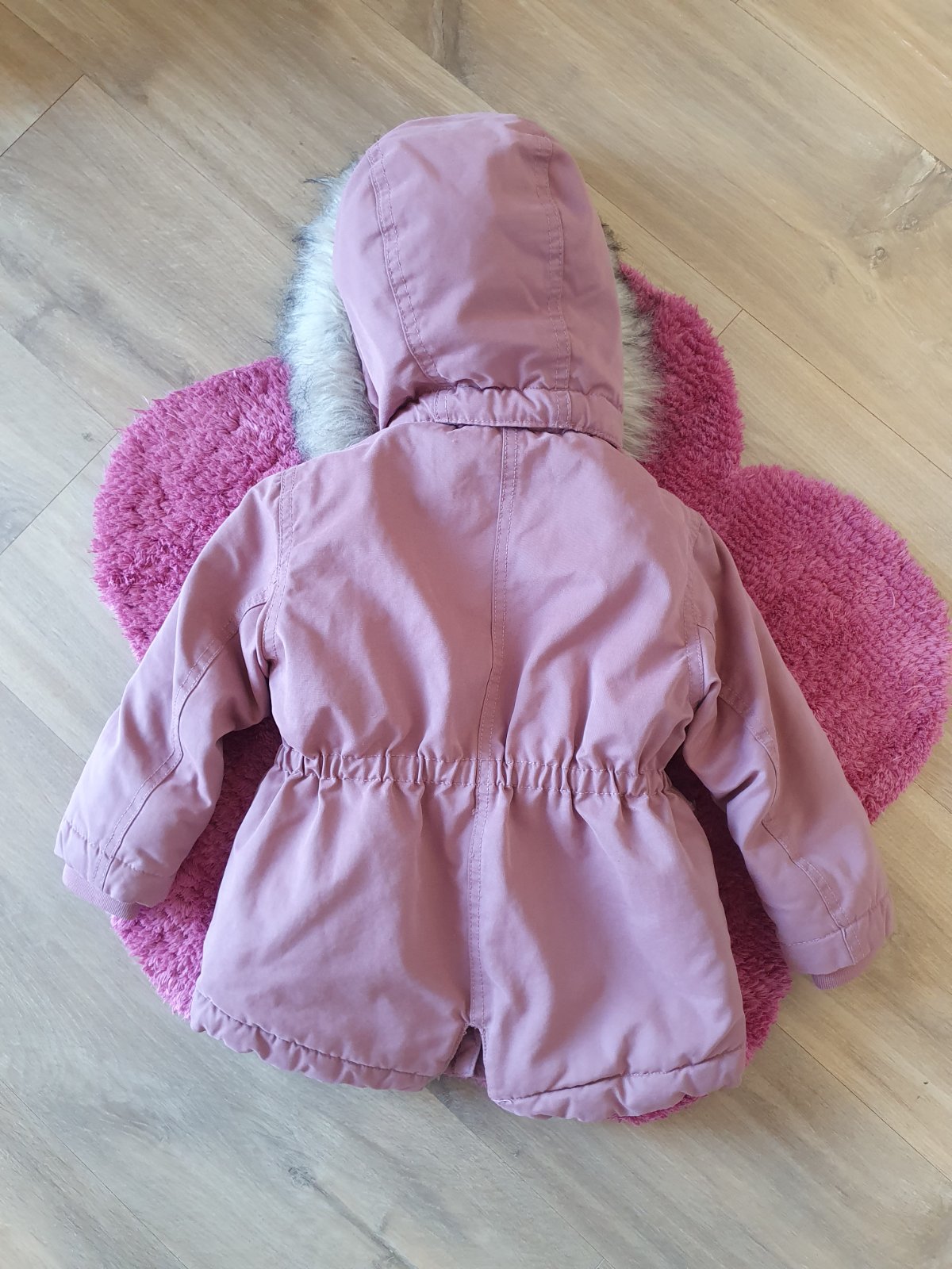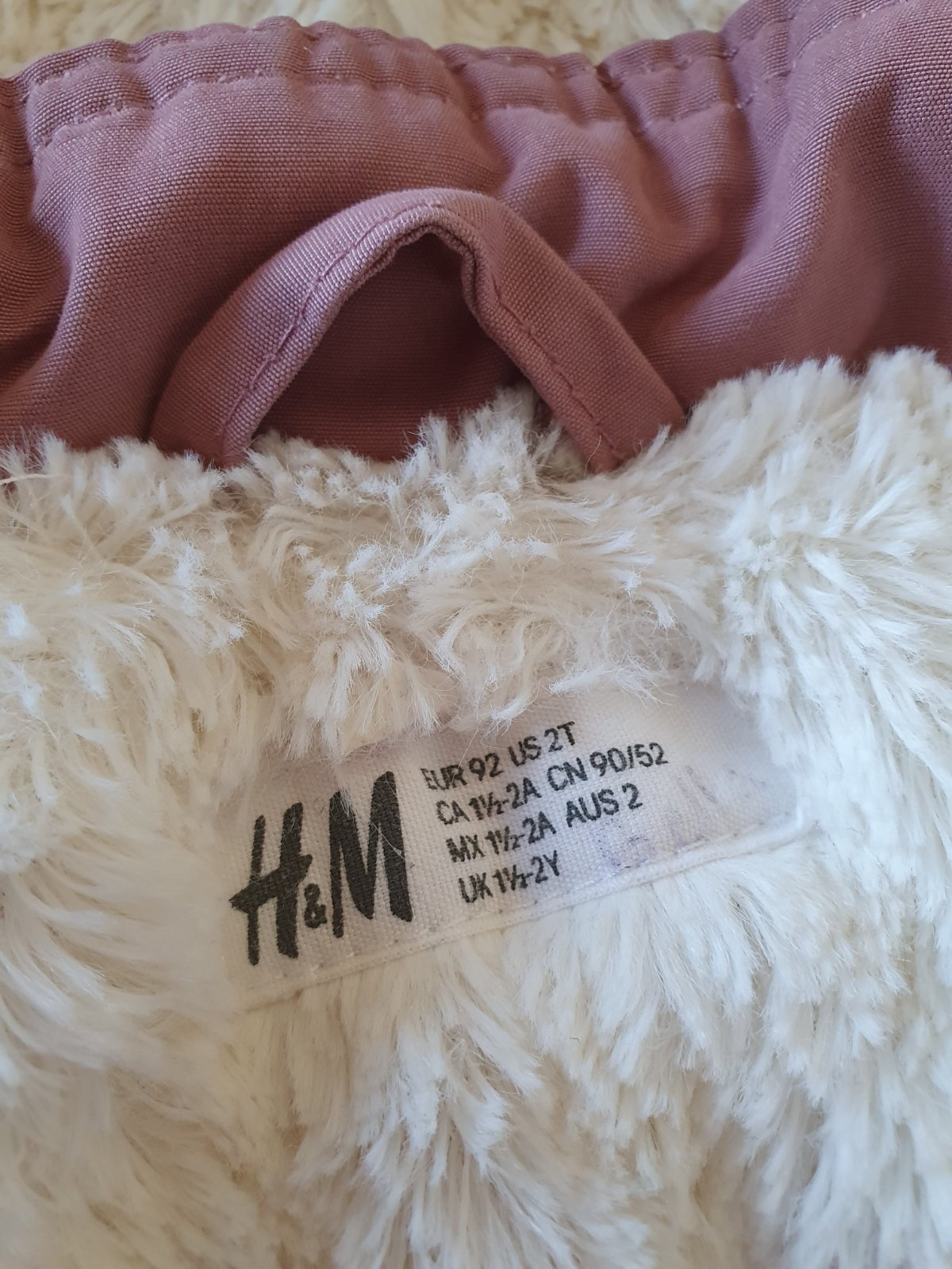 Krásna a tepla zimna bunda h&m s minie veľkosť 92. Pekný nosený stav. Dole pri zapinany je trosku suchnuta asi od zapínania - pri nosení to nevidno (vid foto )