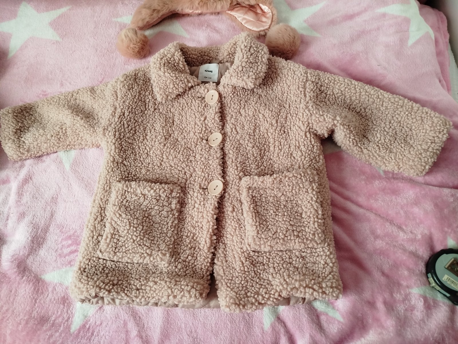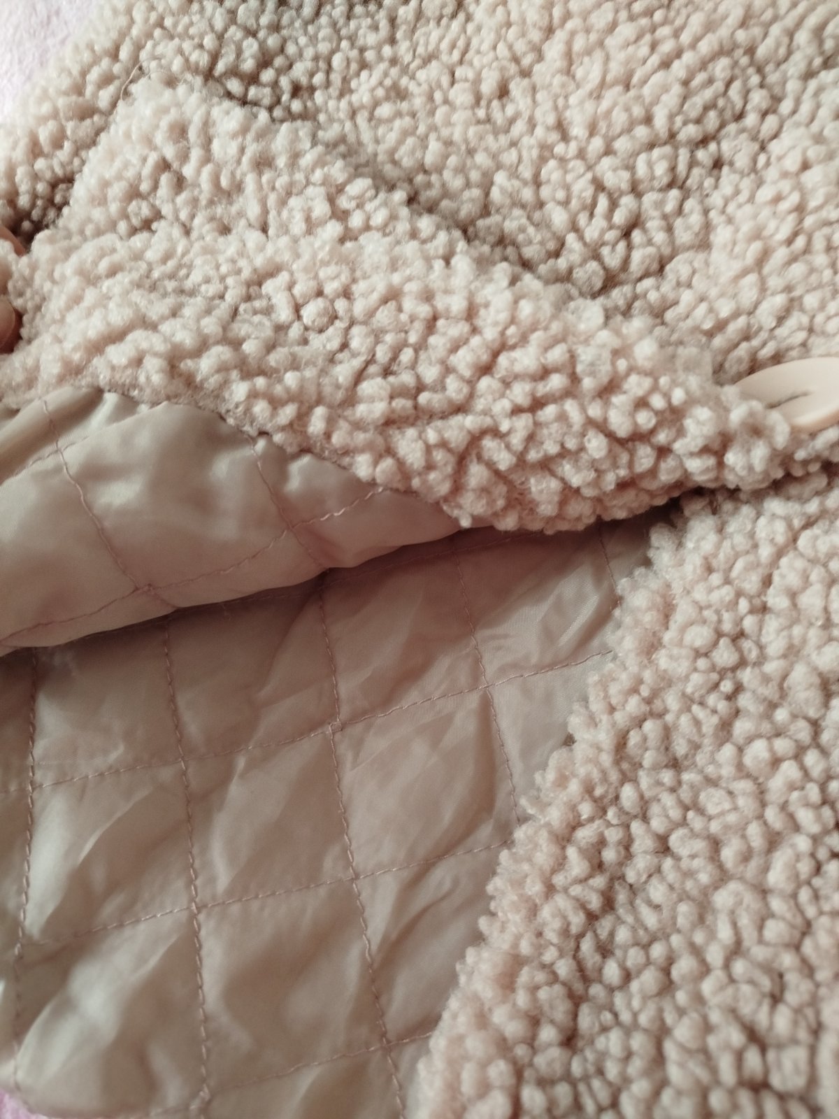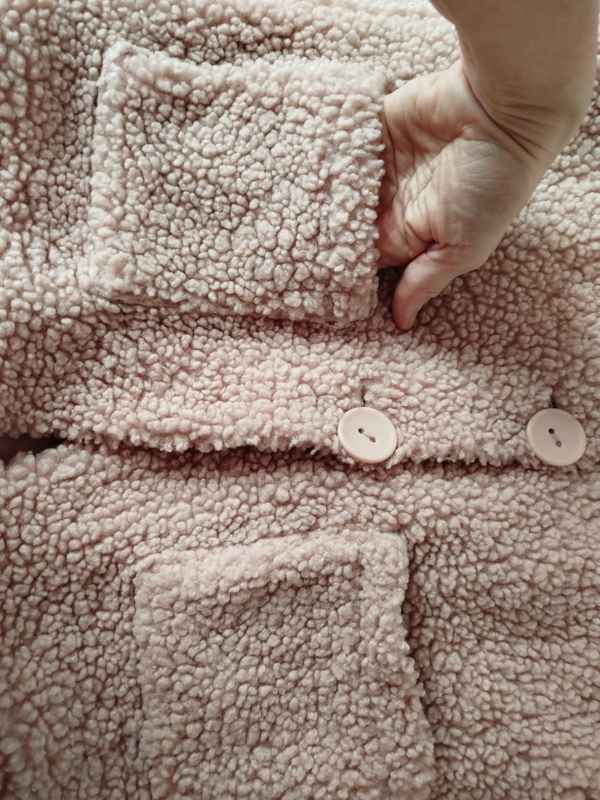 V top stave, farba je niečo medzi bledoruzovou a staroružovou, ťahá viac k staroruzovej. Ľahučký, žiadna ťažká opacha na nosenie, ako bývajú niektoré kabáty.