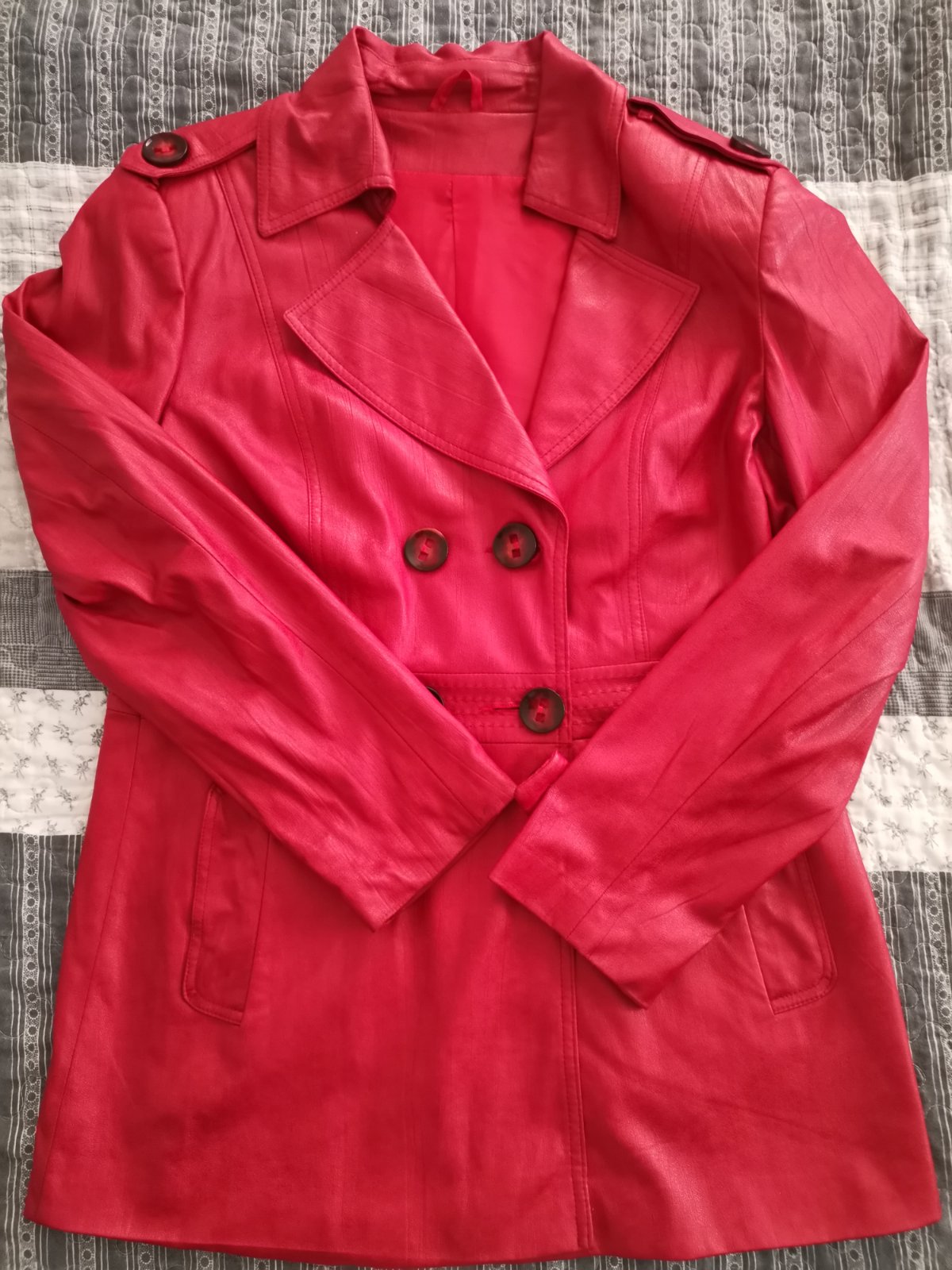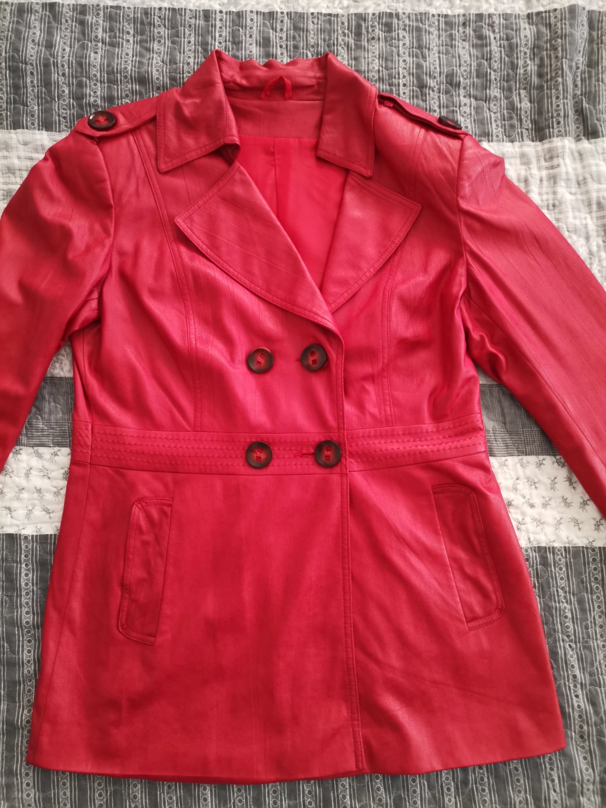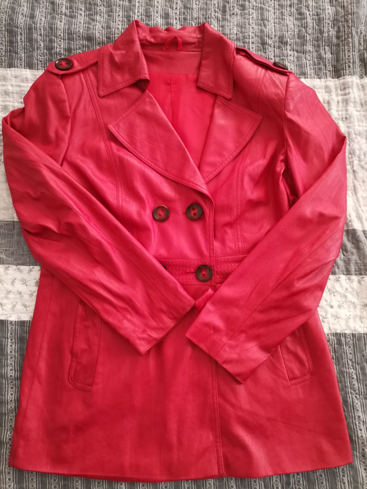 krásný kvalitný kabátik nenosený neuhádnutá velkost farba pekná červená nedalo sa mi zachytit bez vysačky miery sú na foto povodná cena okolo 100 eur