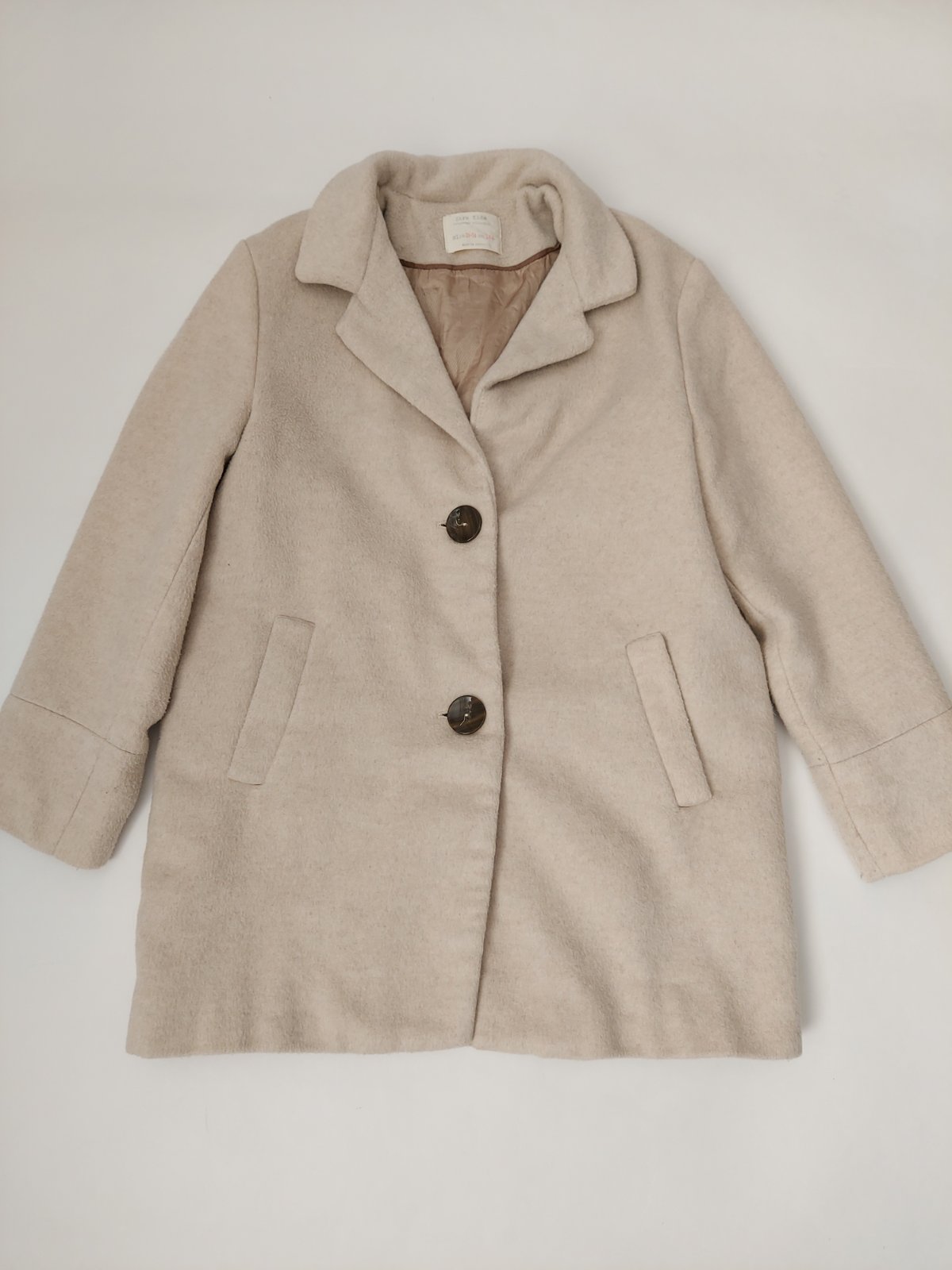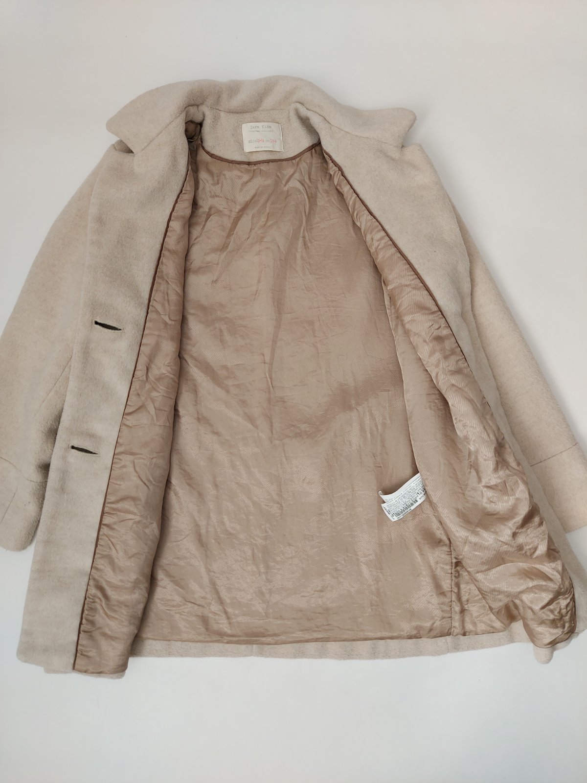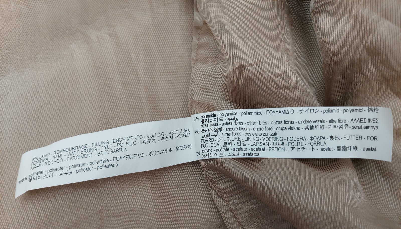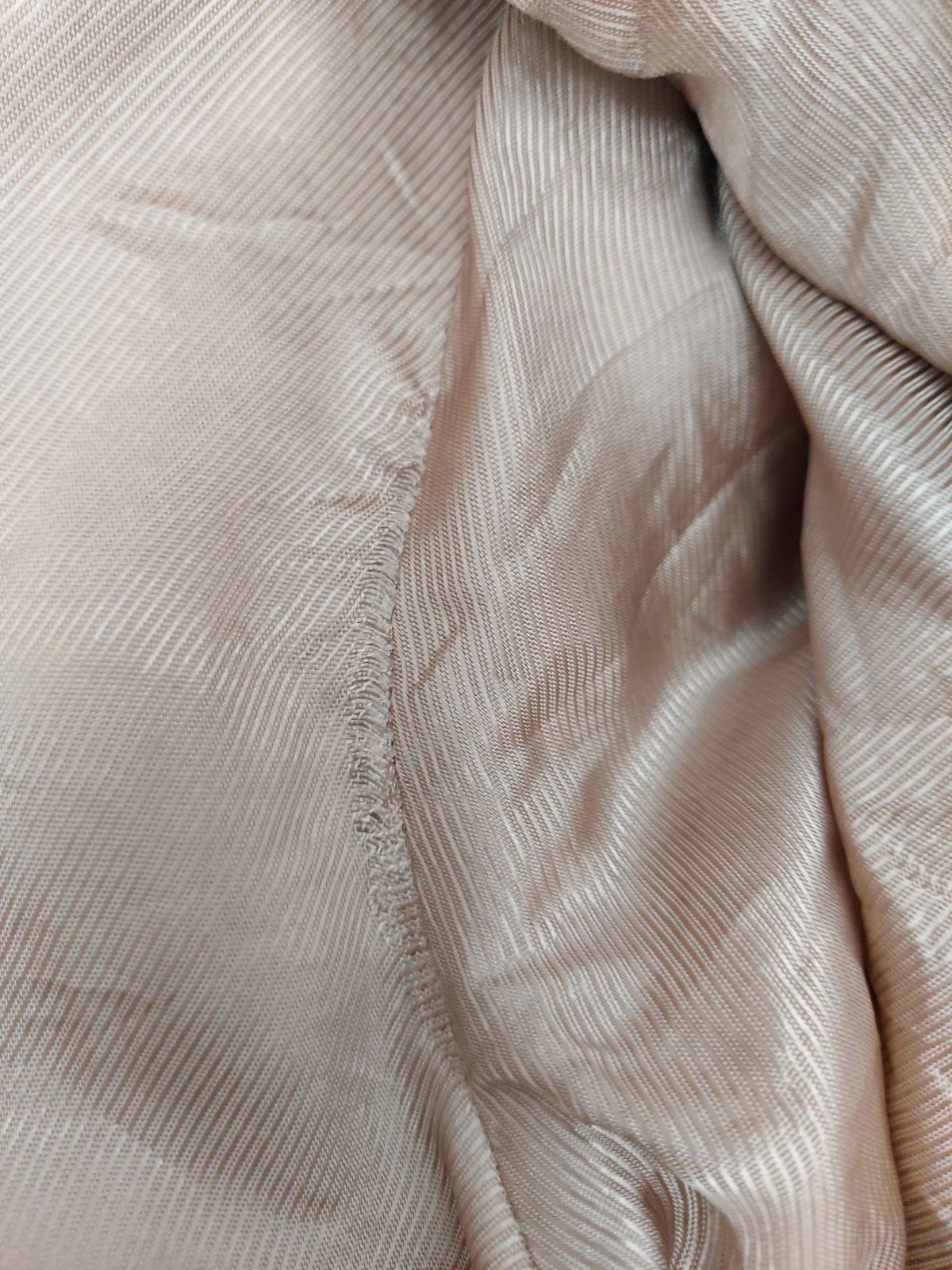 Pekný nosený stav, zvonka super, zvnútra na niektorých miestach rozpáraná podšívka- odfotila som, iné poškodenia som nenašla.