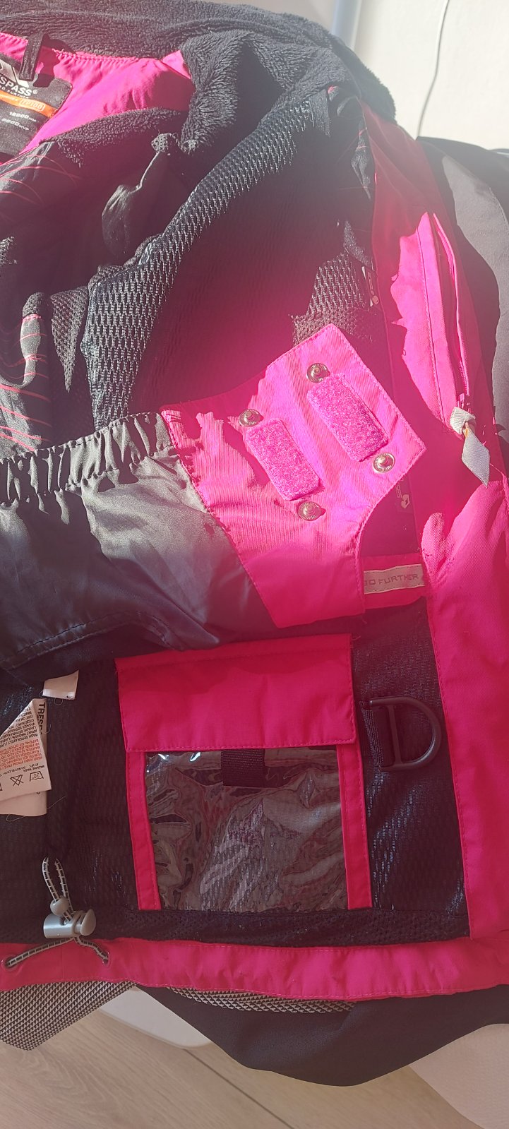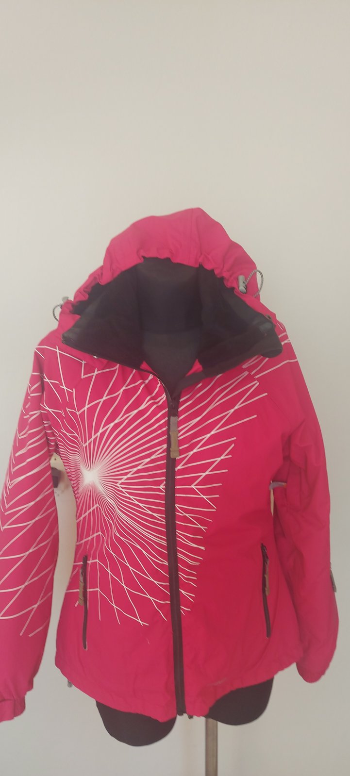Outdoorová dámska bunda vo veľmi dobrom stave, podšitá flísom, vhodná do mesta aj na turistiku, farba malinová-ružová, vnútorné vrecko. Cena plus poštovné.