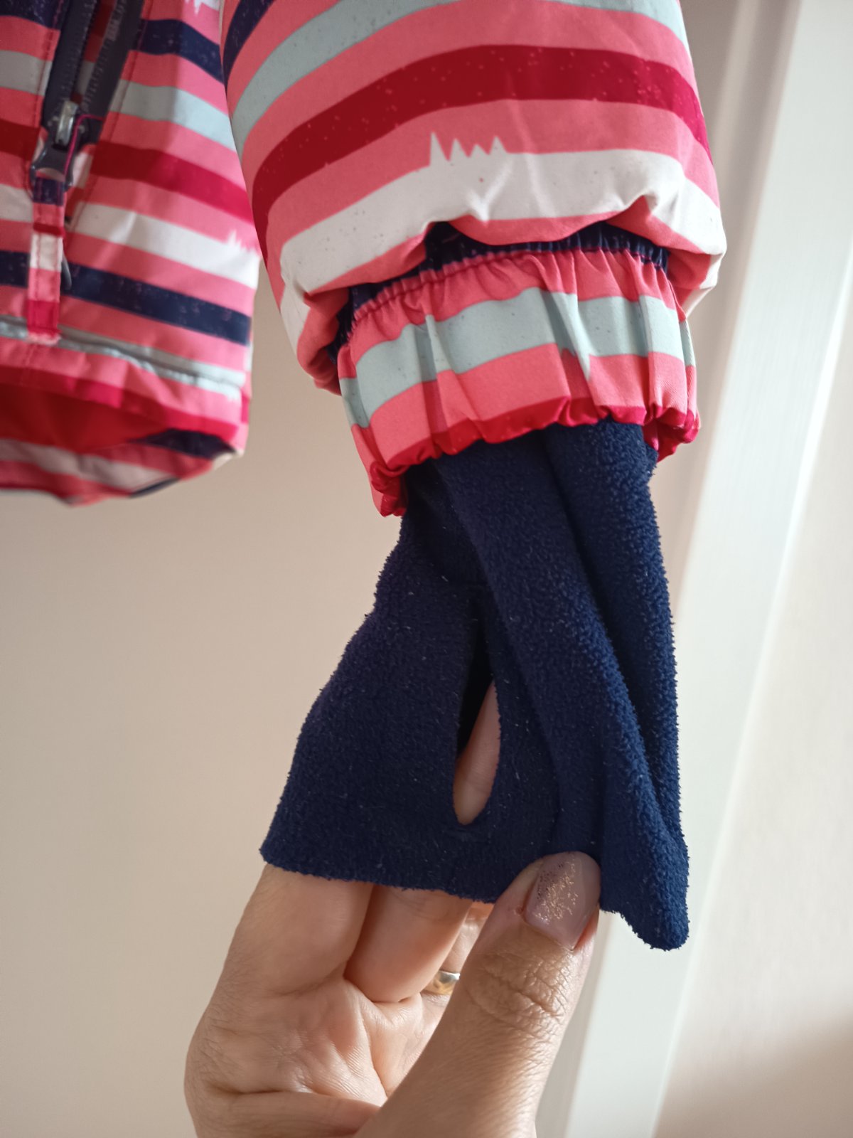 Božena jednu zimu na striedačku s inou. Super stav. Zateplená, na rukávoch predĺžené, kde sa dá schovať dlaň. Veľkosť 110/116.