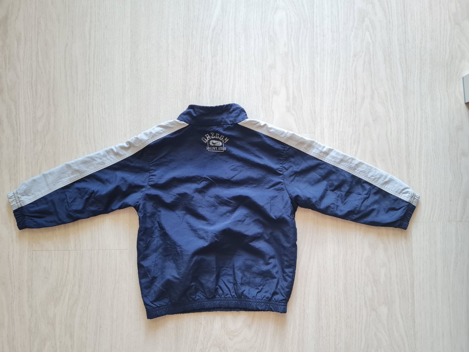 Prechodná vetrovka Nike, podšitá tenkou sieťovinou. Patenty na rukávoch a spodok vetrovky s gumou. V modrých pásikoch vpredu sú vrecká.