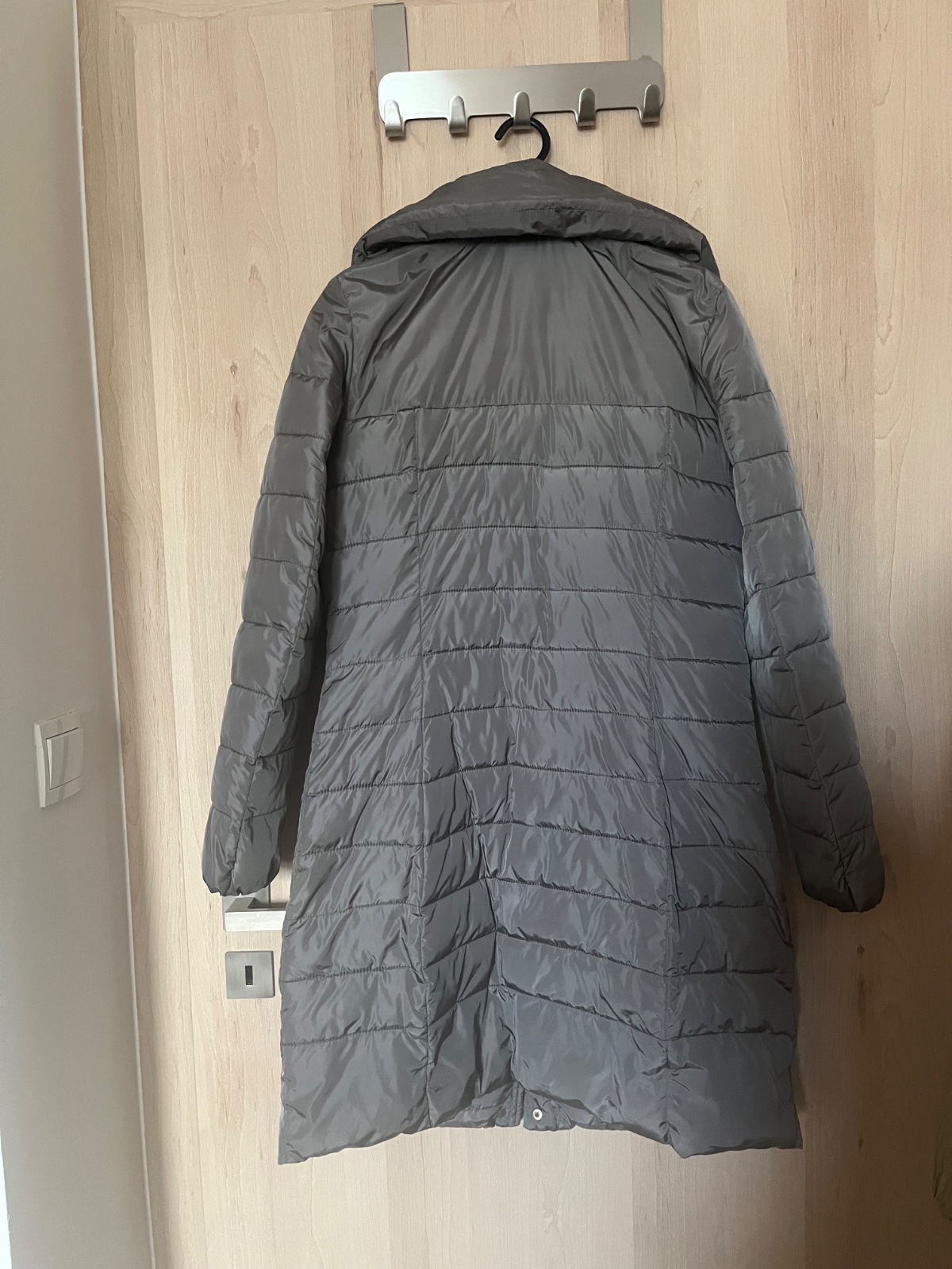 Veľkostne sedí skôr na 38 i keď veľkosť je písaná 36. KEILA - obojstranná (kombinácia zelená/šedá). Rozmery: CD 107 cm, šírka 51 cm x 2, rukáv od pleca 62 cm Veľmi teplá - príjemná, podšítá. Ja n...