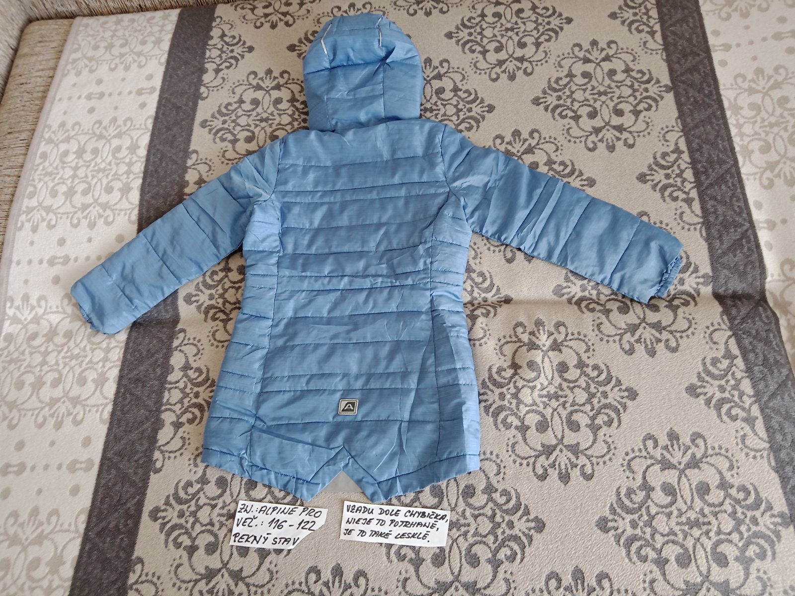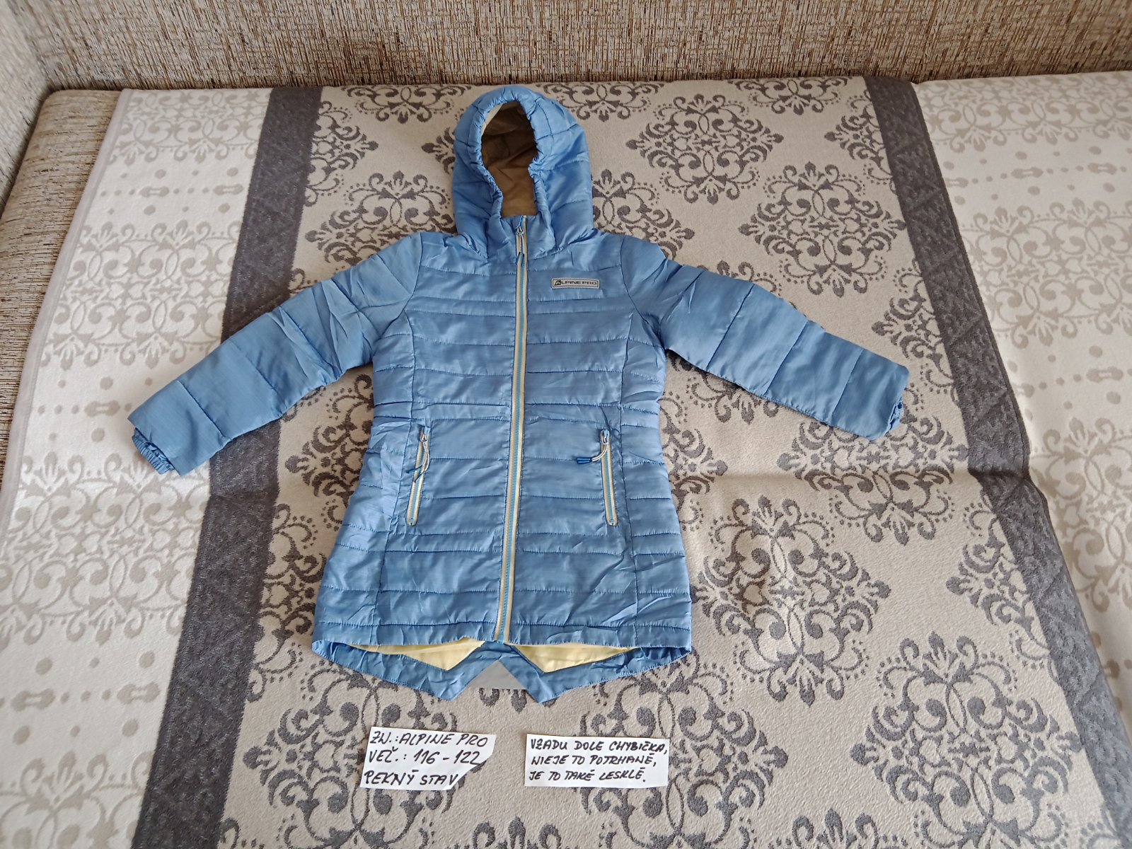 Predám dievčenský zimný kabátik zn.Alpine Pro veľ.116-122,má chybičku-vzadu dole je na látke také lesklé, nie je to potrhané.Neviem,od čoho to je.Inak je v peknom stave.Ziadne iné chyby tam nie sú.Zohladnim to v cene.Cena je 12eur.