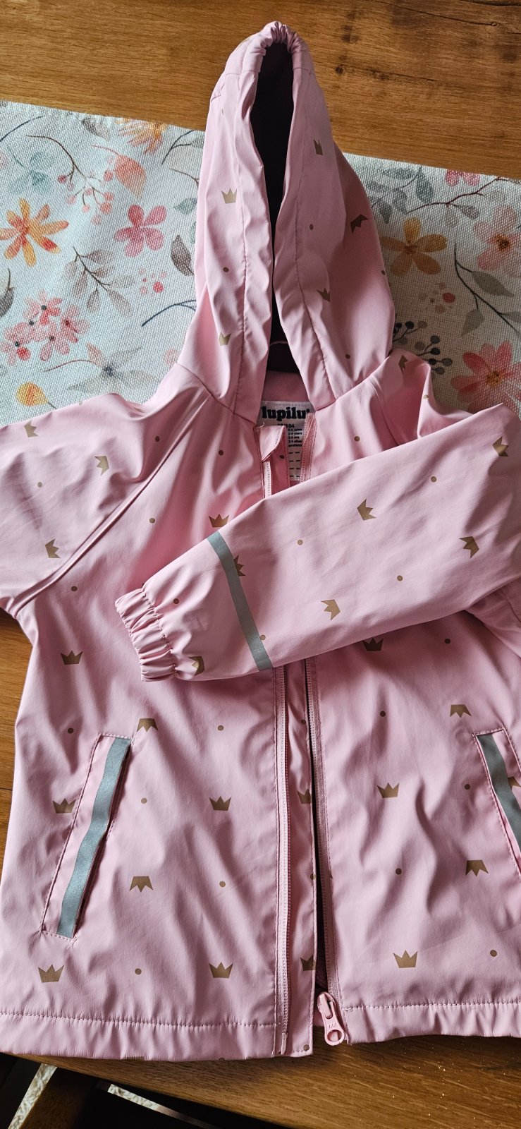 Na bundičke je jediná chybička - odpárané putko, myslím, že šikovná mamička si s tým hravo poradí, inak je vo výbornom stave. Je podšitá flísom, má reflexné prvky, kapucňa je pevná. Veľkosť 98-104.