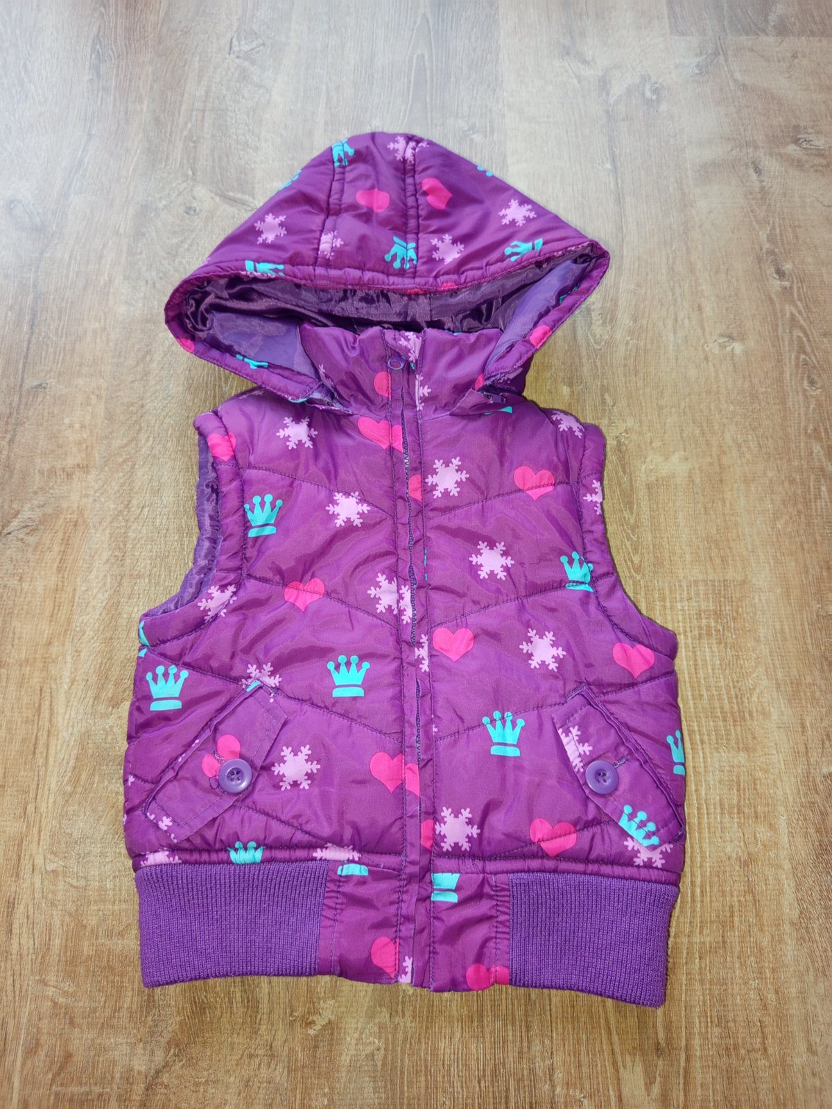 Zateplena vesta s odnimatelnou kapucnou na zips, velkost 104, ako nova.